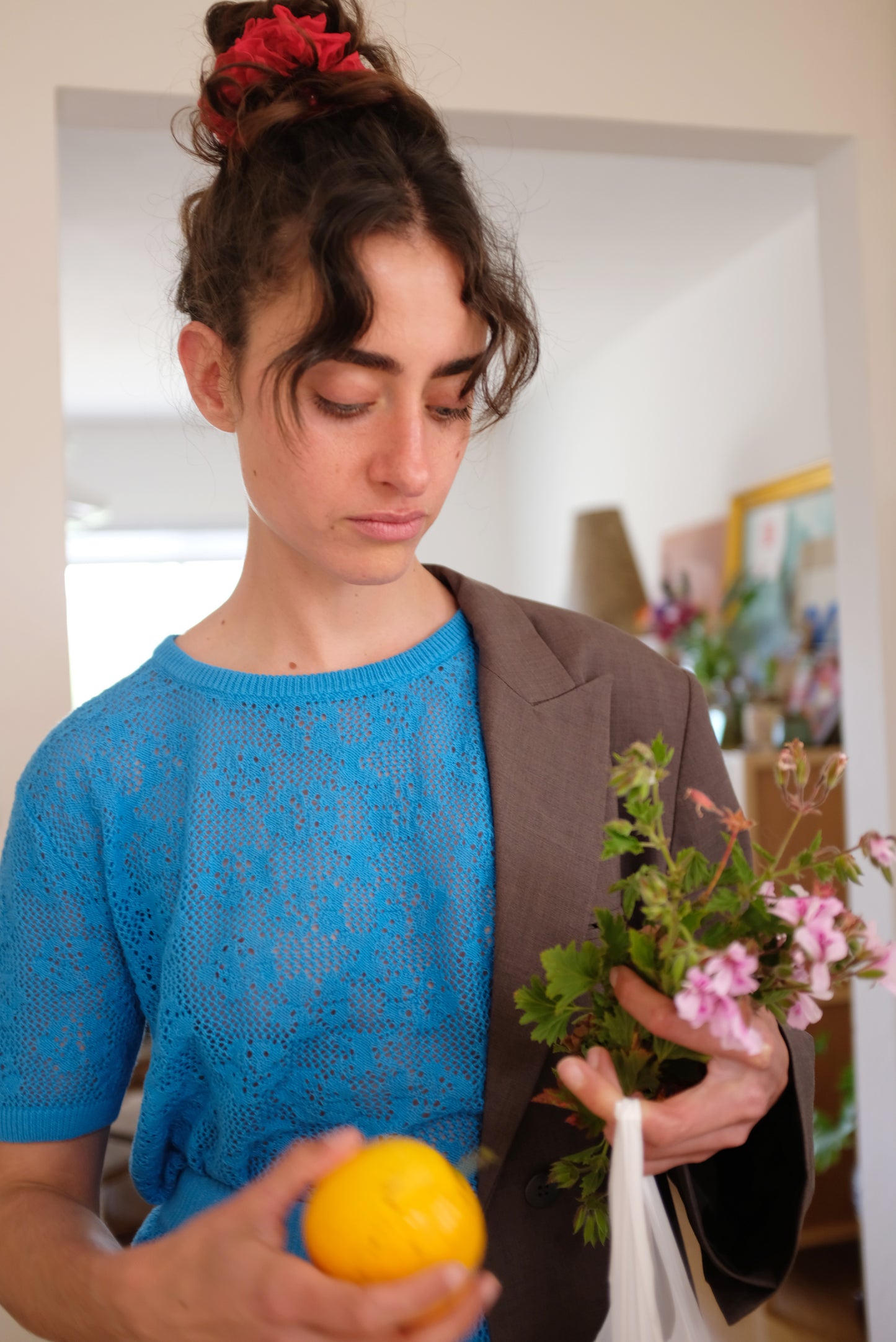 Hand knit floral lace design, soft 100% Peruvian cotton t-shirt. Short sleeve with a classic boxy fit and crew neckline. Runs true to size, with a natural gentle built in stretch, washable, not overly delicate.