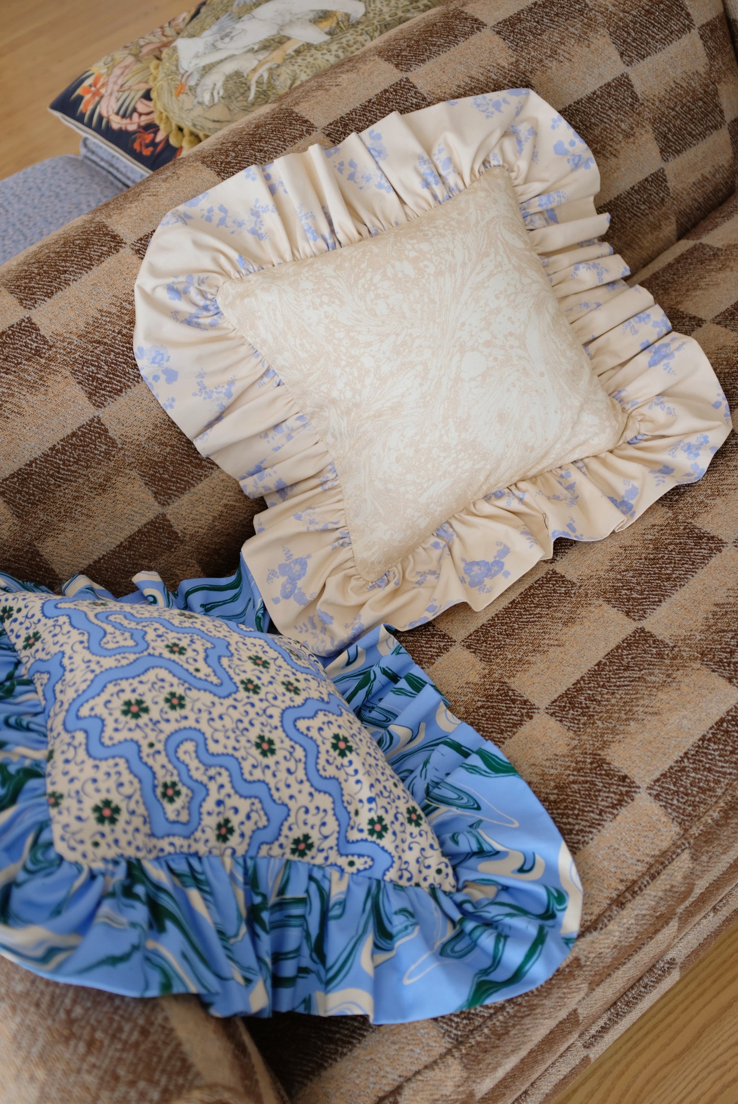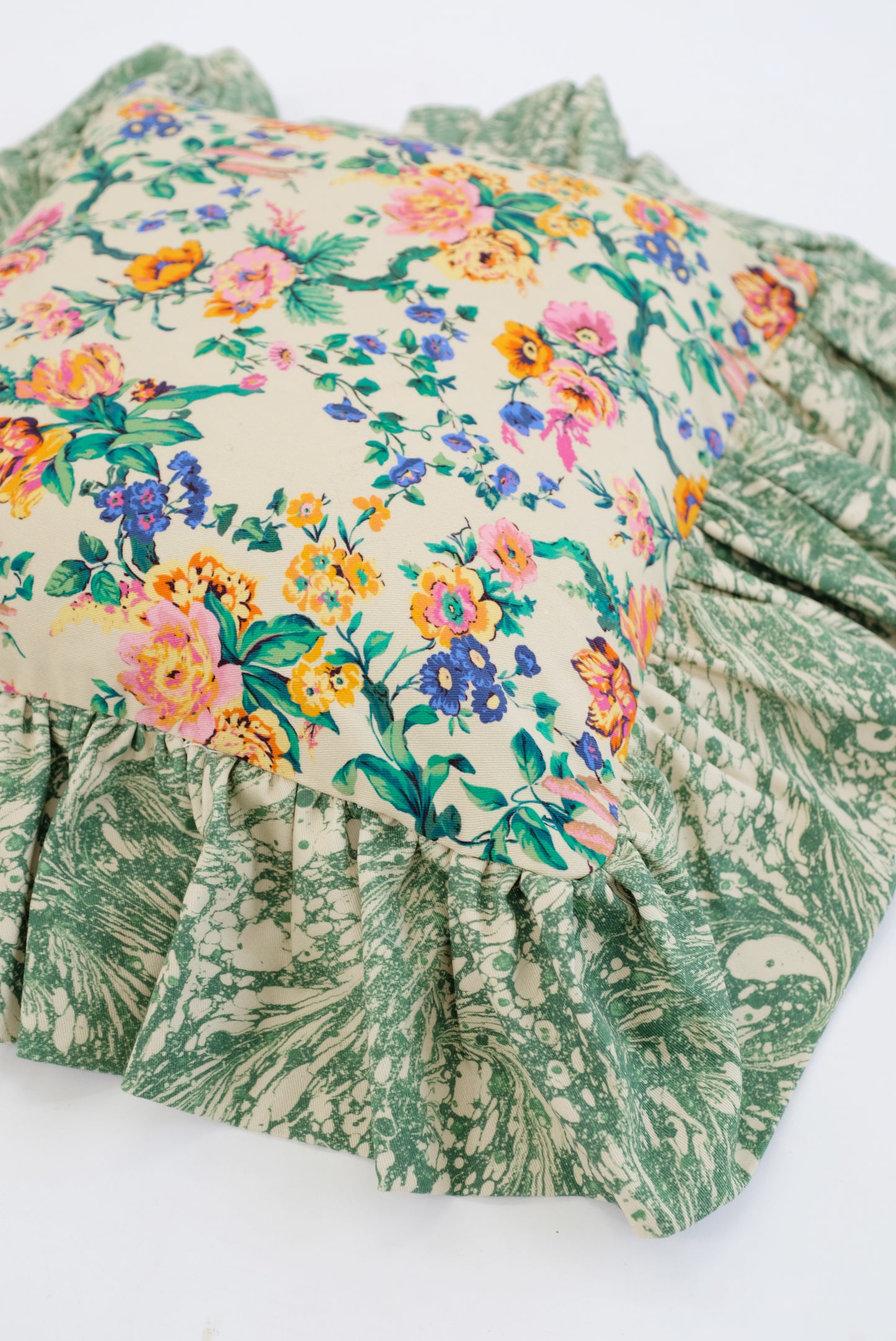 Made in the UK. 100% Cotton. Hidden zipper. Removable cover and machine washable.