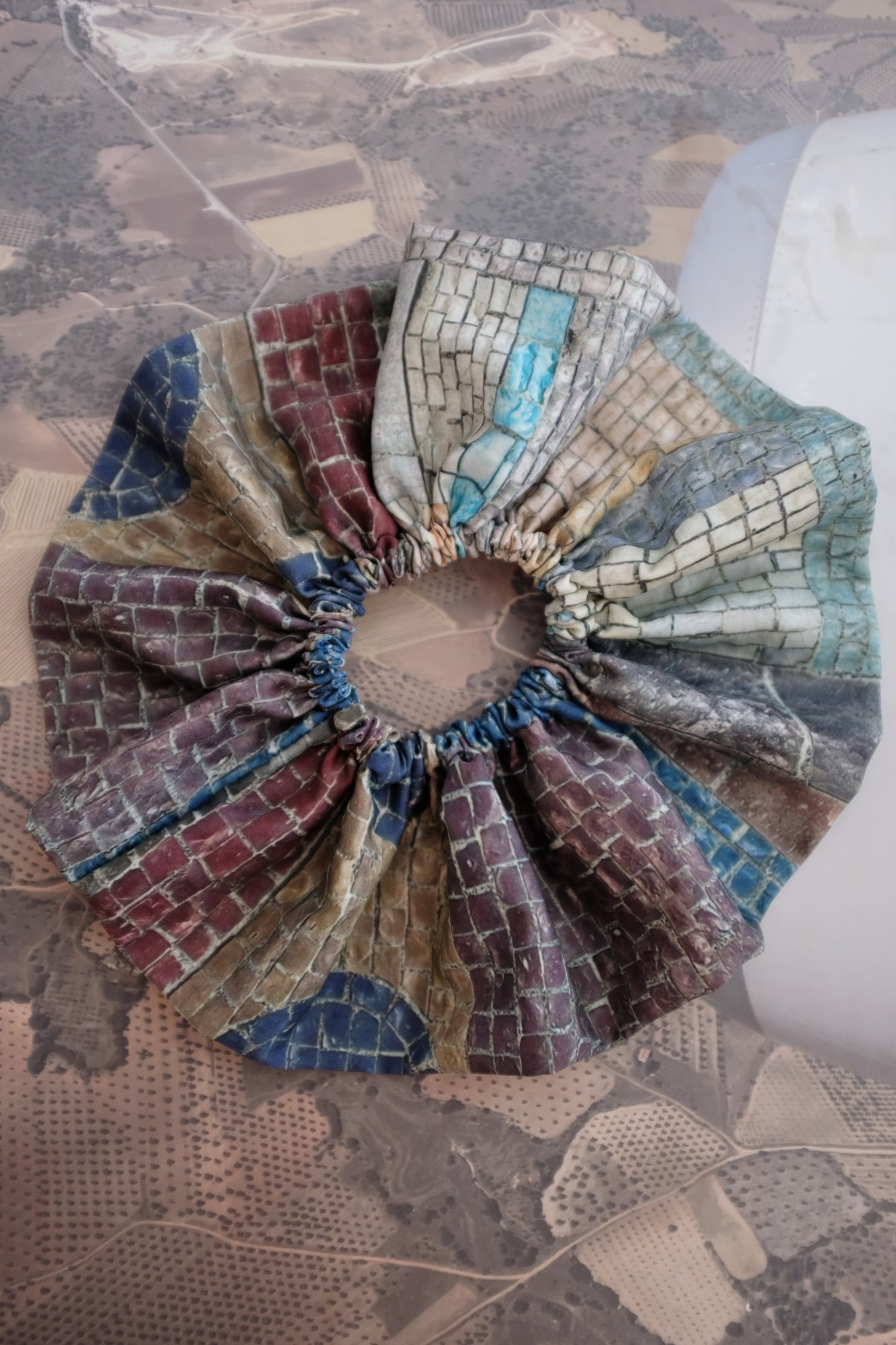 Feminine and fun, full puff scrunchies. Made from a luxurious and light, silk/cotton woven. Limited edition Iceland Mural print. Wear on your wrist or in your hair.
