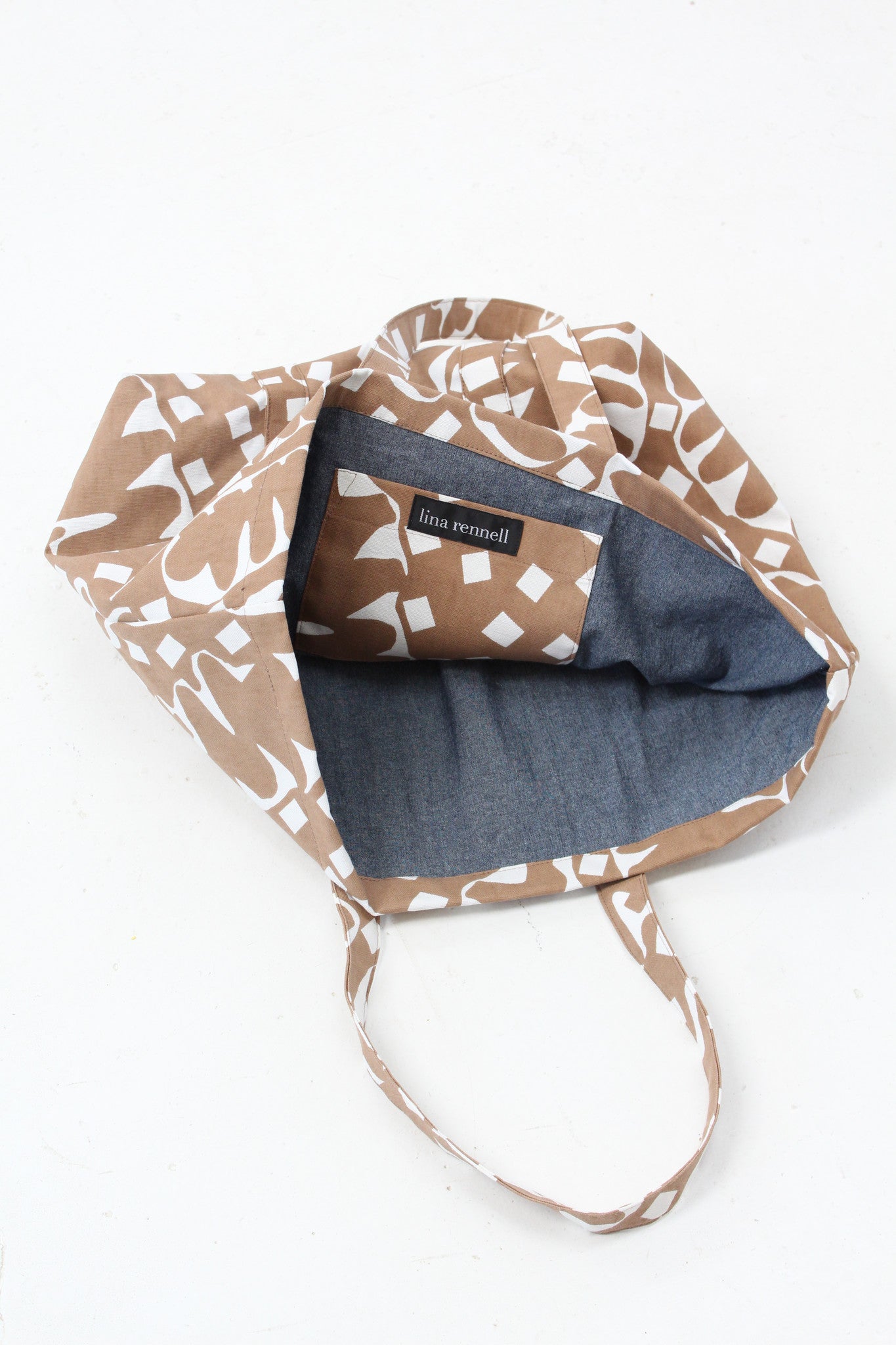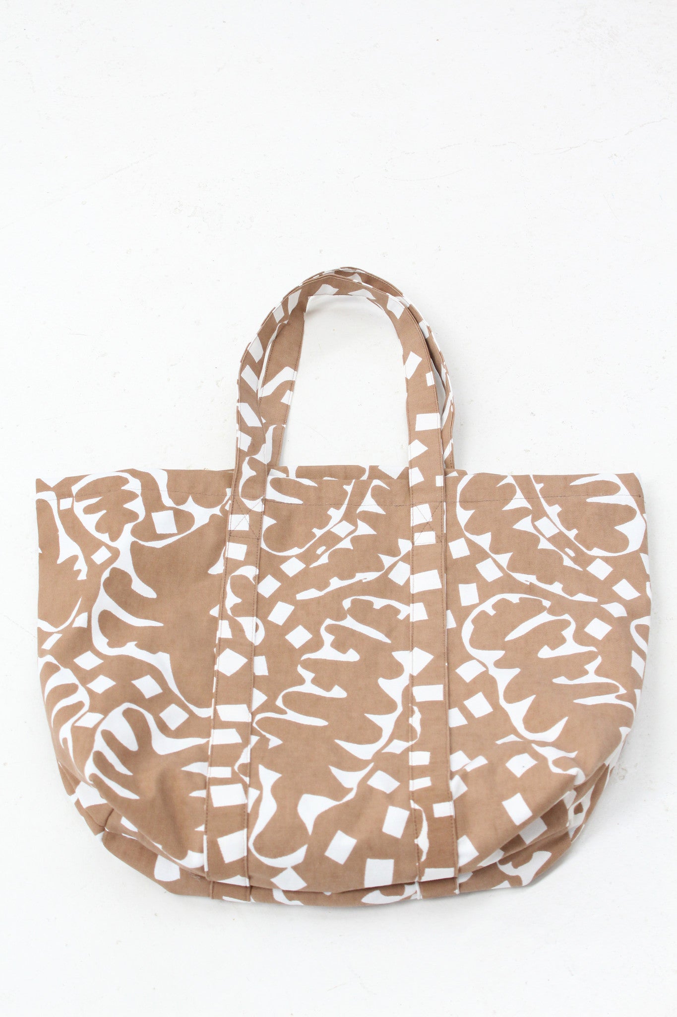 Jumbo Catch All Tote Bag,100% organic canvas, sturdy handles, inside pocket and fully lined. Aprox 20" by 16" They hold quite a bit. Limited edition coco brown on white Mexico print.