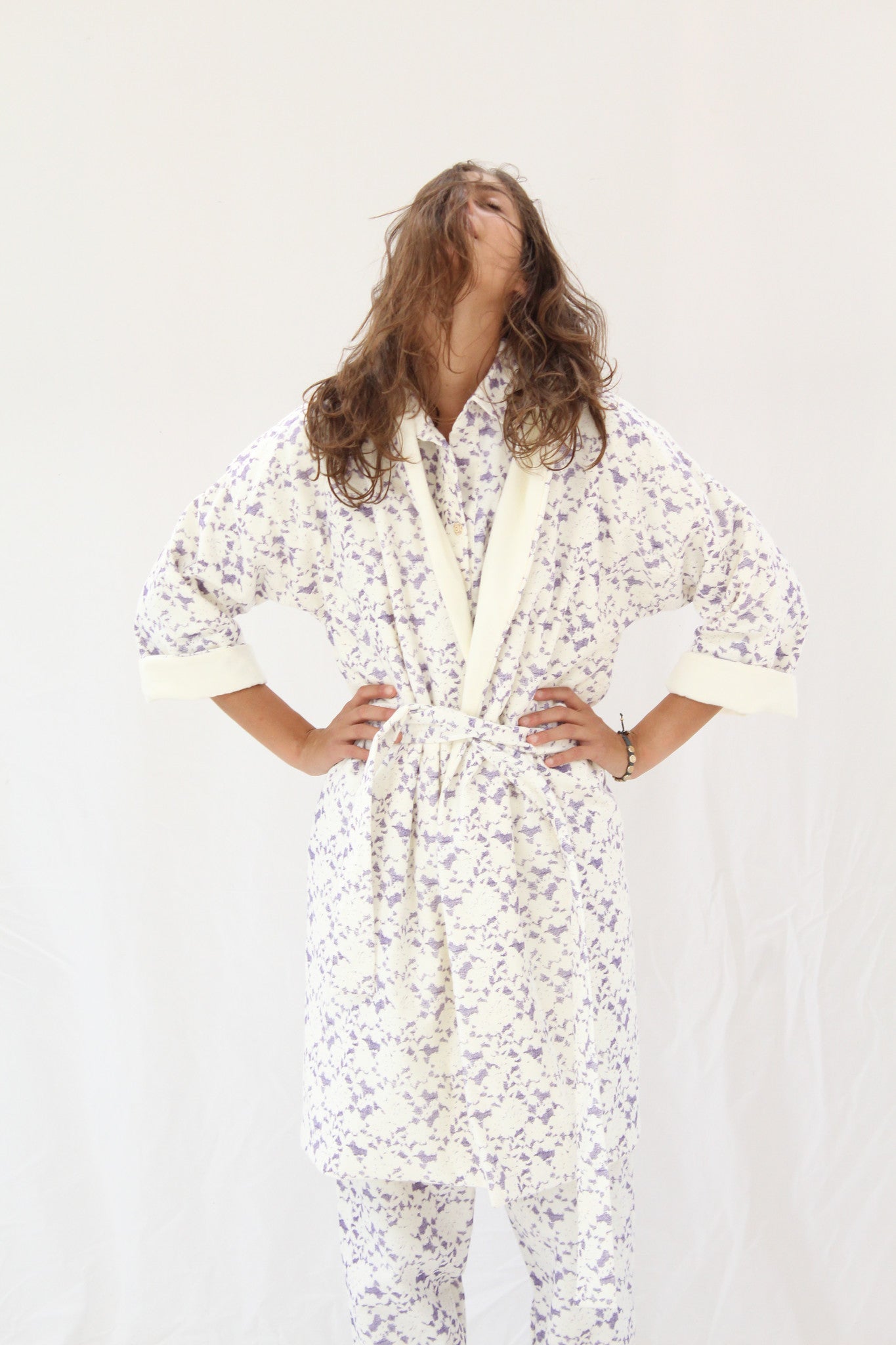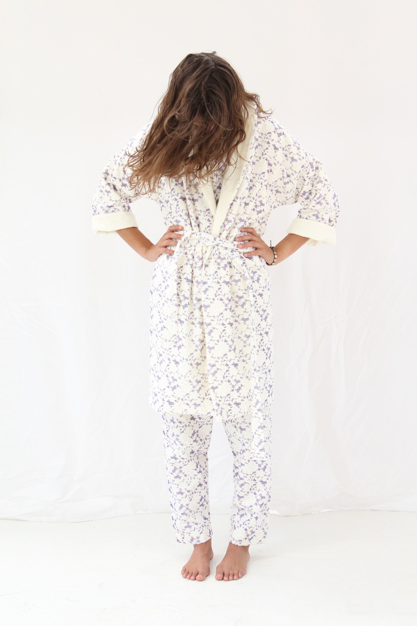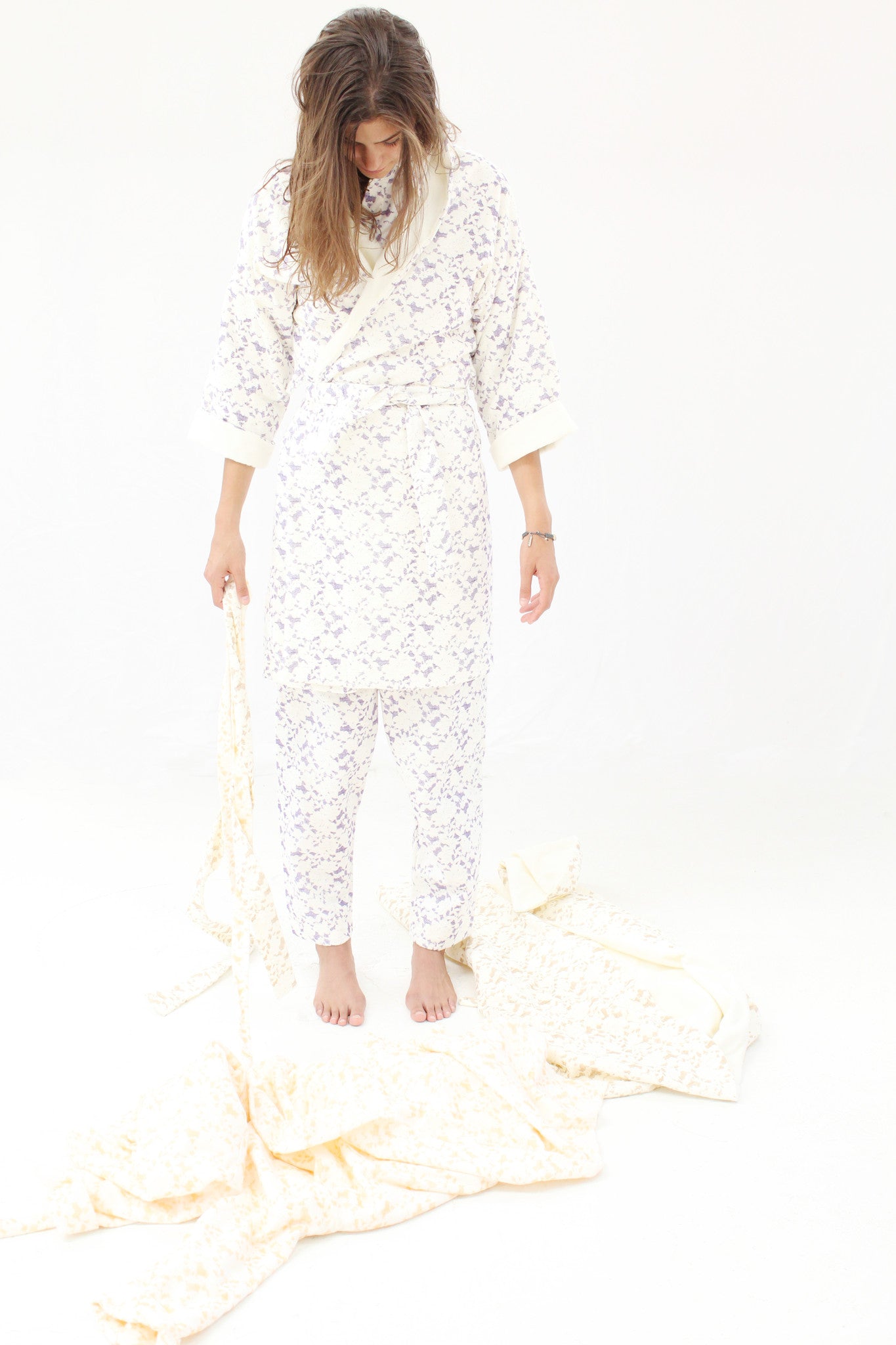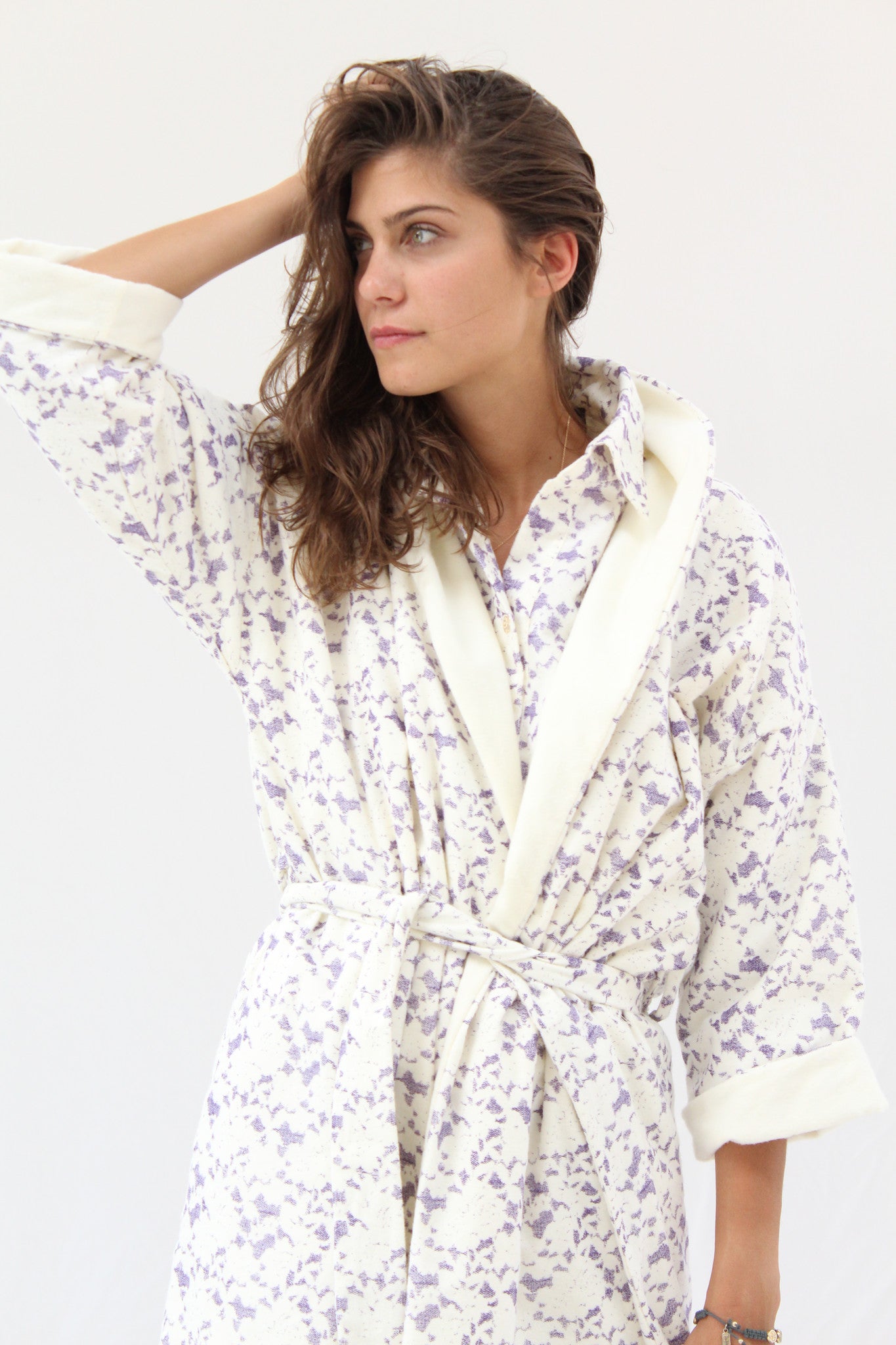 100% organic cotton, double layered with removable tie belt and hidden side pockets. One size fits most.