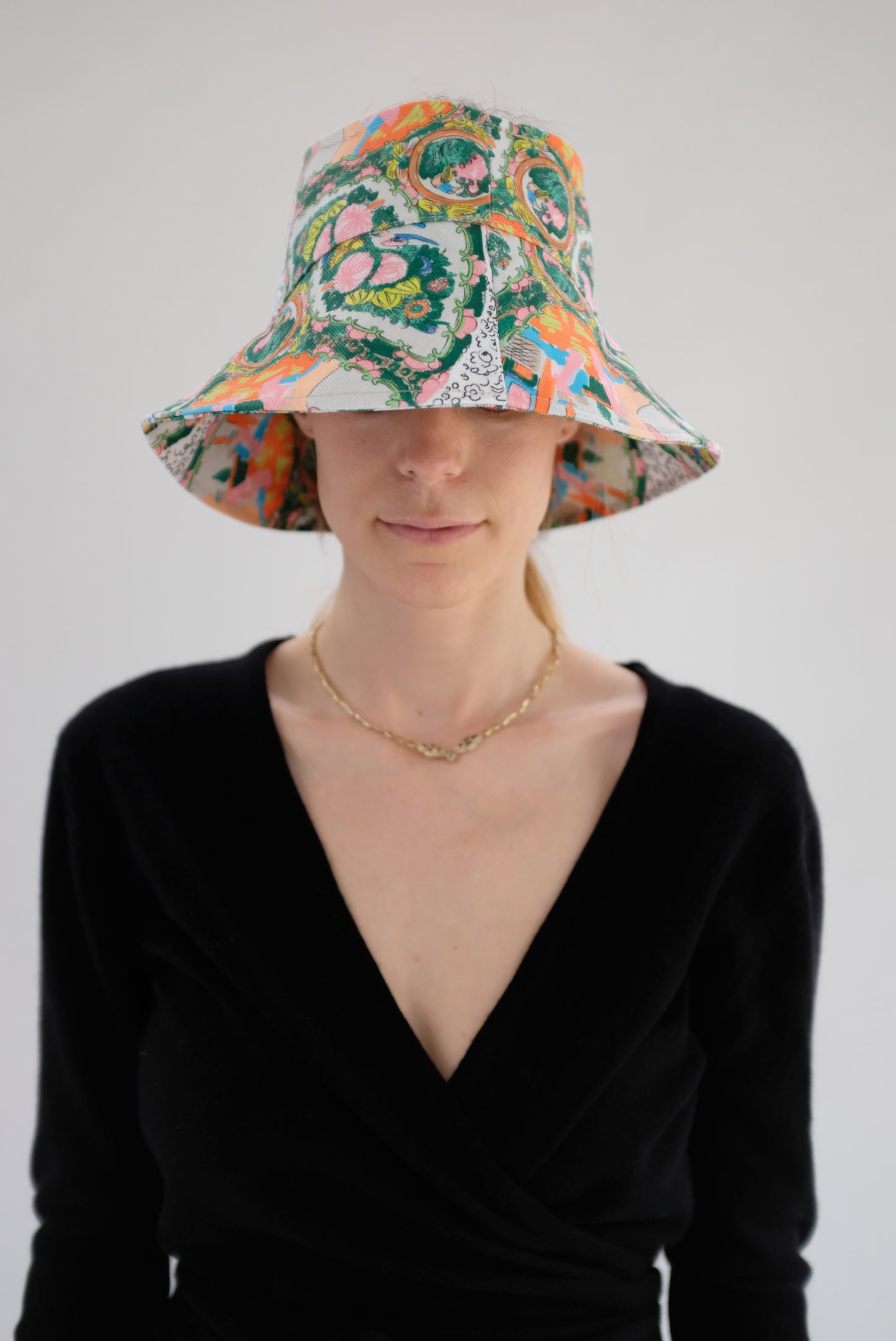 100% Organic cotton topless sunhat in limited edition Marni's check print. Travels well and holds it's shape. Great for real sun protection. This style is running standard, average size women's heads.