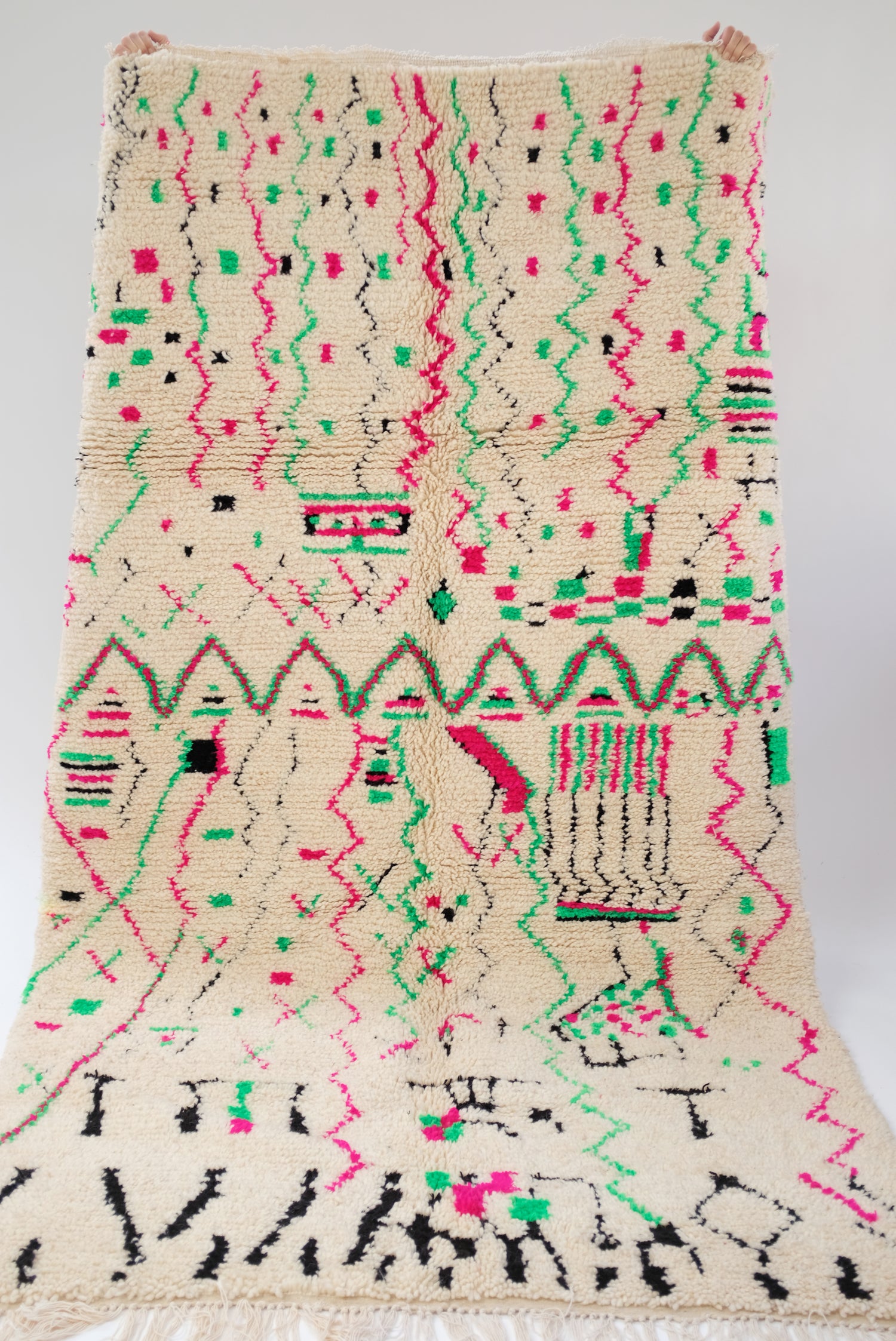 Morocco's Berber craft Azilal rugs. They can also be hung on walls. Authentic vintage rugs that make a warm statement. Made from sustainable materials by local artisans – including cotton and wool. Each is one of a kind and collectable.