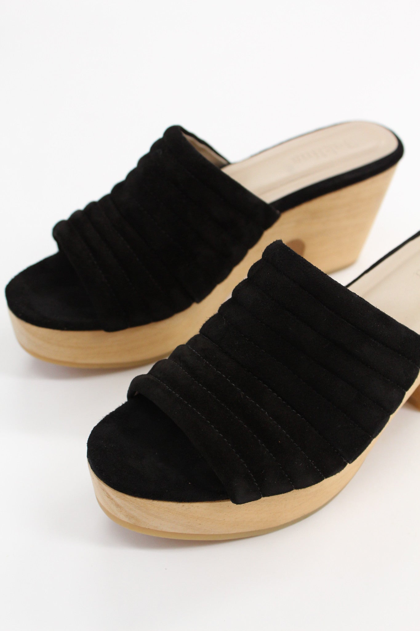 Ultra comfortable, all-day-wearable, wood wedges! & Proudly free of gauche staples. Best selling shoe in the shop!