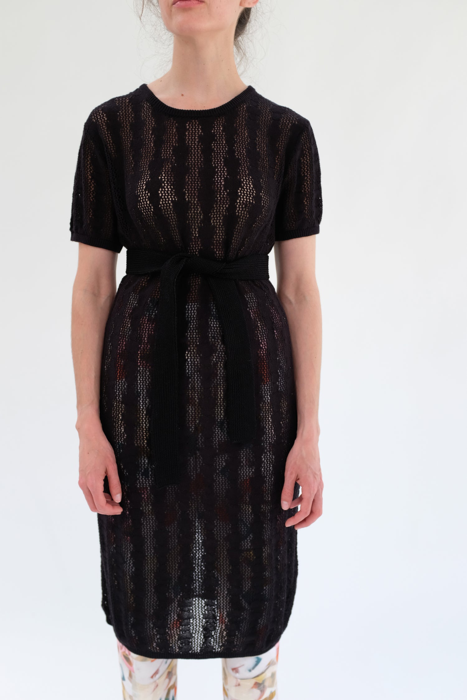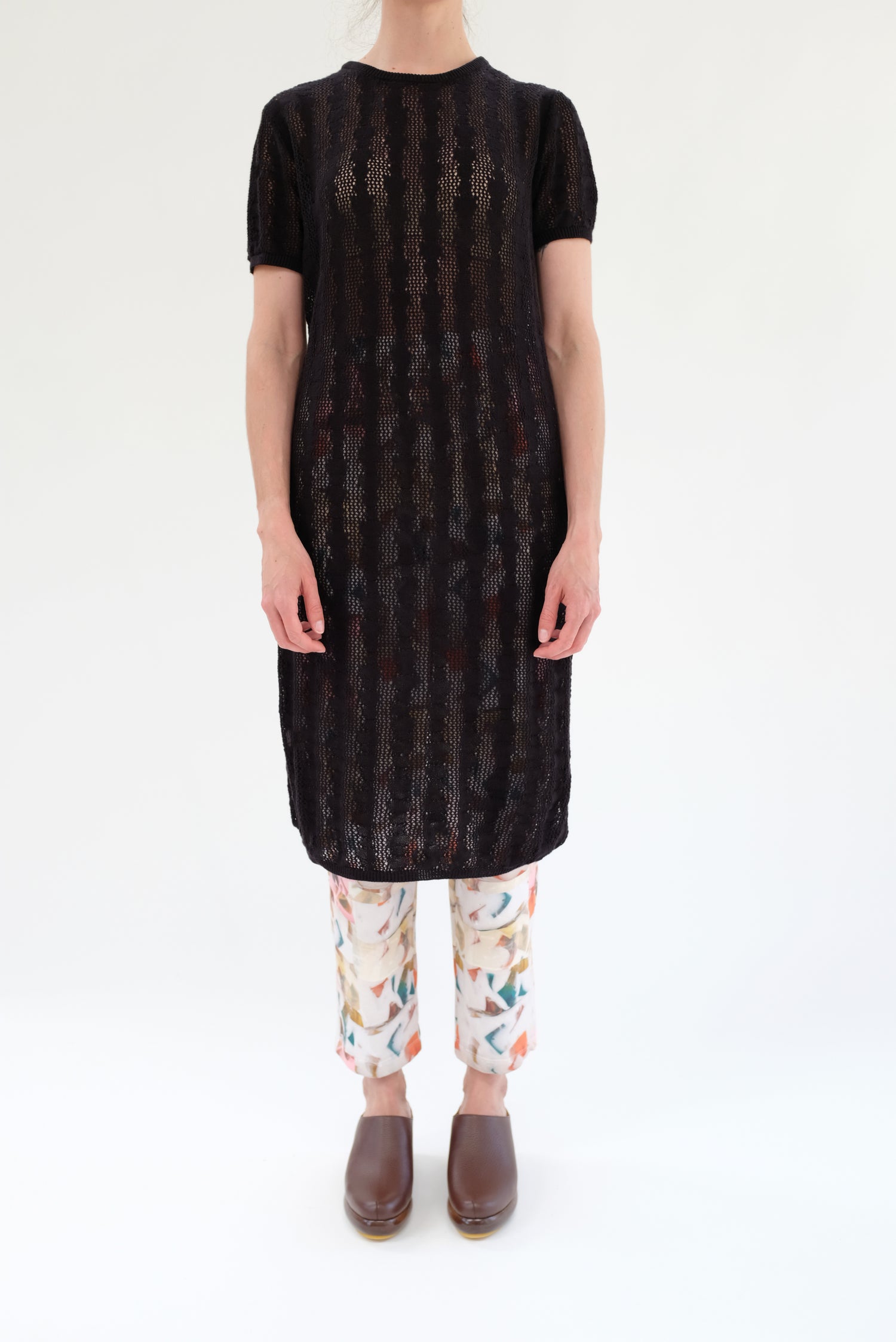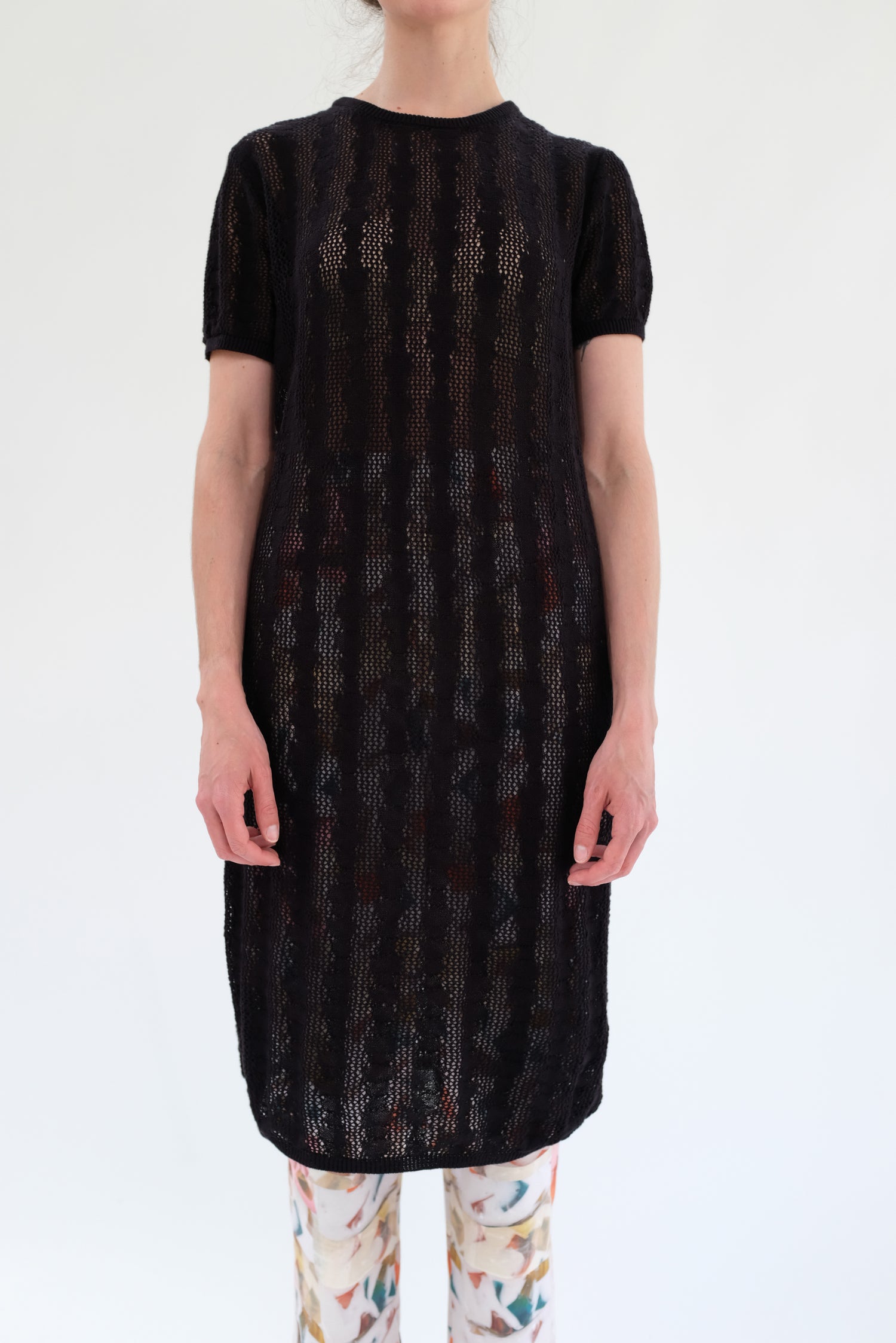 Hand knit in our exclusive bead lace design, ultra soft 100% Peruvian cotton t-shirt dress. Short sleeve with a classic straight fit, and crew neckline. Dress up or down. Runs true to size, with a natural gentle built in stretch, washable, not overly delicate. Ultra soft second skin.
