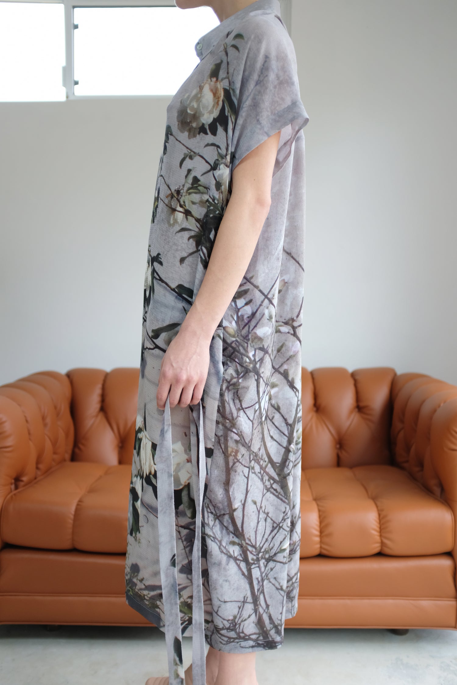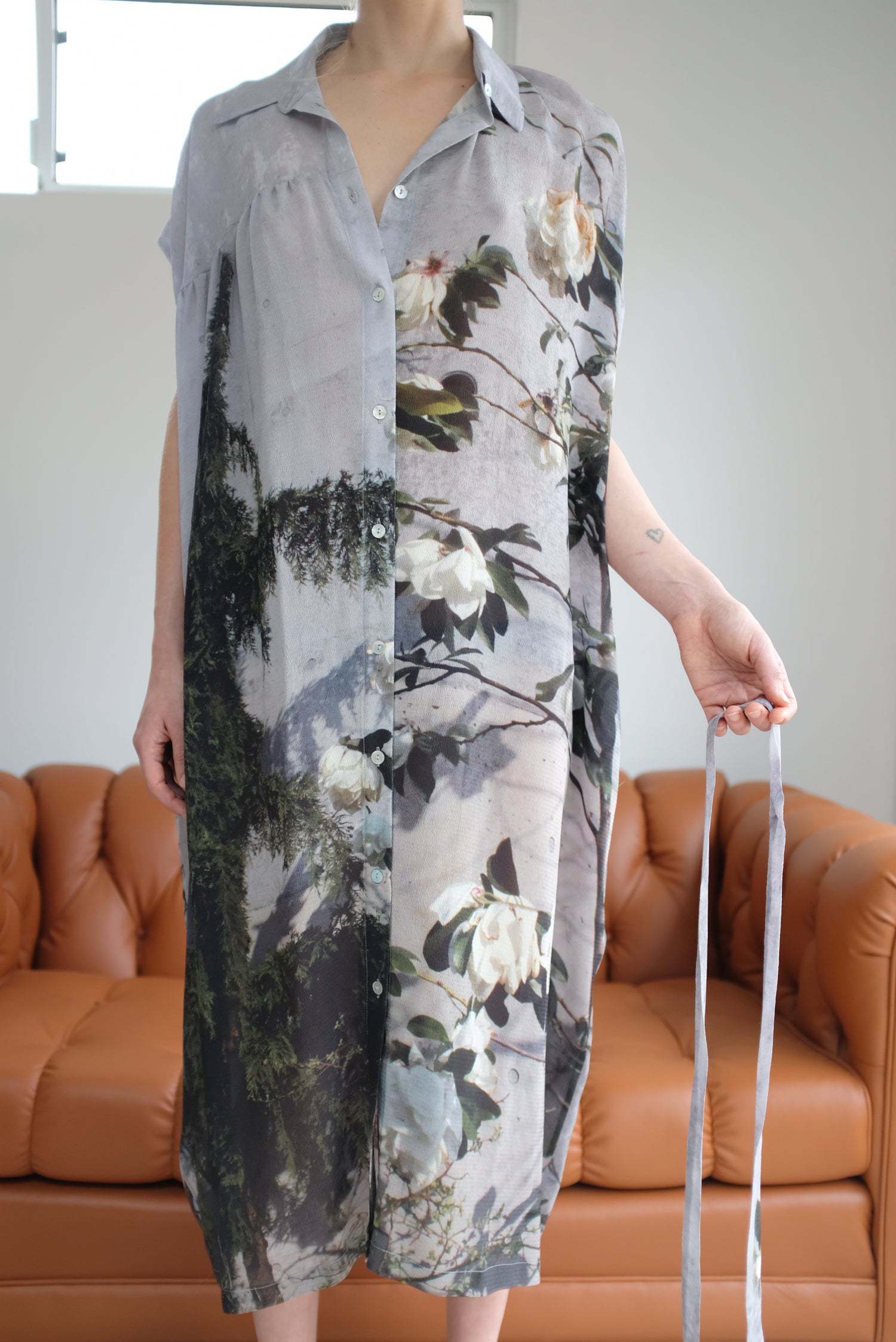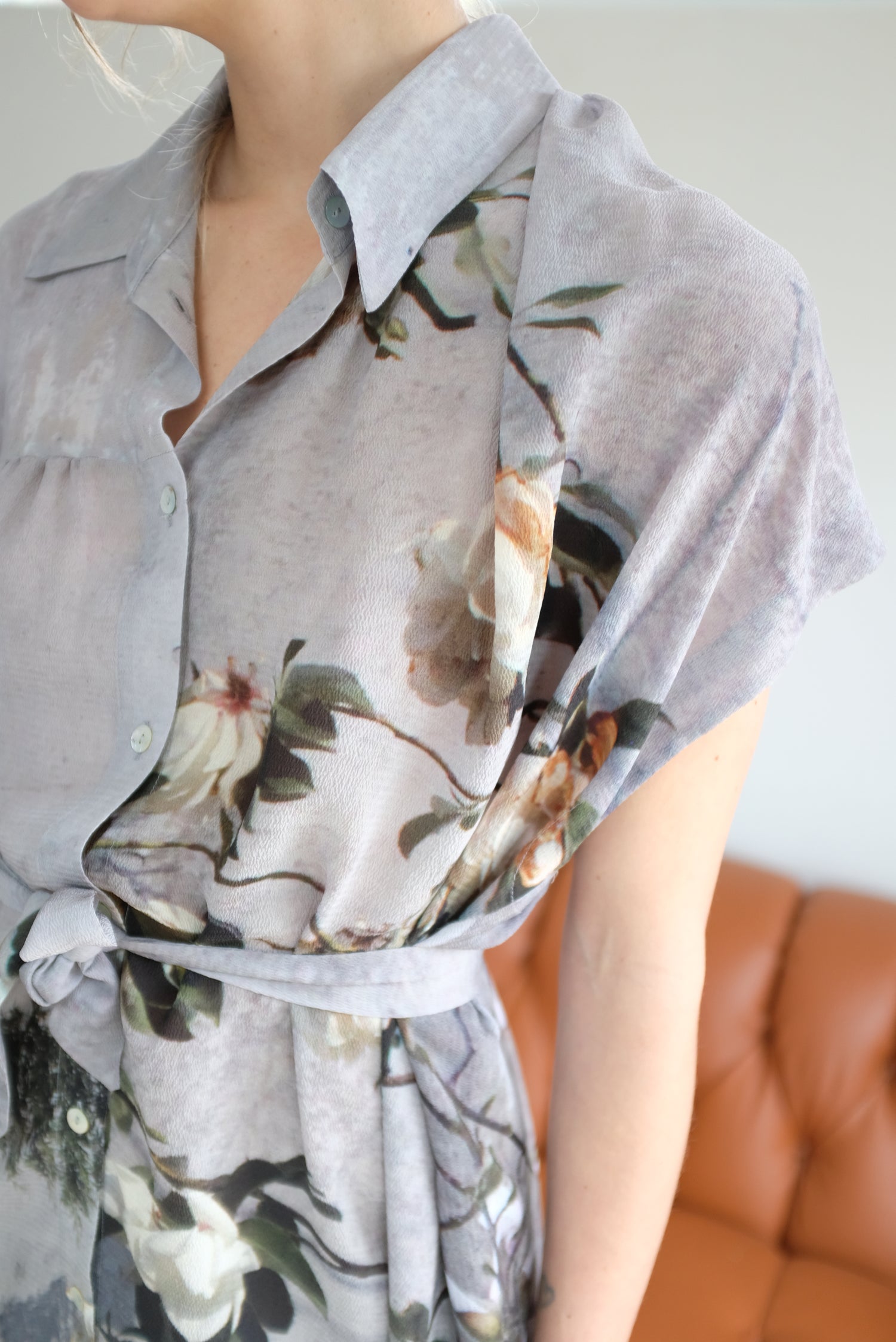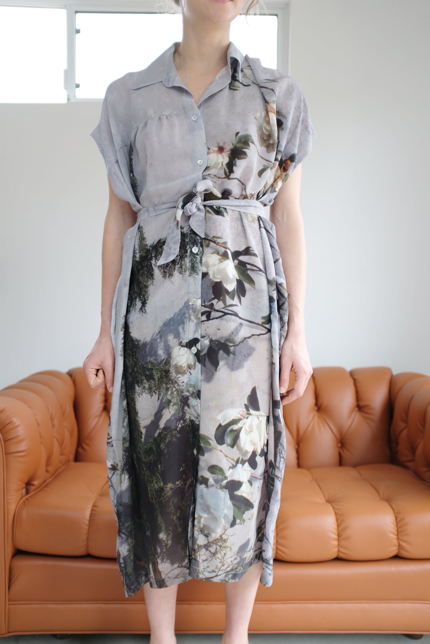 Anntian Silk Button Down Dress Floral Print Magnolie