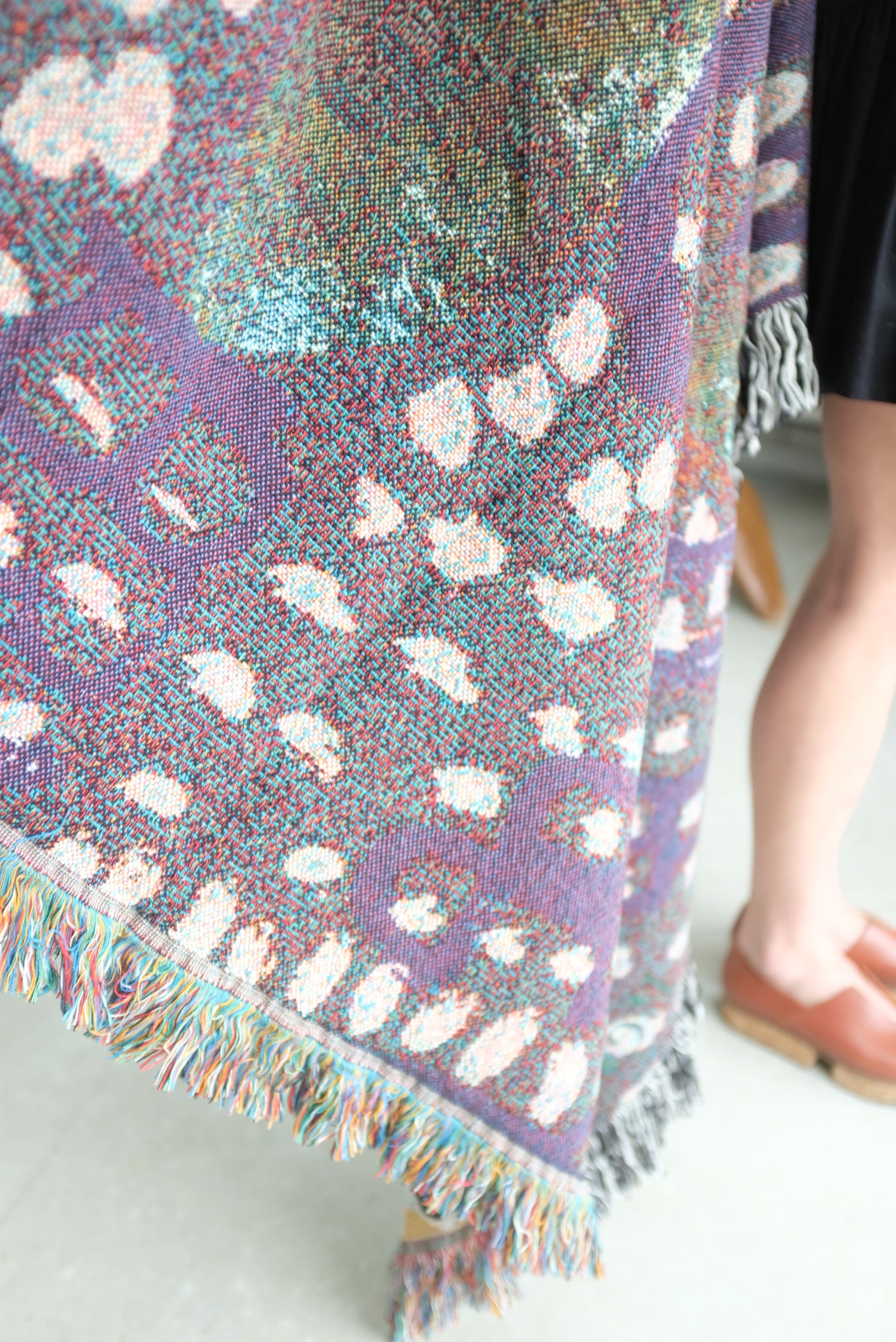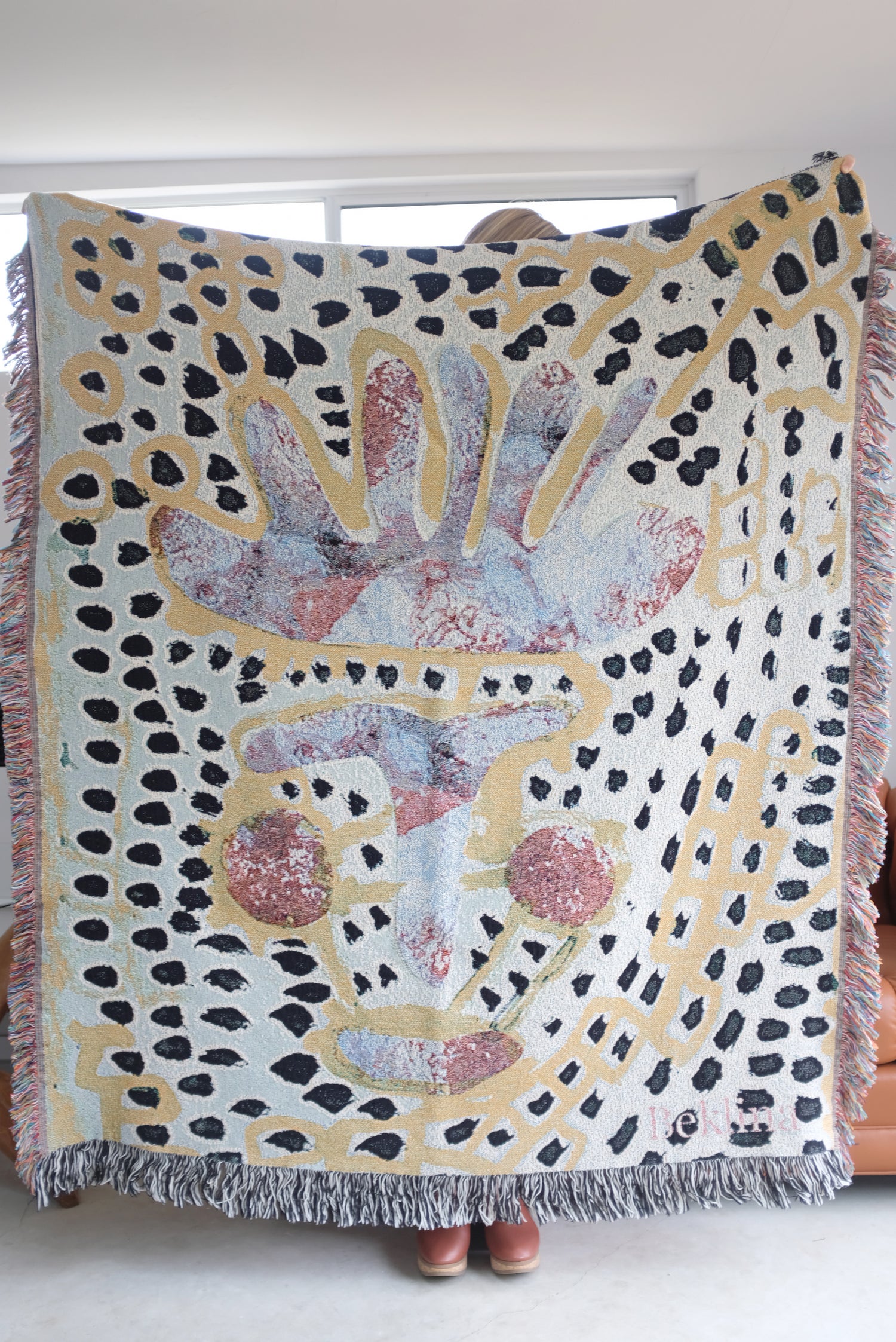 Exclusive to Beklina, limited edition, fringe ends. Machine washable. Measures approx. 50" x 58". 100% Cotton.