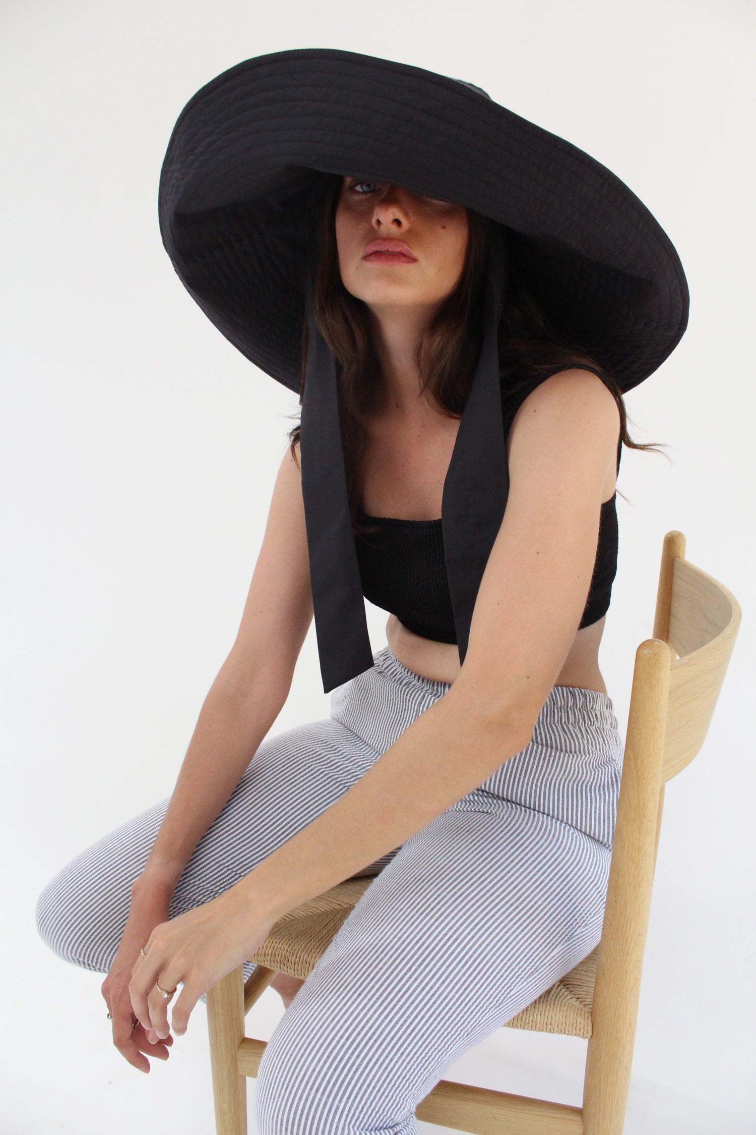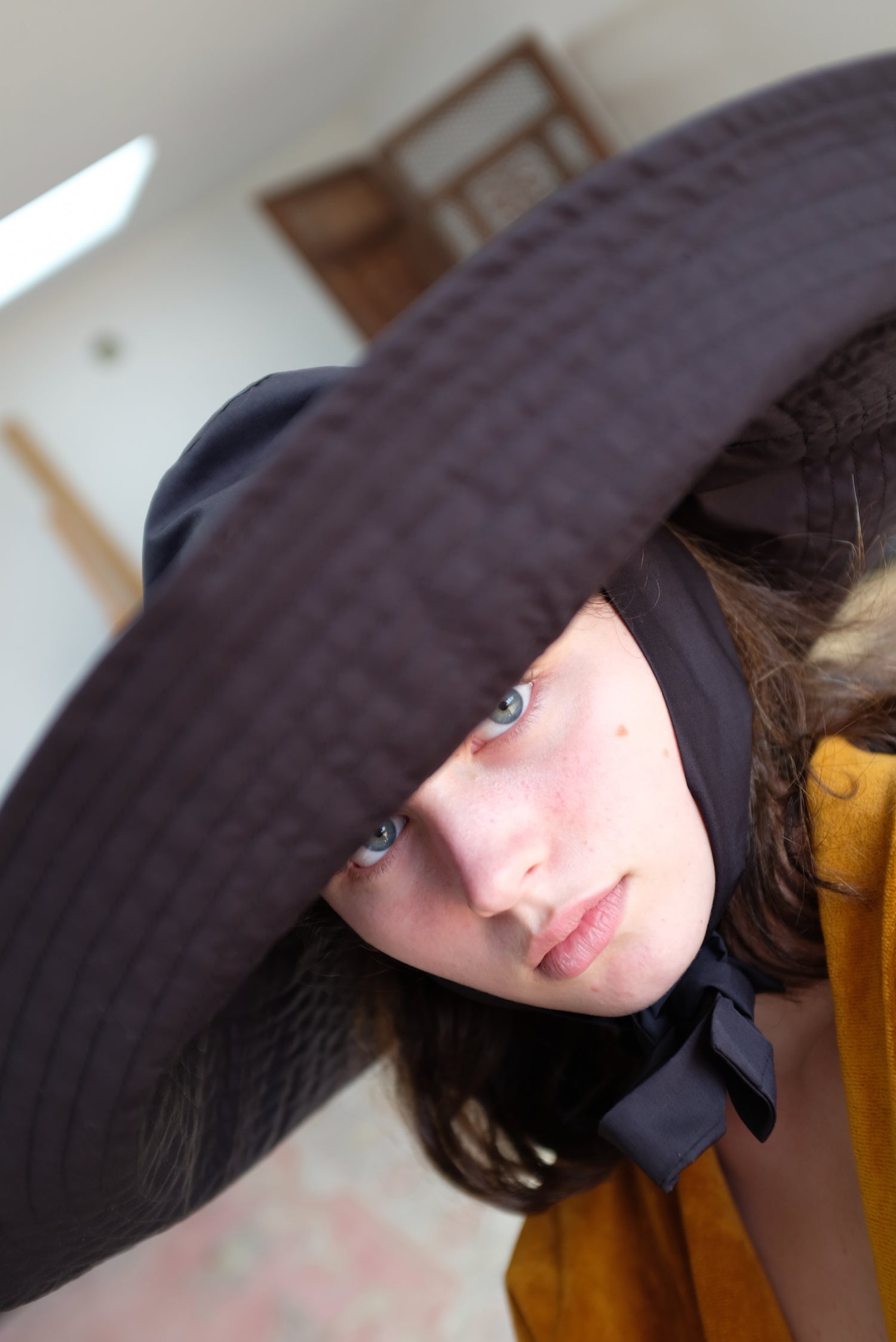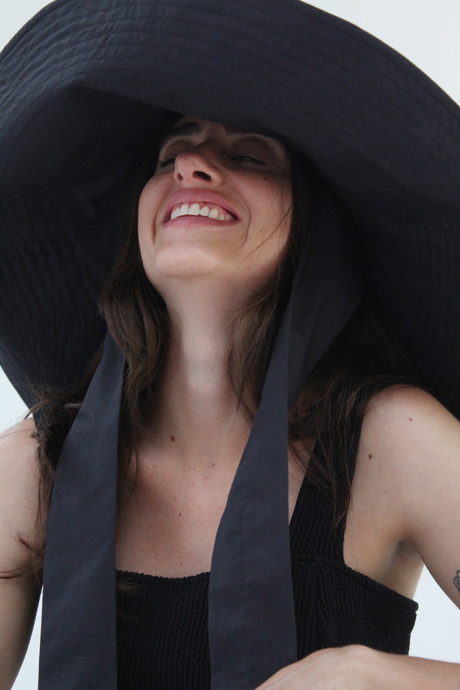 100% Cotton massive oversized floppy sunhat, full shade for face and shoulders, one size fits most, self tie sash for windy weather, or just some extra coverage. Travels and washable. Ultra sun protection. Made from Japanese textured woven cotton.