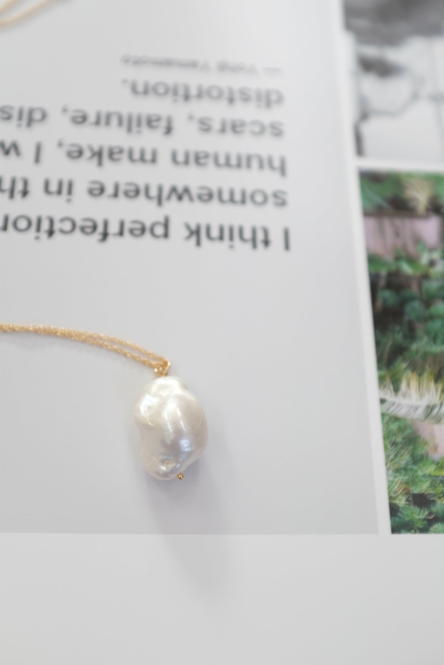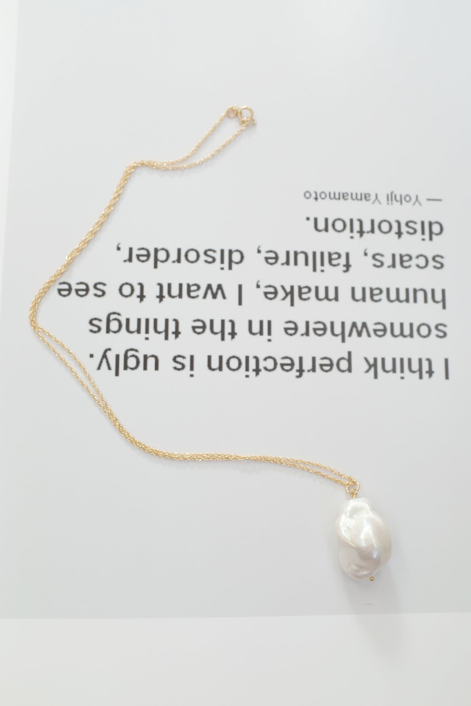 Baroque freshwater pearl pendant on chain necklace. Every pearl is unique and measures approximately 1”. 14K gold filled. Aprox length is 19.5”.