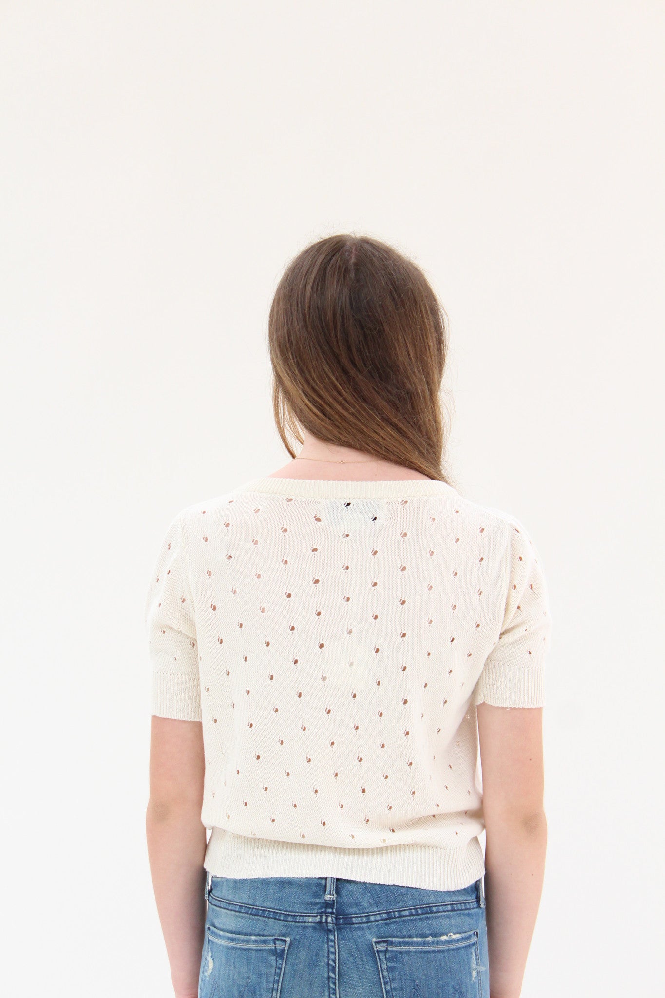 100% Organic cotton, light weight, 3/4 sleeve, 2" cuff and hems. Easy, versatile, classic knit top. Exclusive to Beklina. Carmella is wearing size small/medium. Machine washable cold/gentle and air dry.
