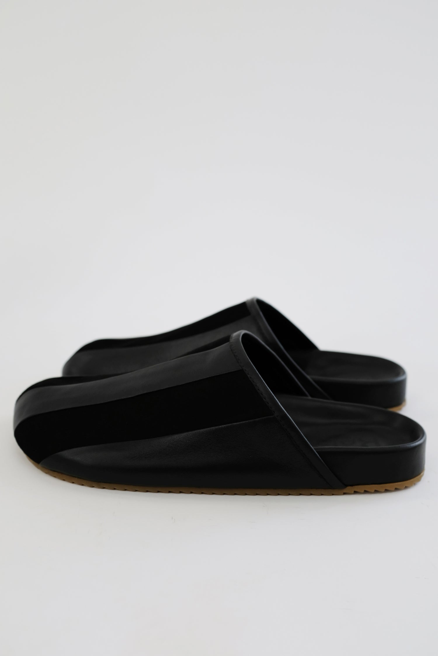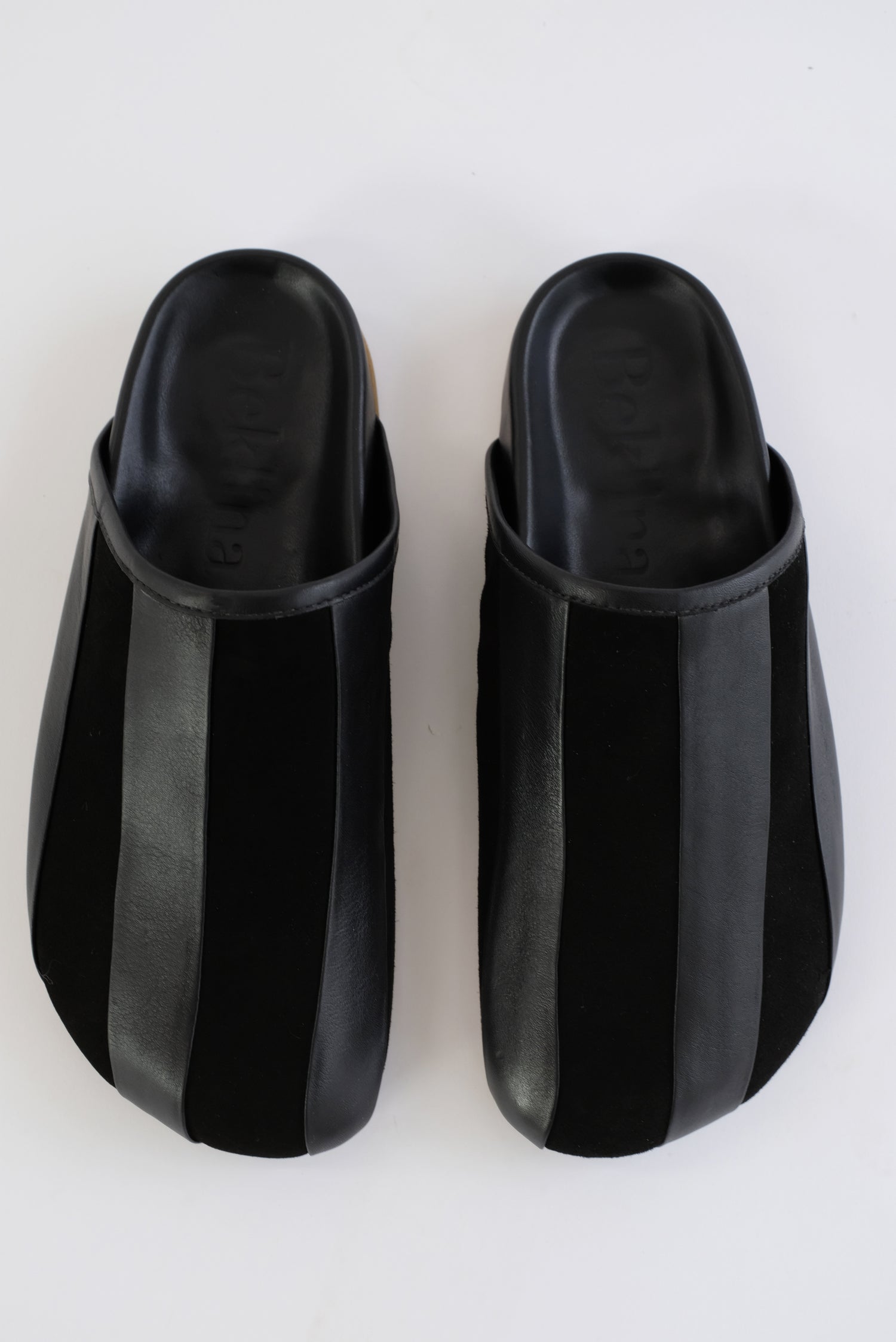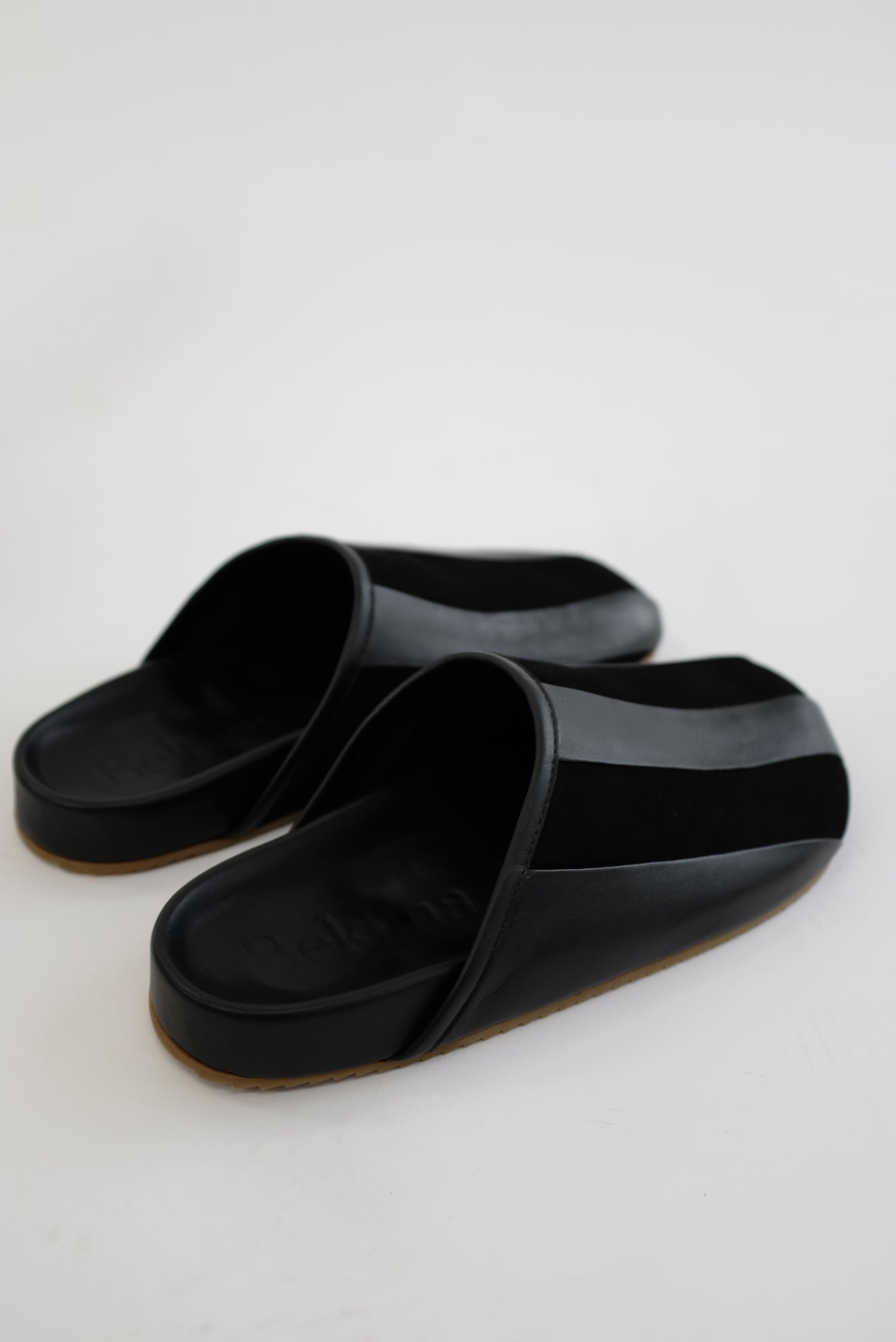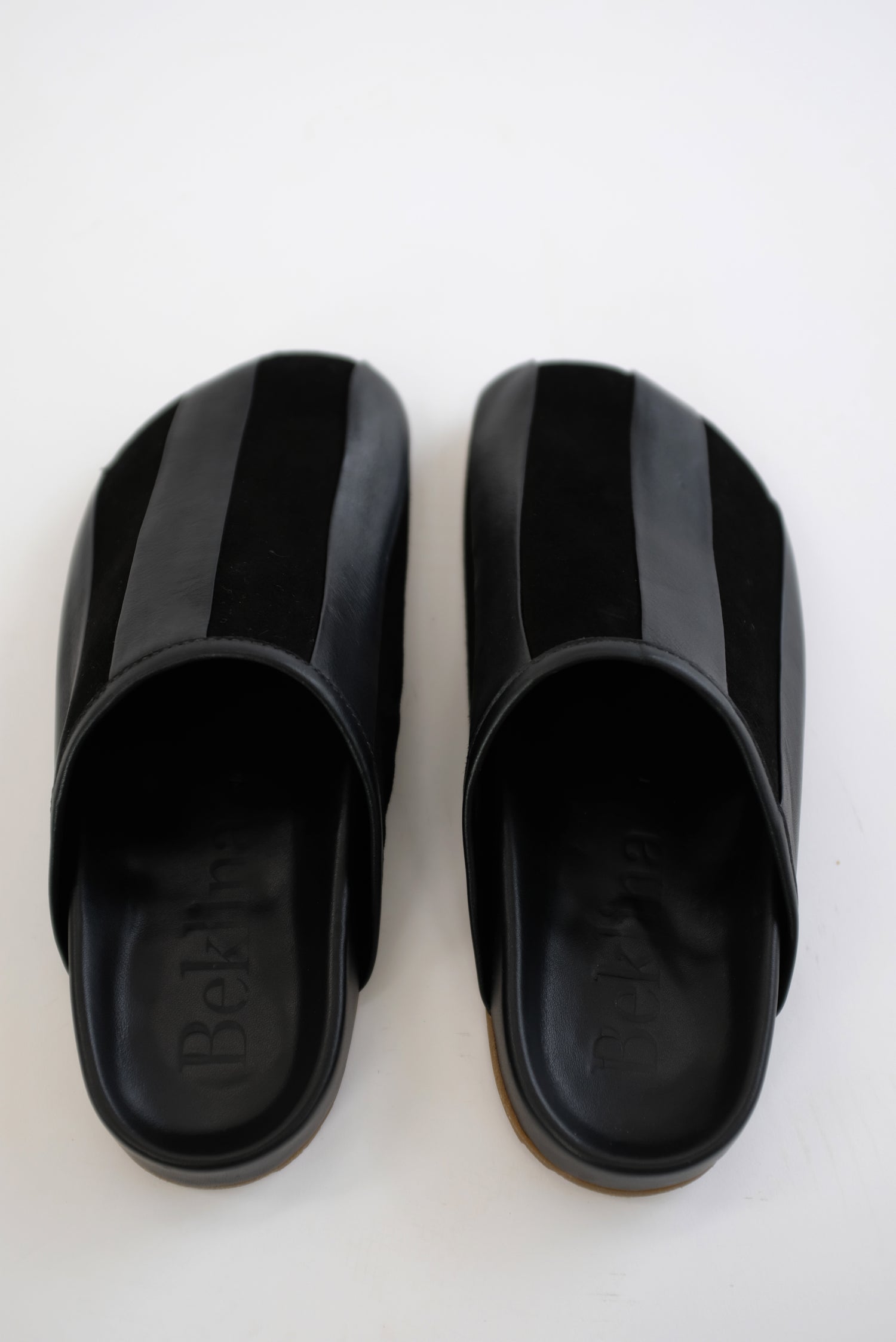 Ultra comfy luxurious slip on mule, molds to your feet. Alternating smooth leather and suede leather upper, leather wrapped all natural tree sap rubber sole, sustainably harvested in the Amazon rainforest of Peru. 100% soft Italian leather.