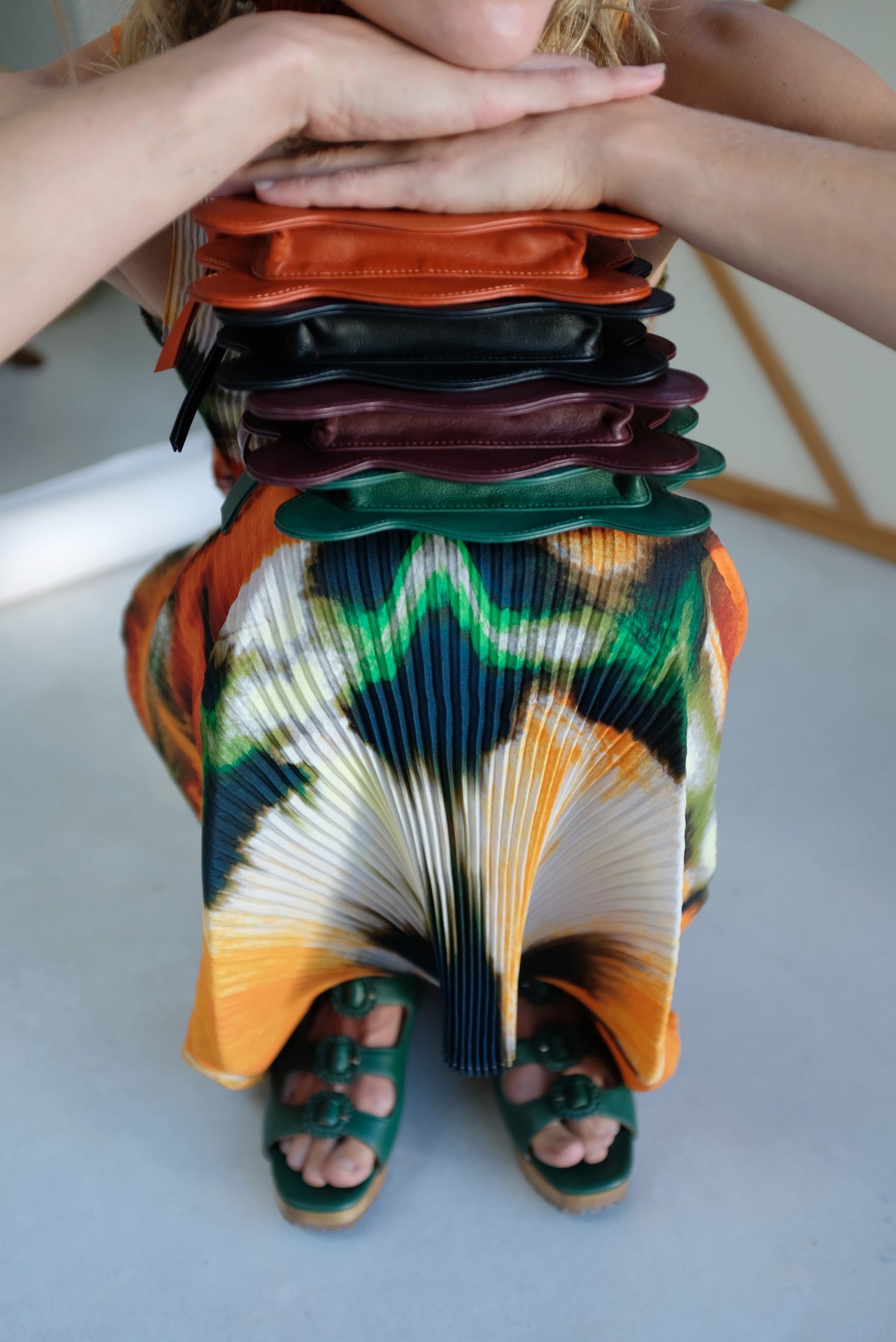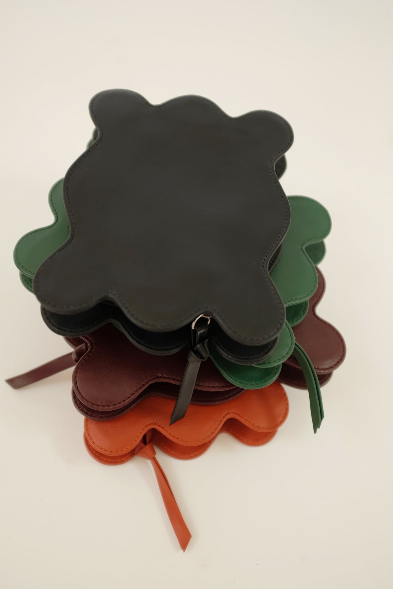 Wiggle Leather: 5.5" tall x 7.5" wide, 1.5" deep