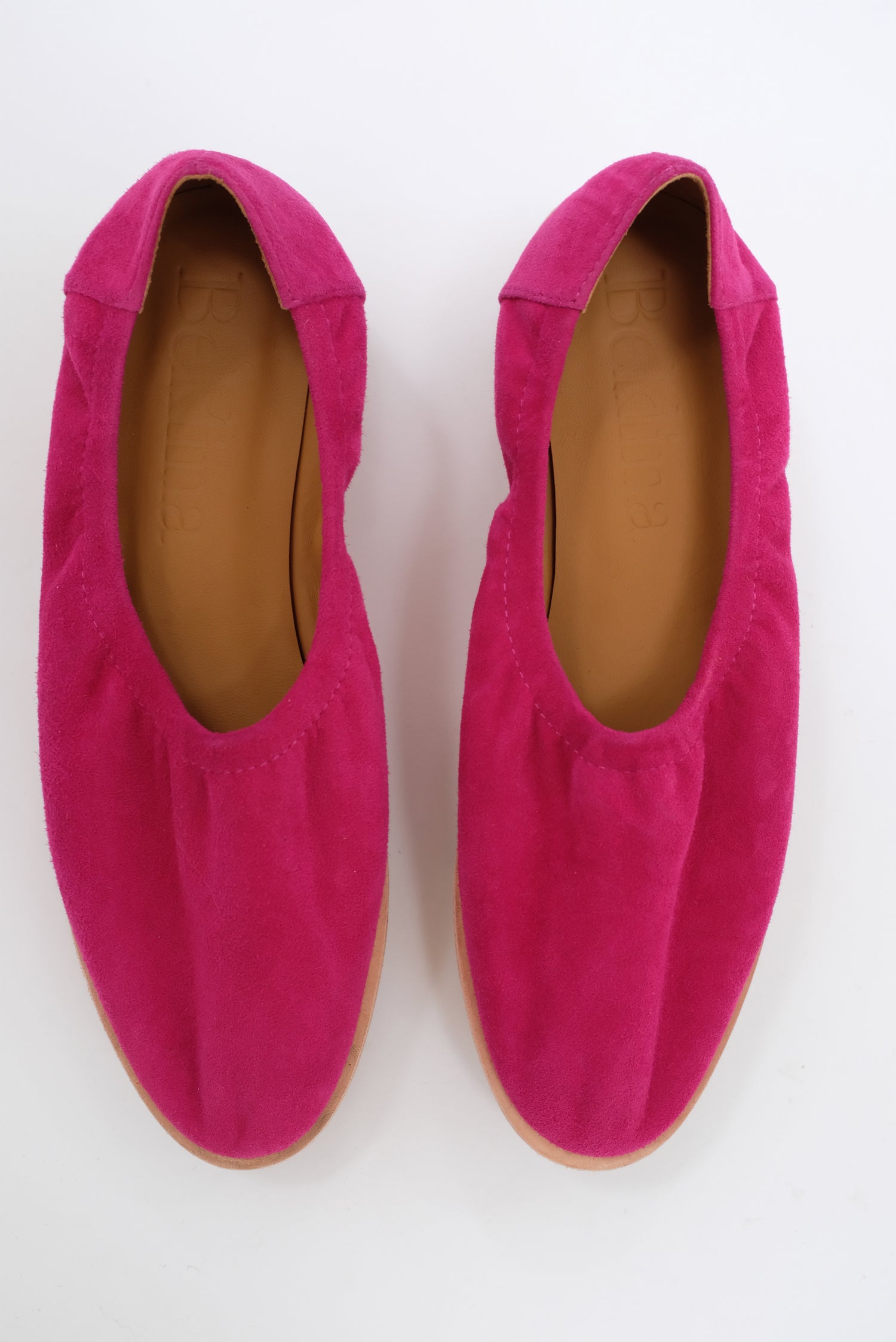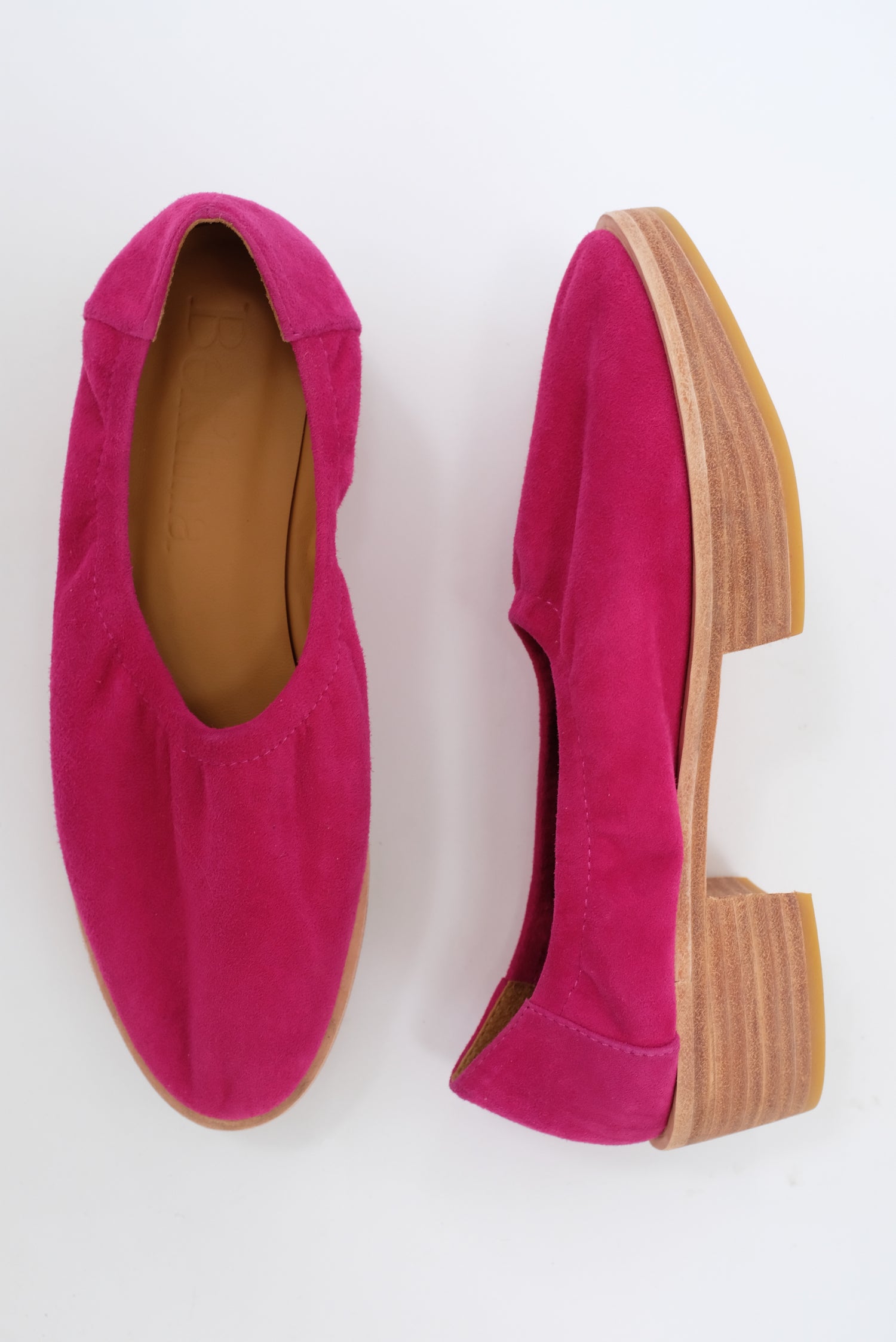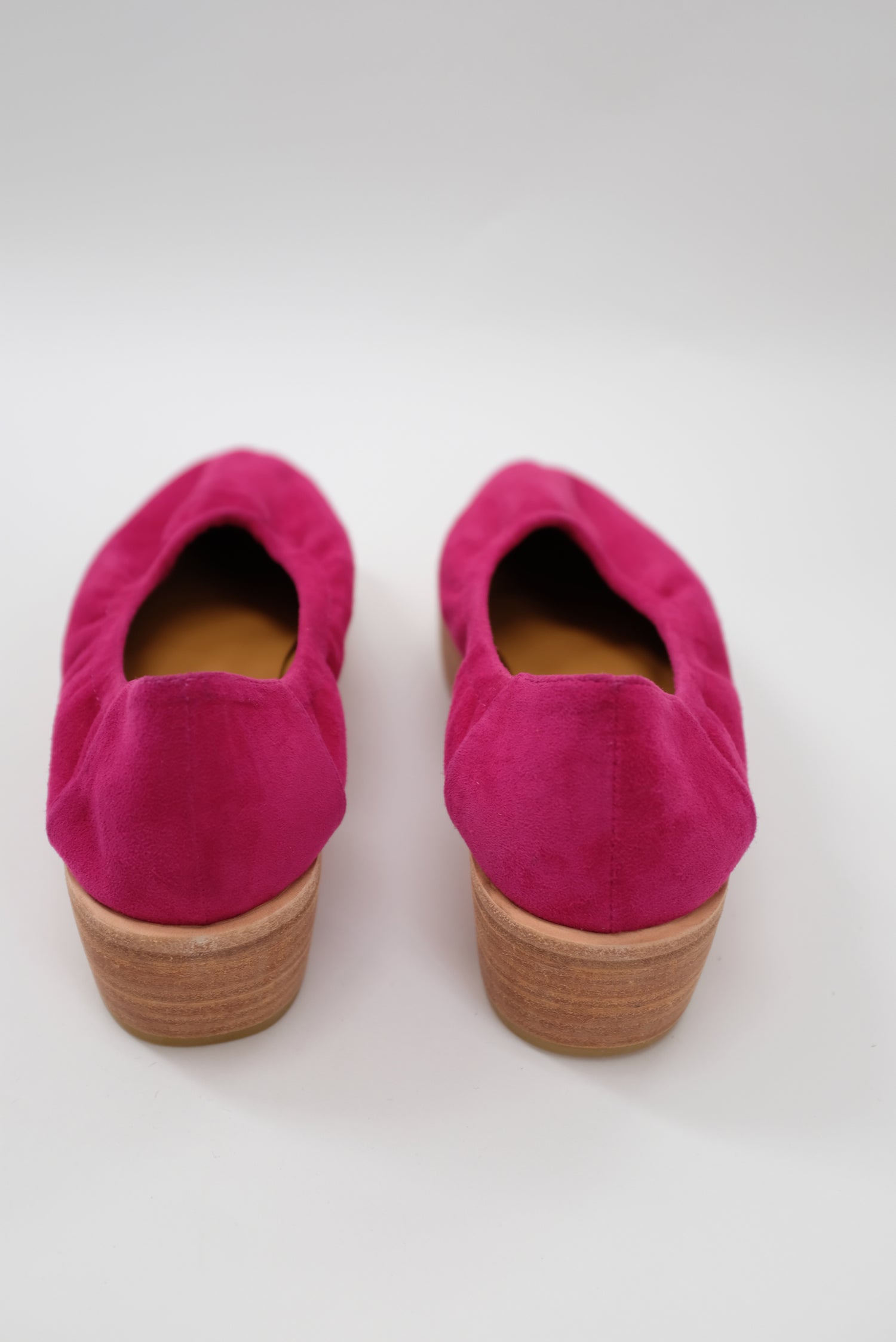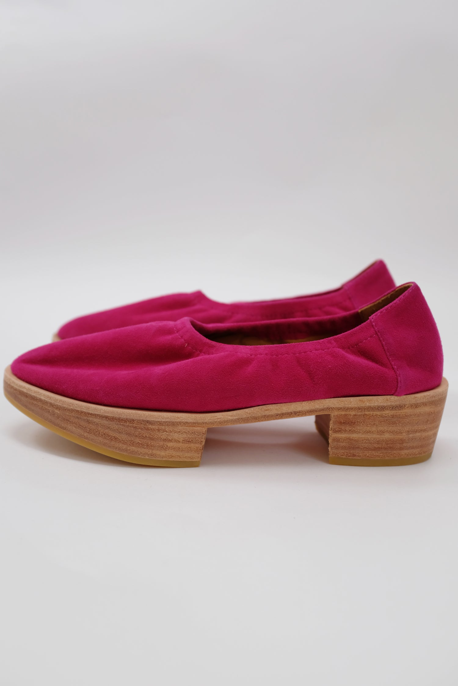 Buttery soft suede leather upper, with a luxurious glove fit that molds to your feet. Our favorite everyday shoe. 1.75" back heel, 1" front platform, and leather welt.
