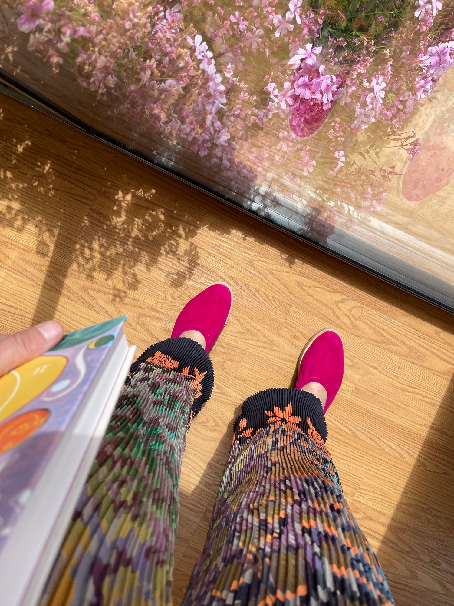 The heel is in two parts, allowing the shoe's middle leather layer base to just slightly bend. They feel like you're wearing the most comfortable flats.