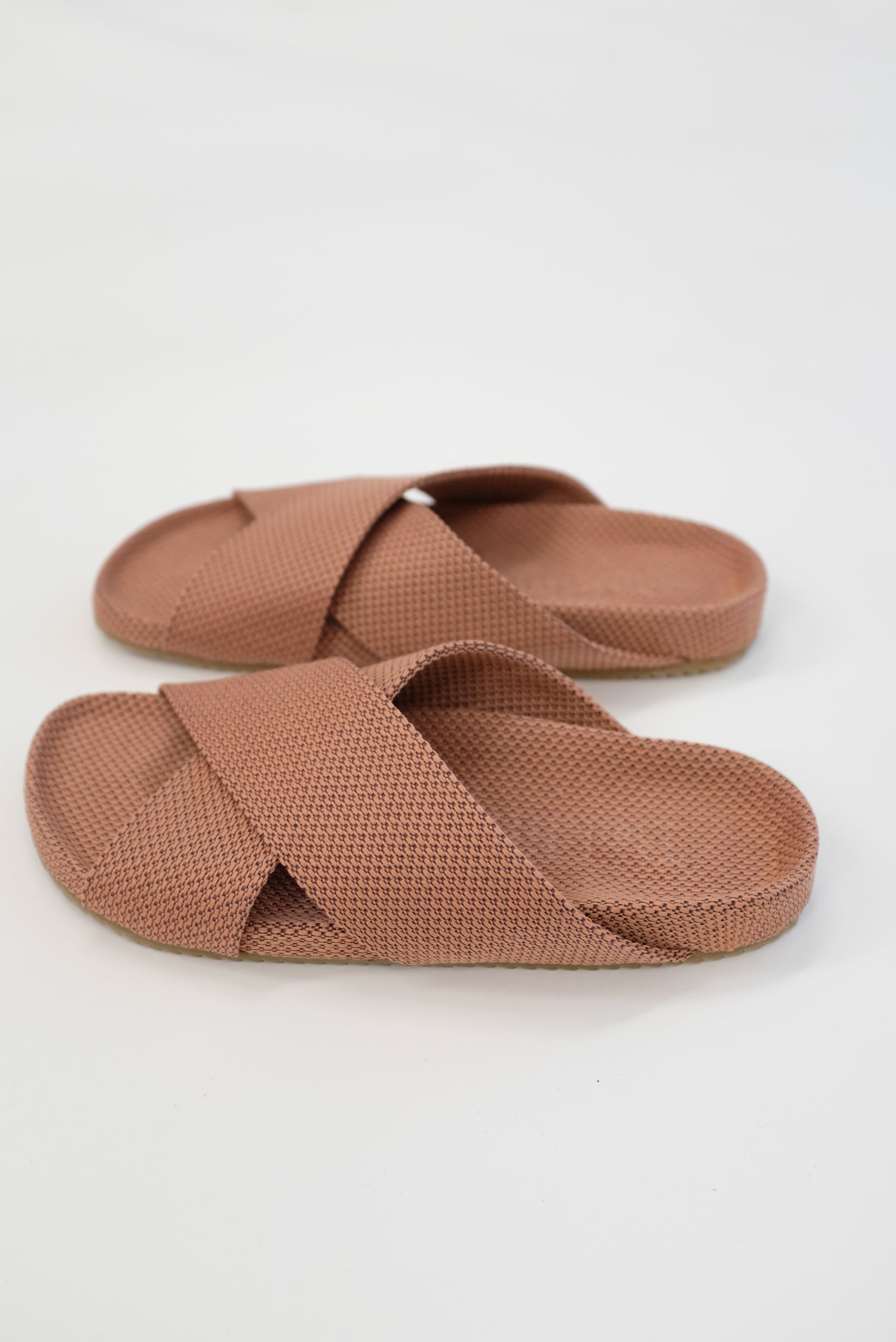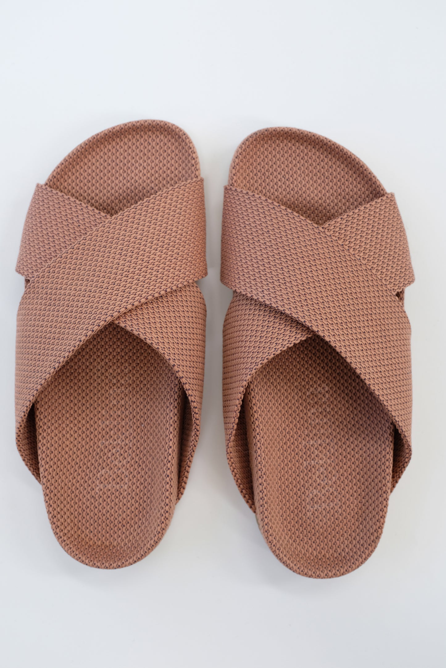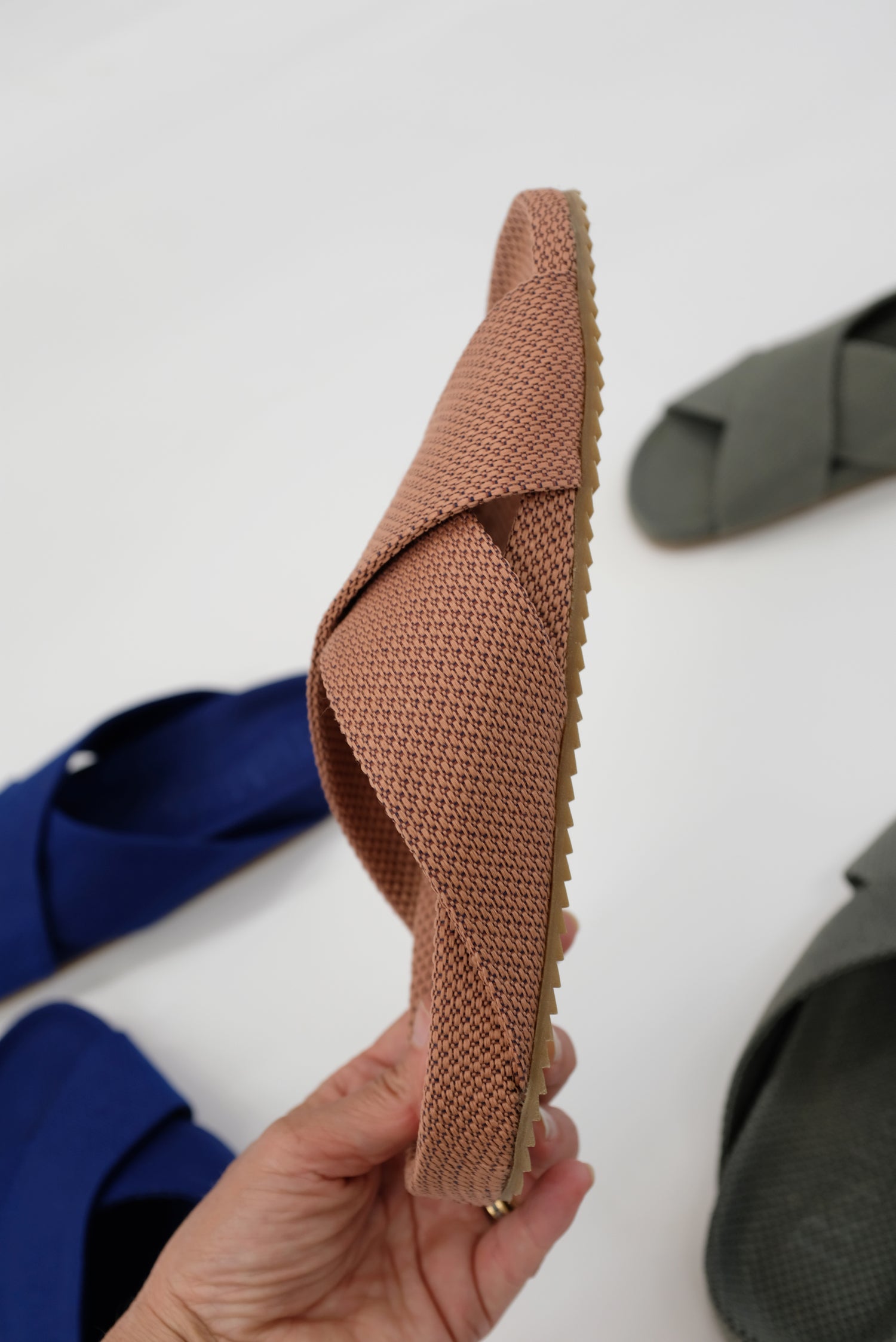 Comfy cross slide wrapped in 100% ocean bound polyester. High performance fabric woven in the Netherlands, made from 100% plastic waste recovered from our beautiful oceans. Our Gubi soles mold to your feet, made from natural tree sap rubber, sustainably harvested in the Amazon Jungle of Peru.