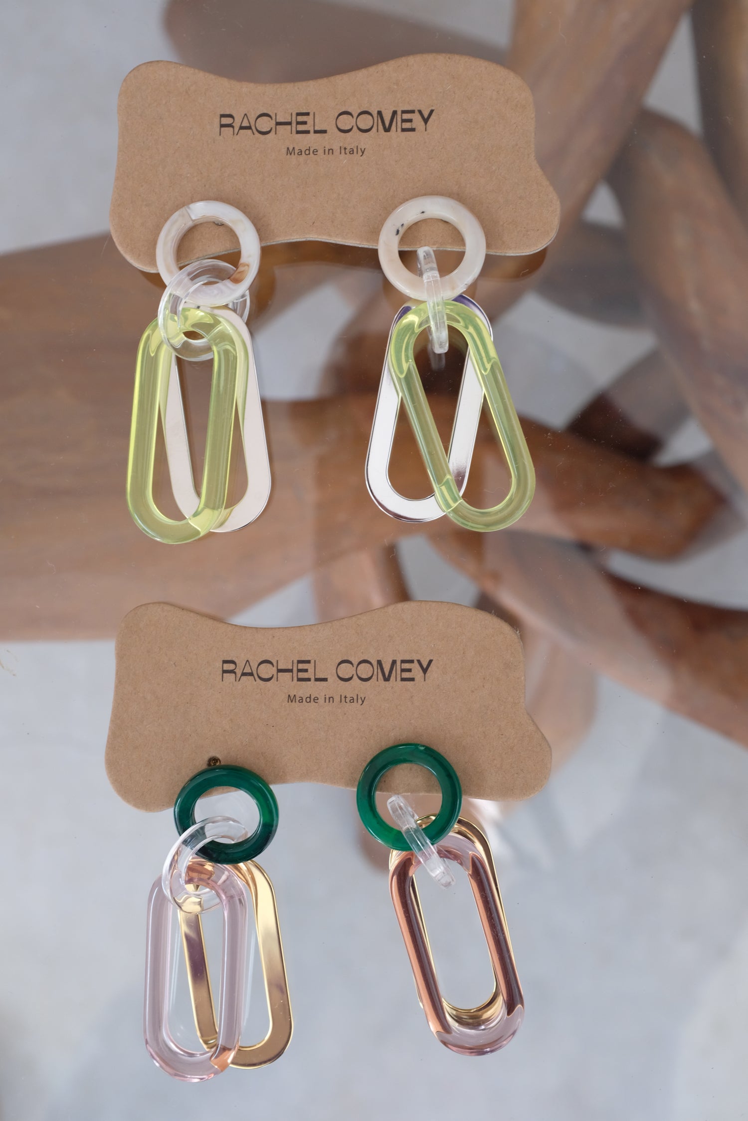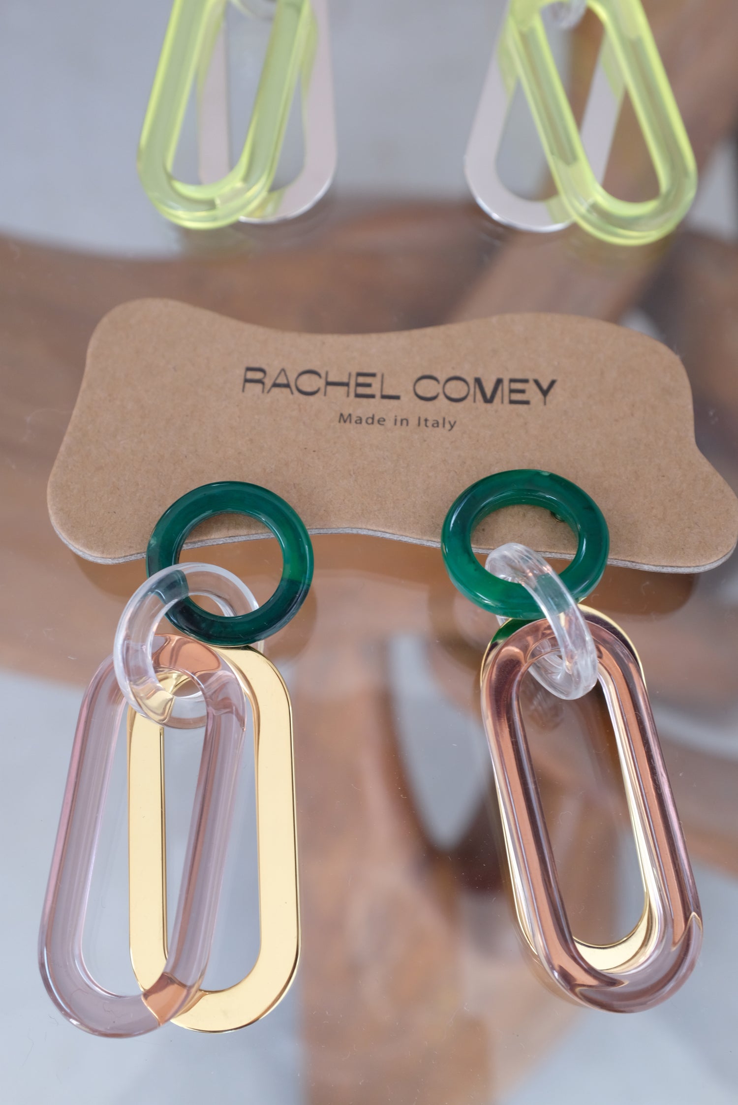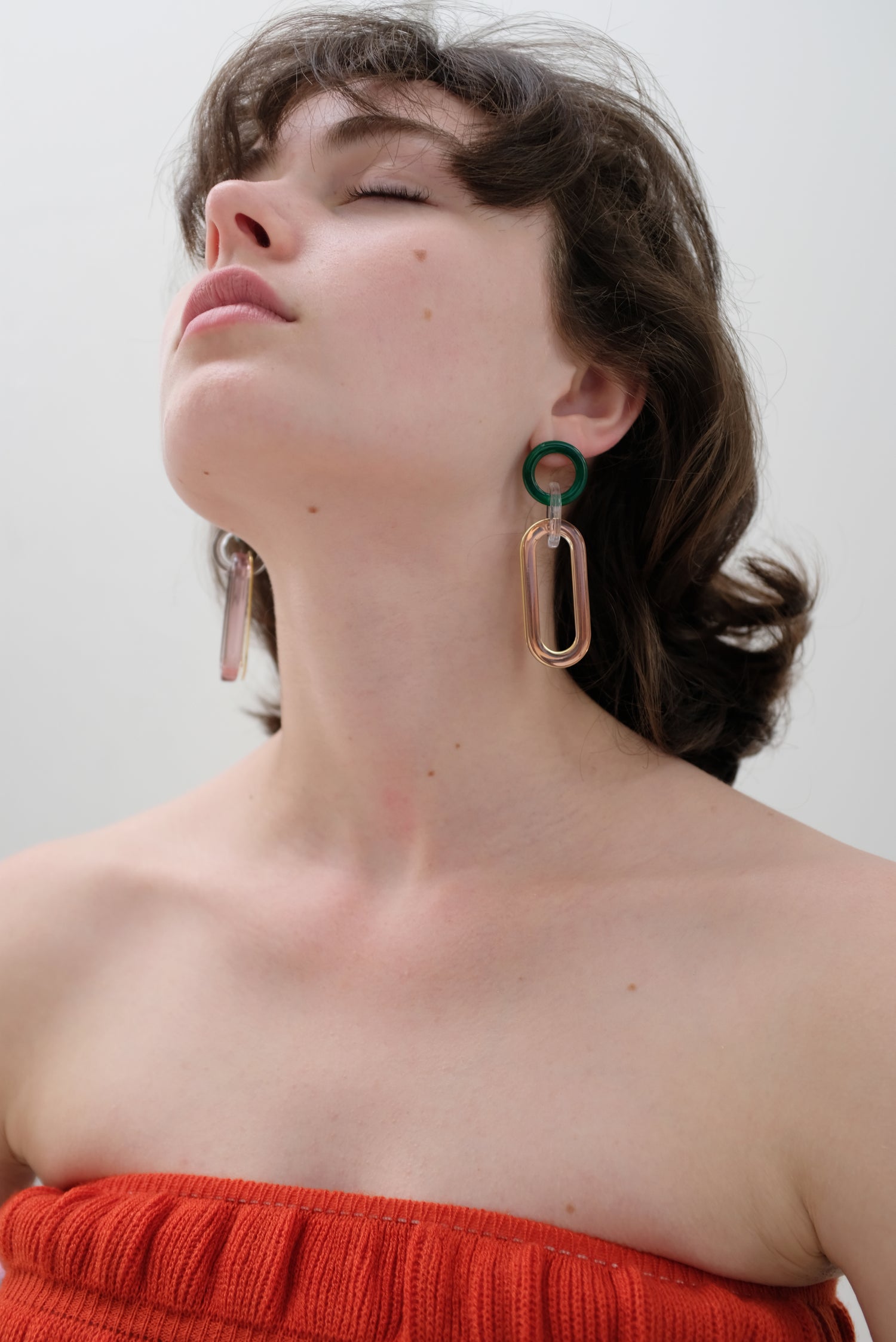 Drop acrylic earrings. Stud fastening for pierced ears. Plated steel post. Aprox 3"