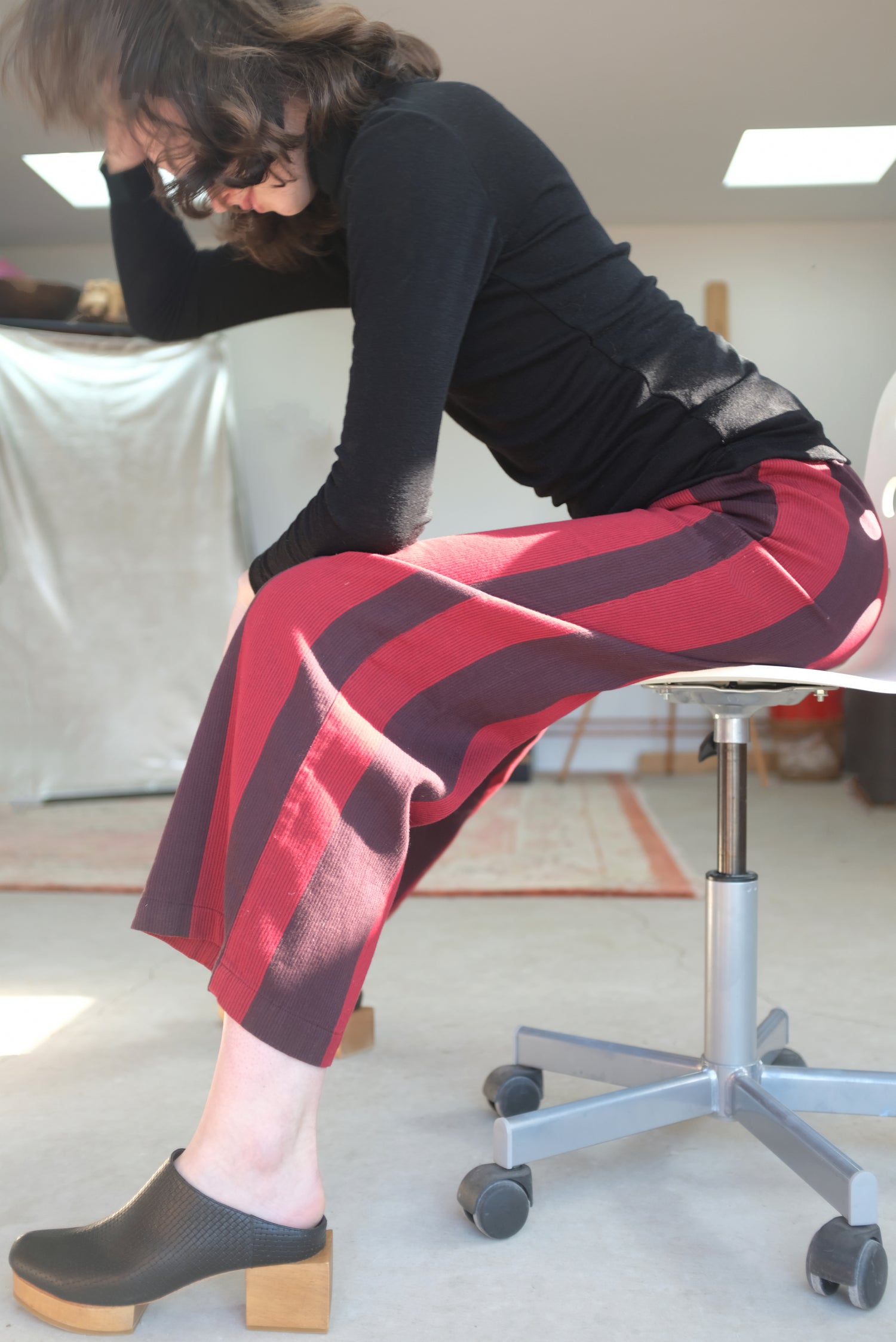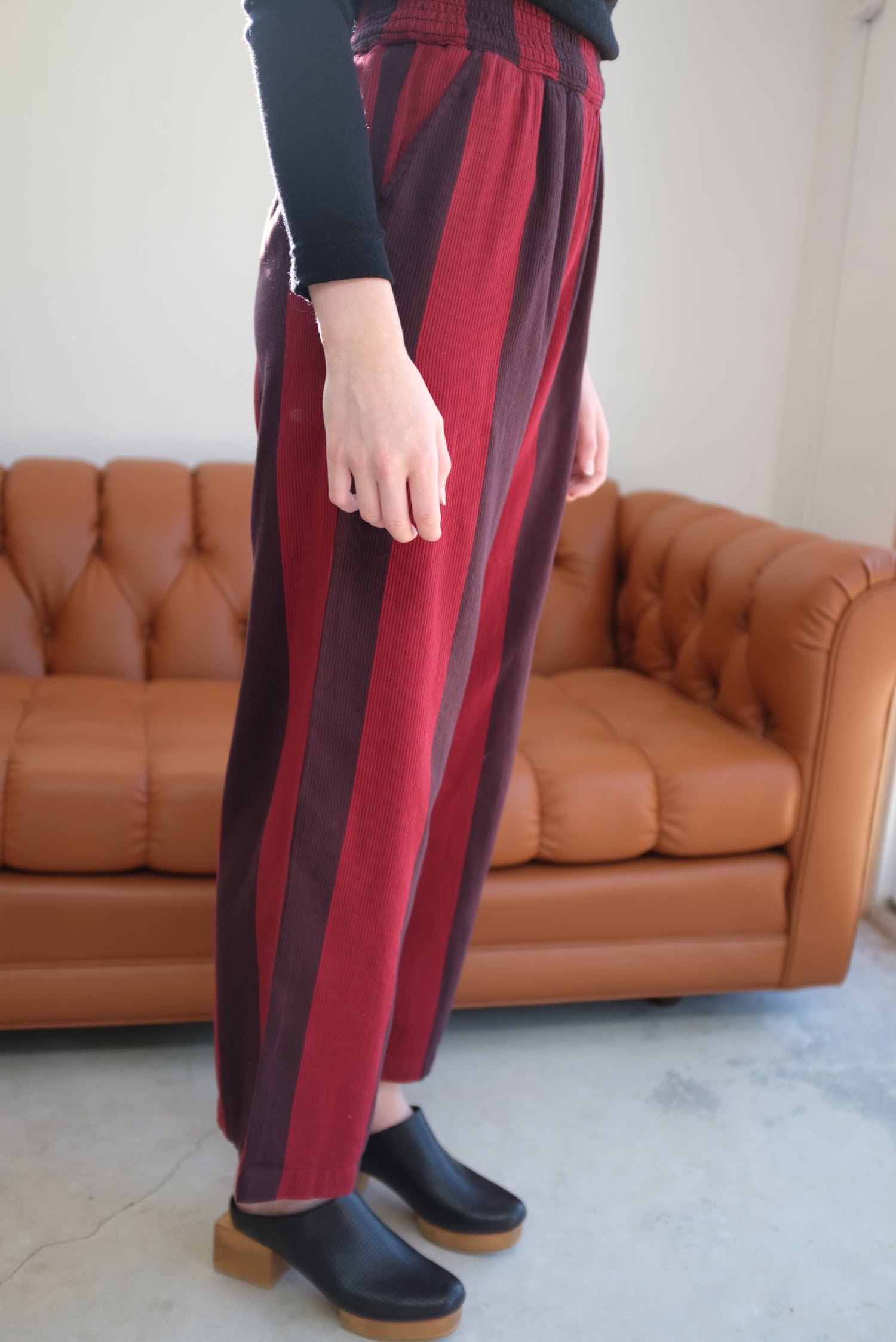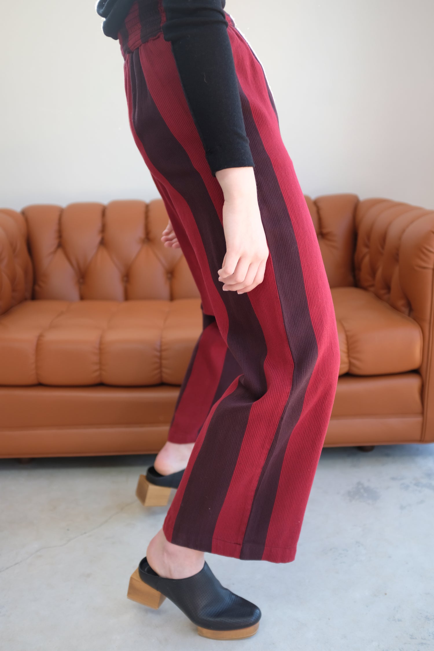 Cropped wide legged pant, 3" elasticated waistband, front pockets. 100% Cotton.
