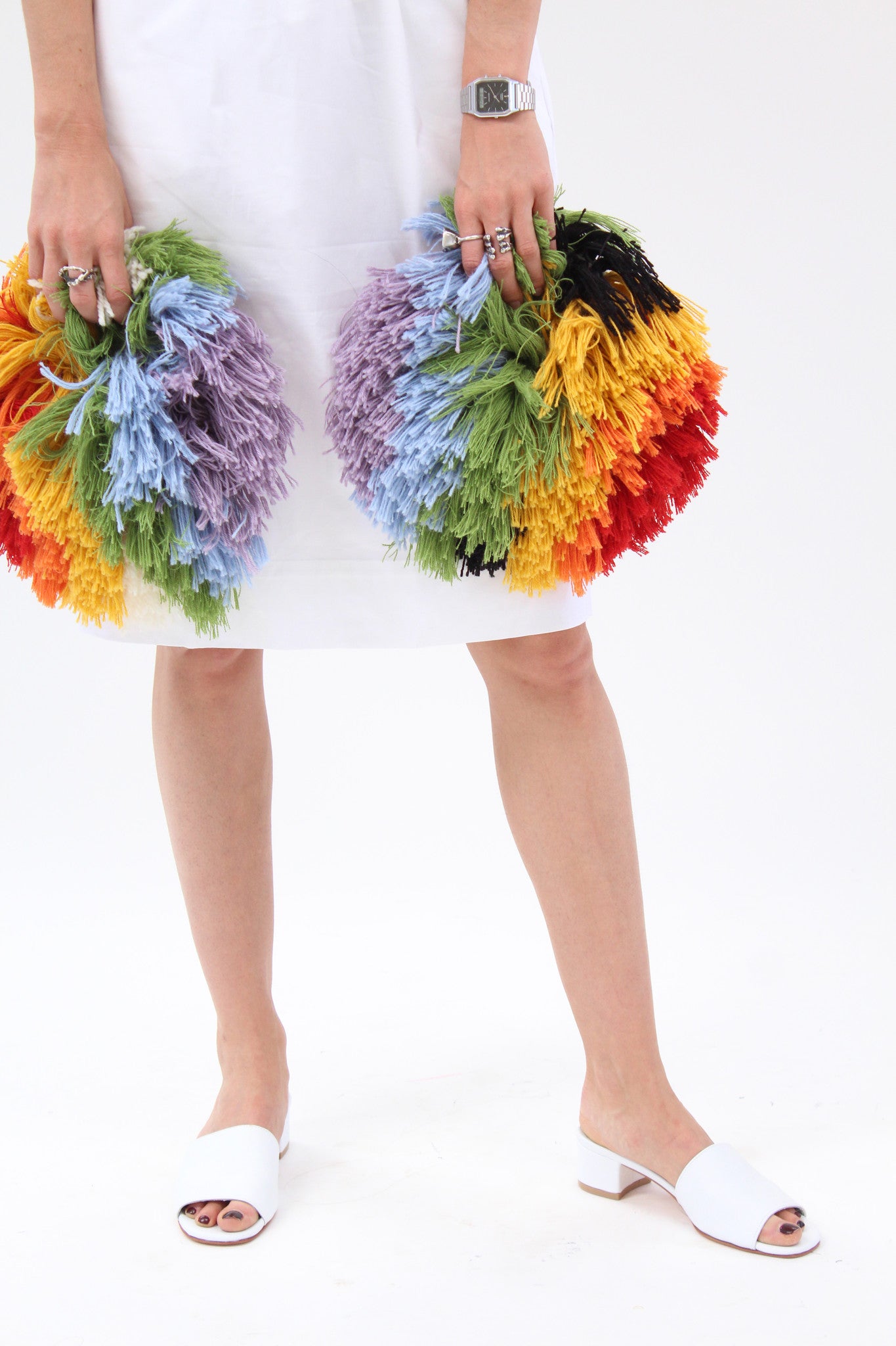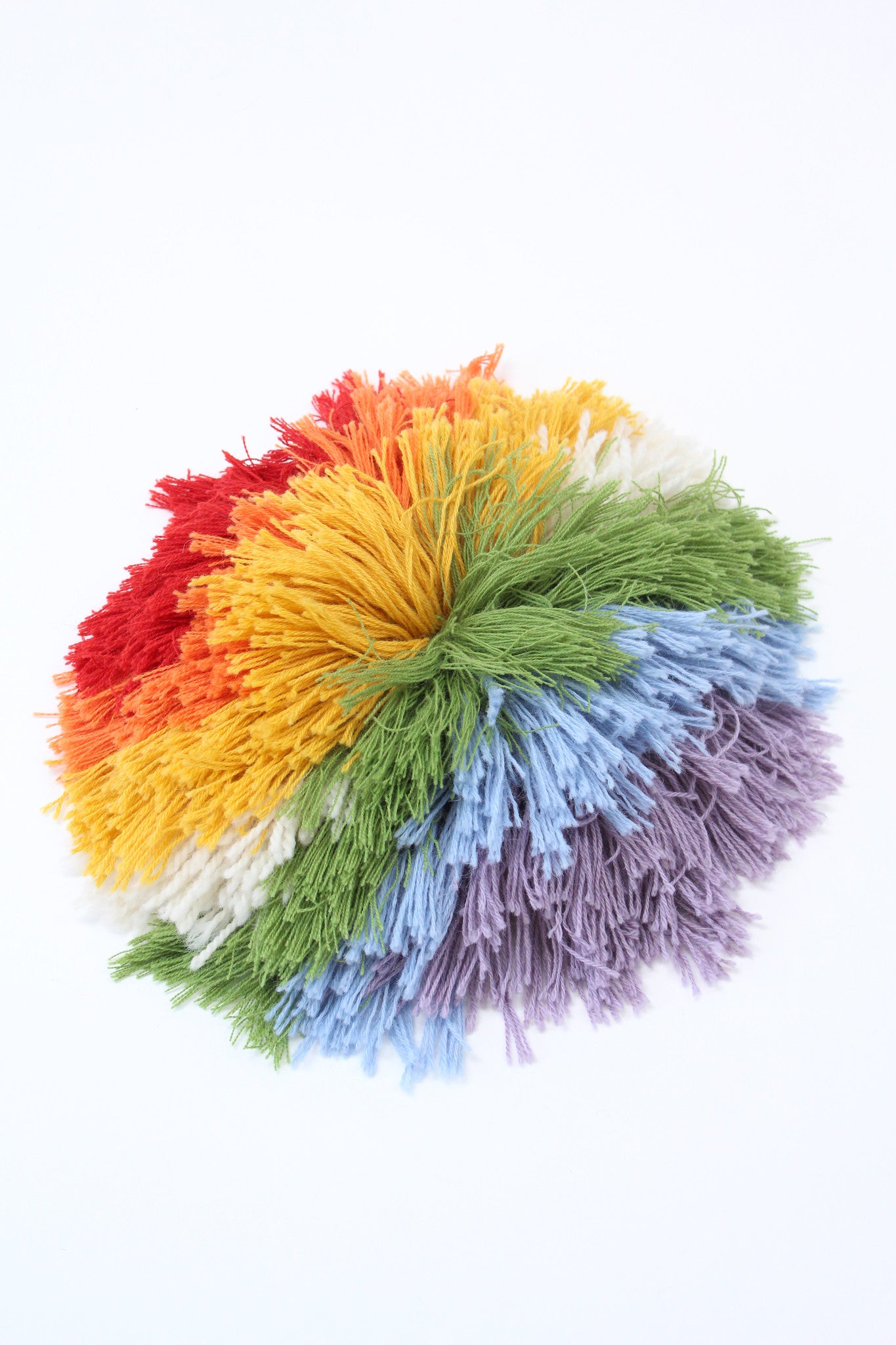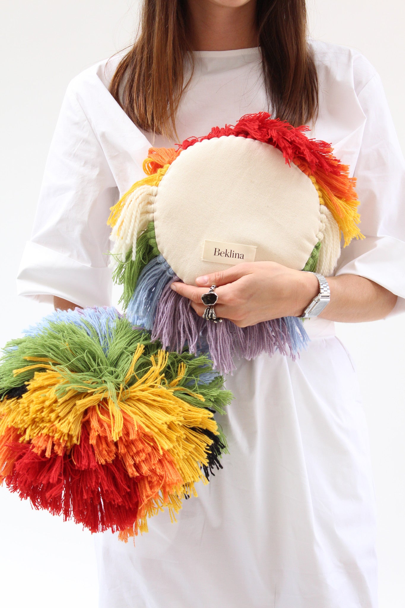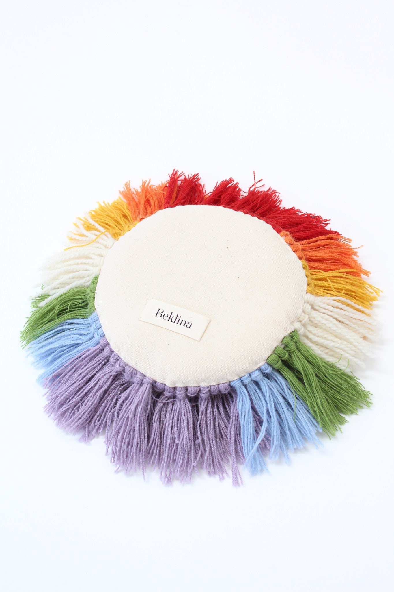 Alpaca Handmade Fringe Pillow Rainbow Ivory