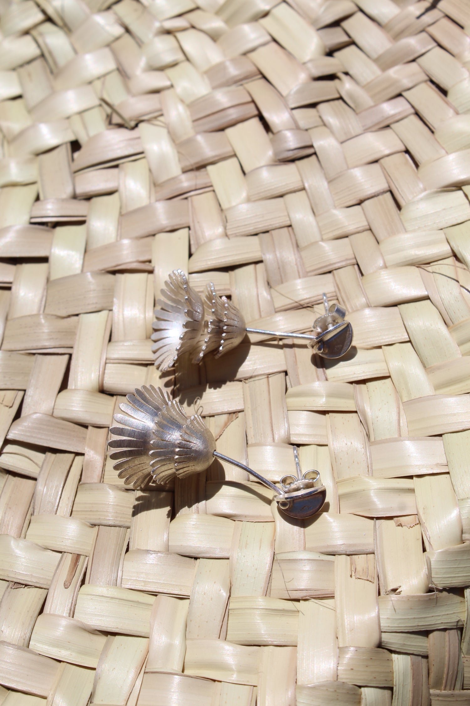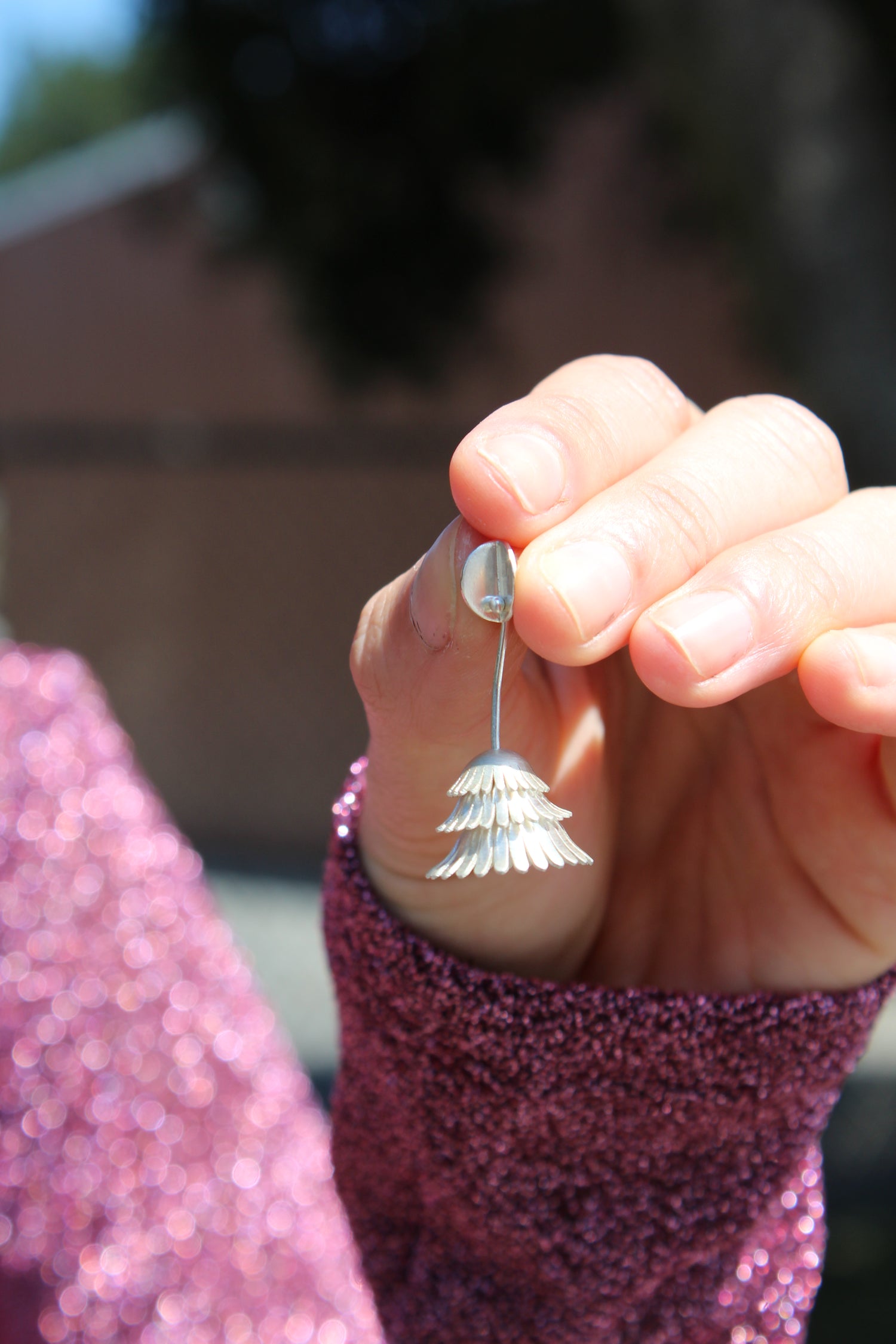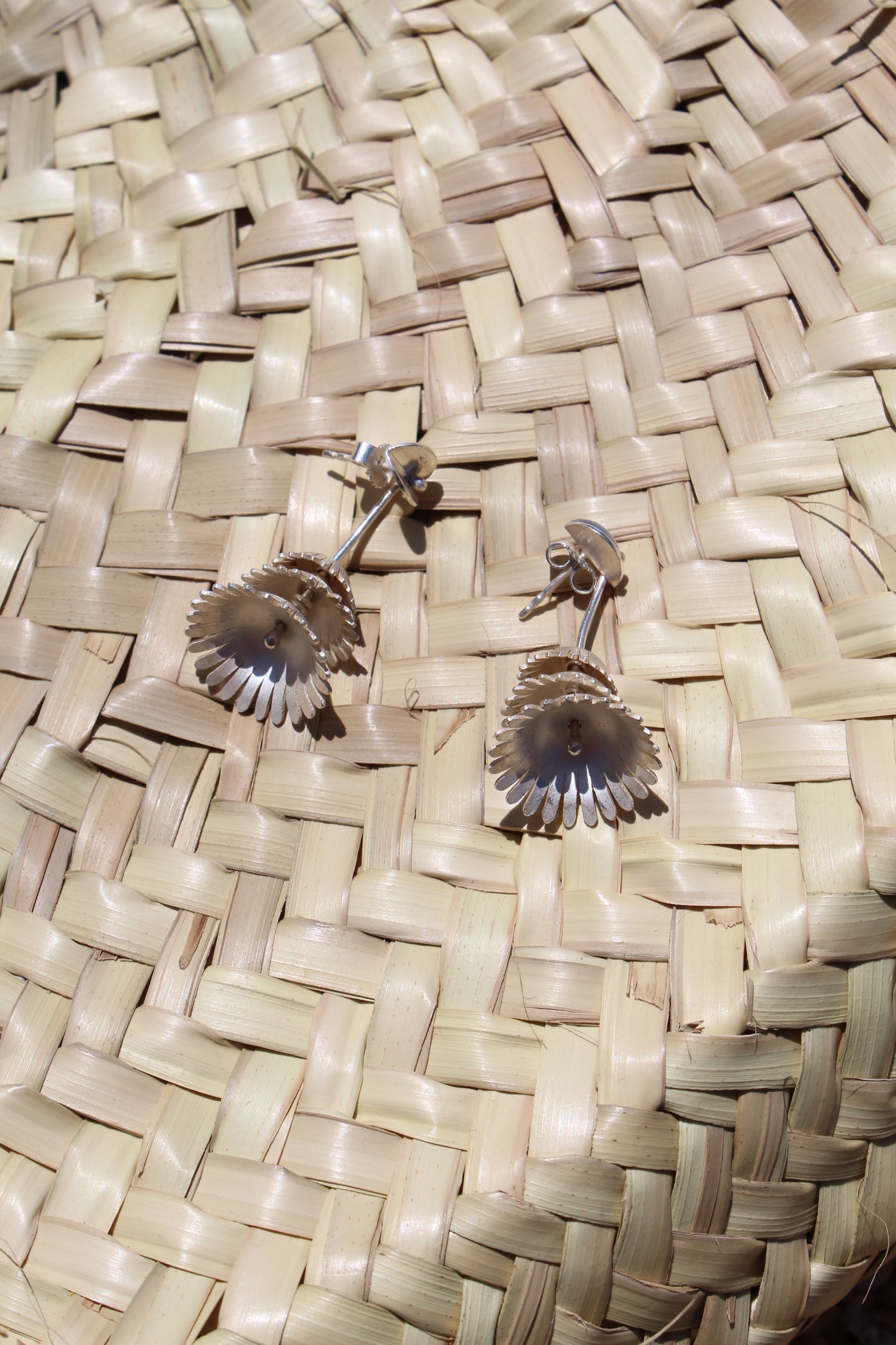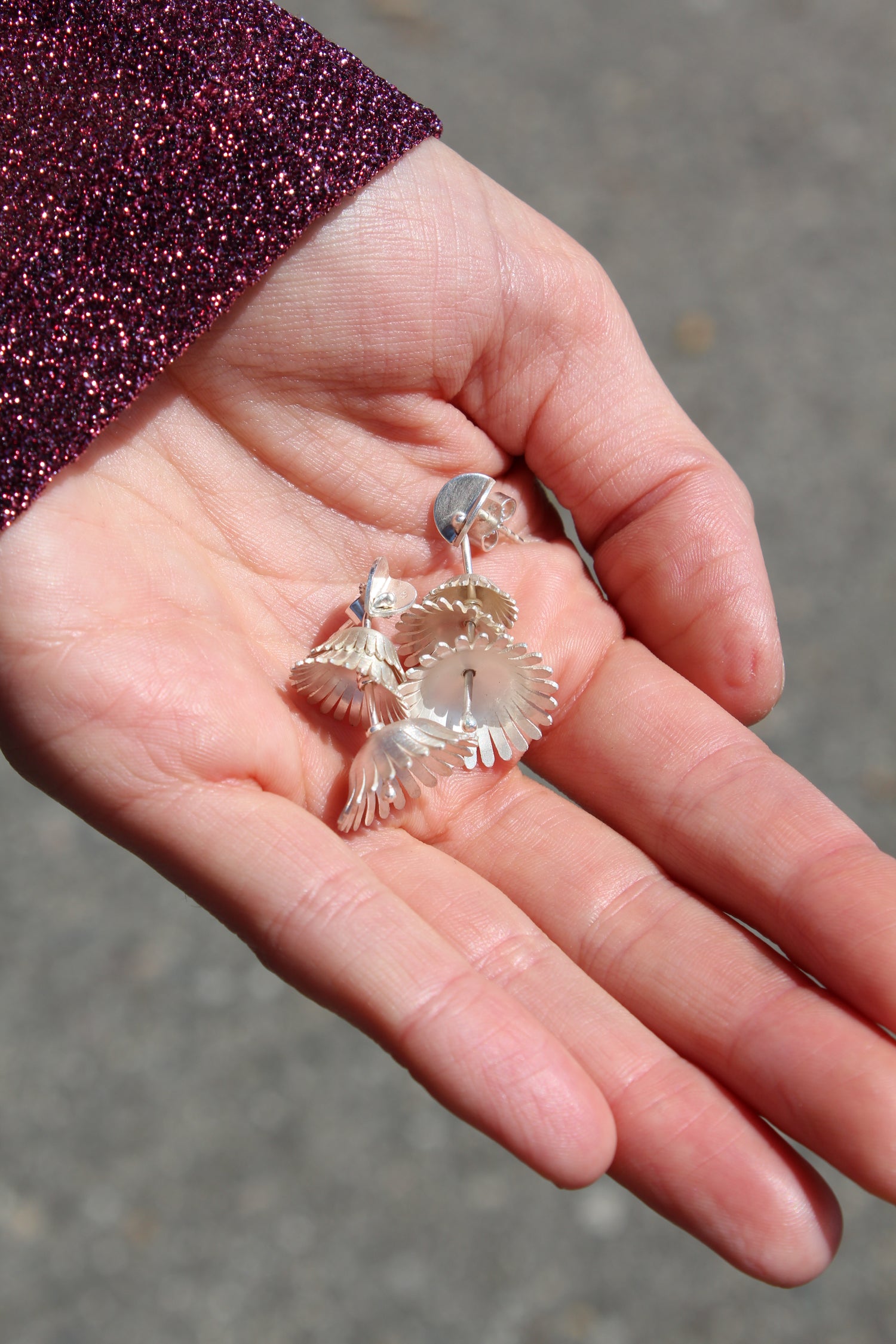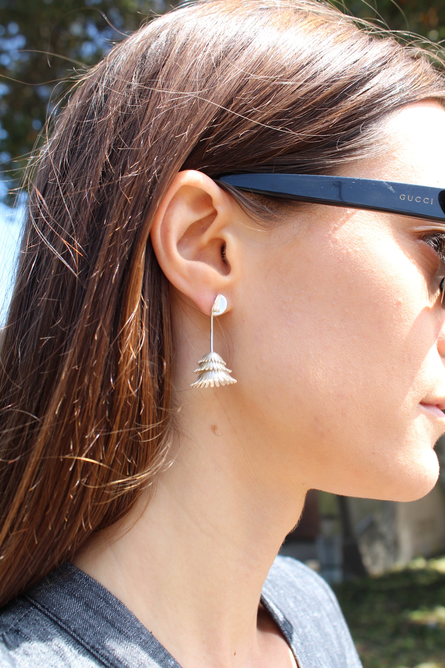 Handmade in France by the designer. 3 Stacked sterling silver flowers, approximately 1 1/2" drop.