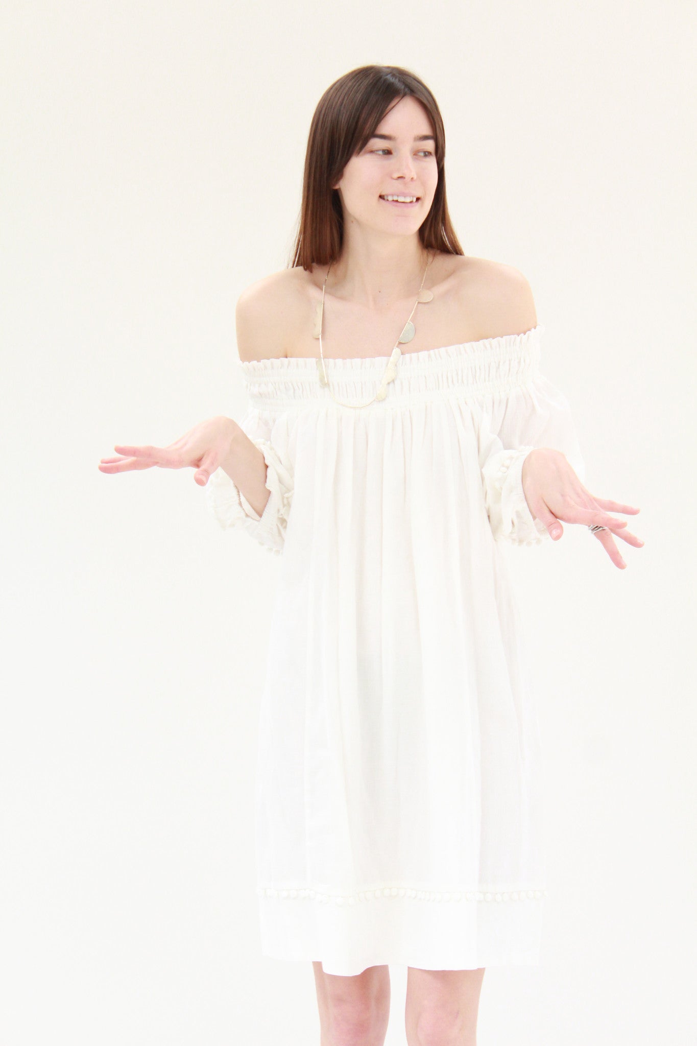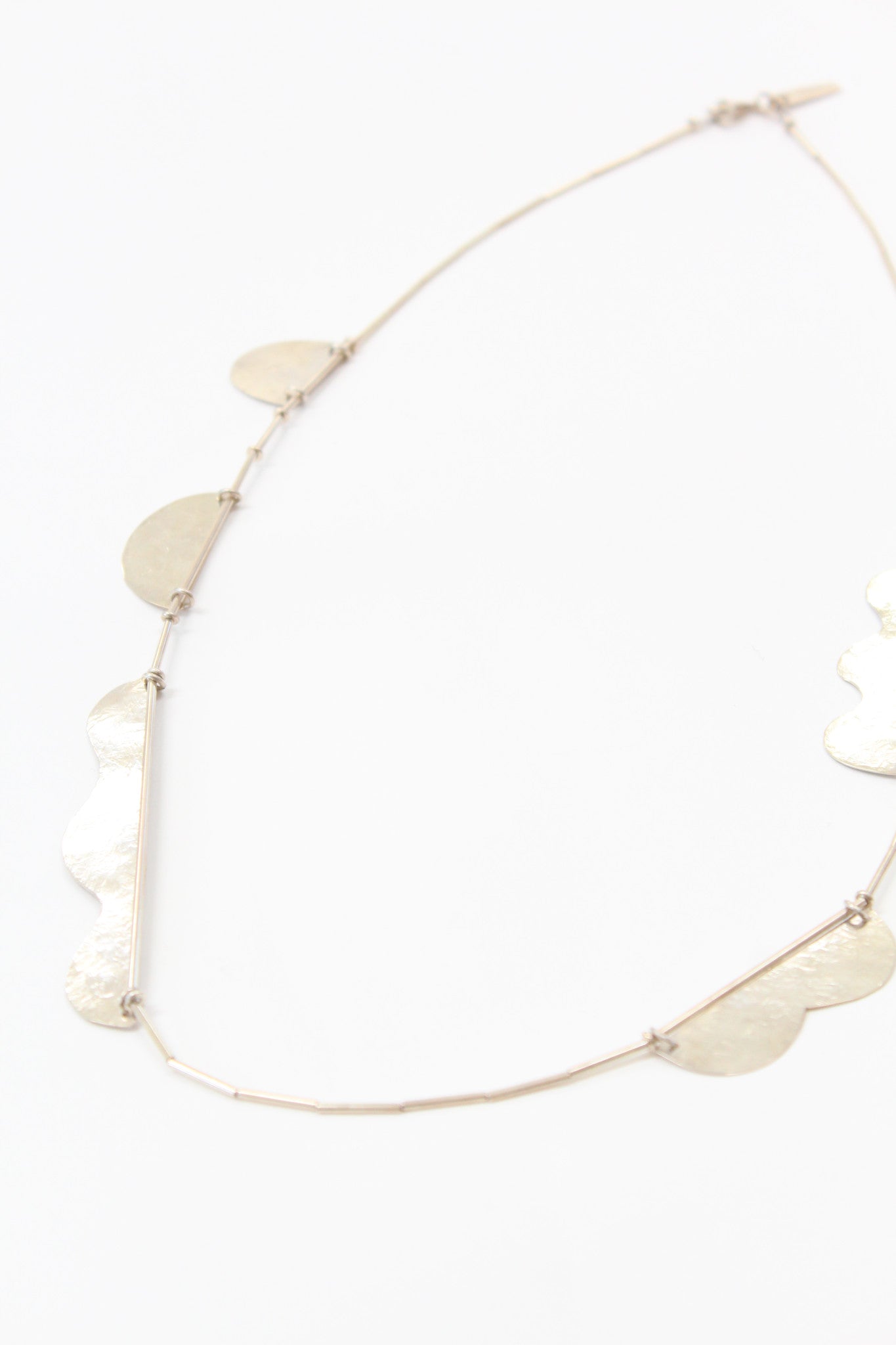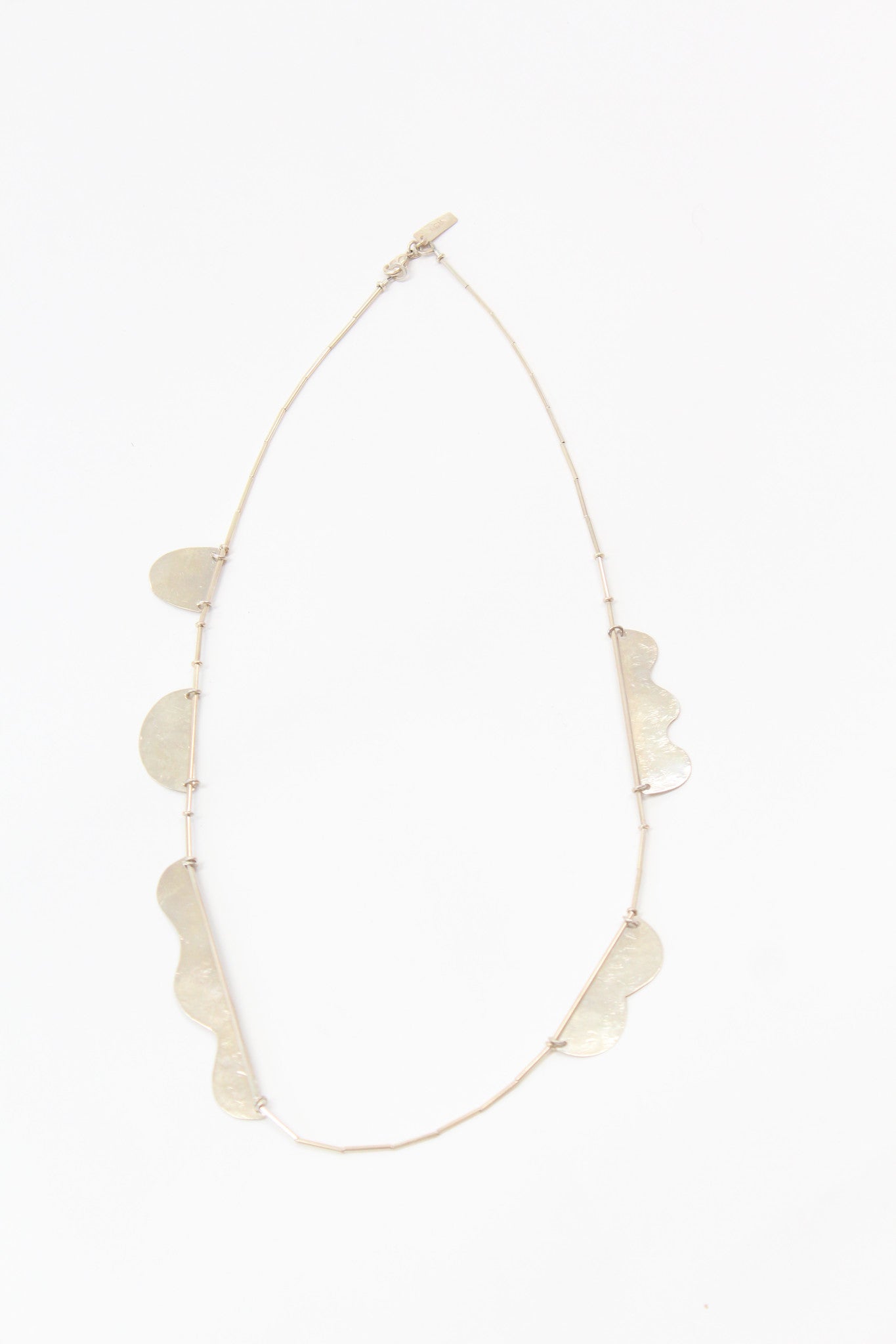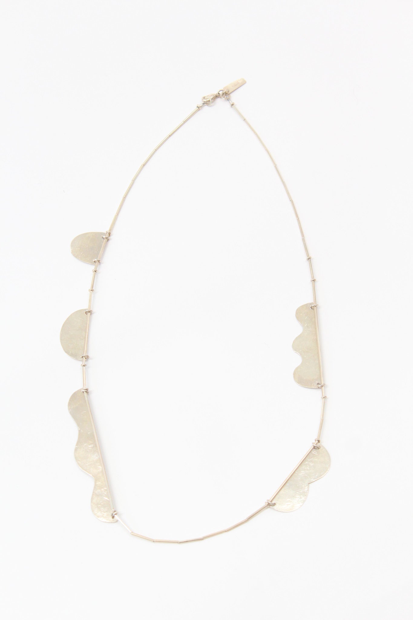 Annie Costello Brown Hammered Shapes Scallop Necklace Silver