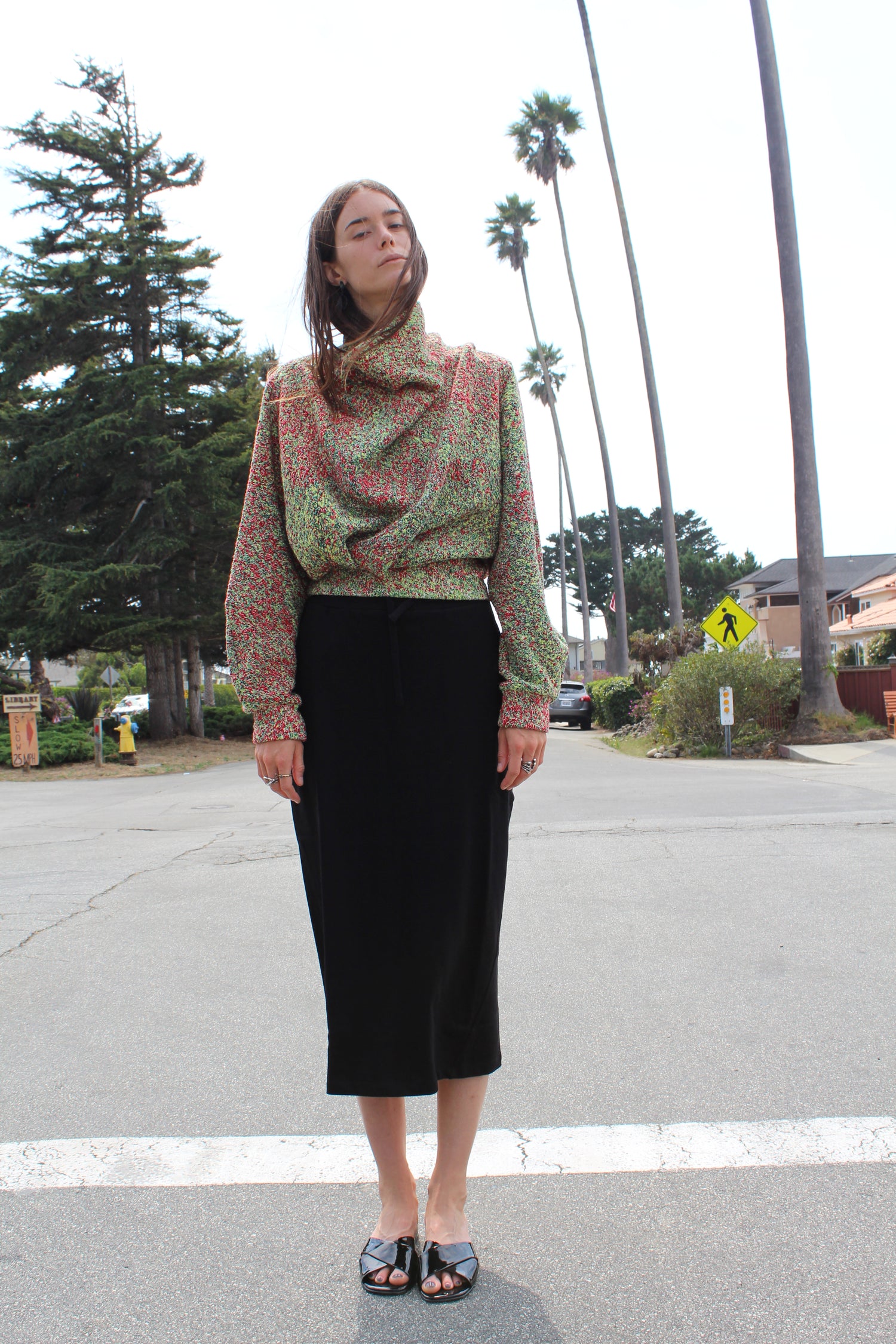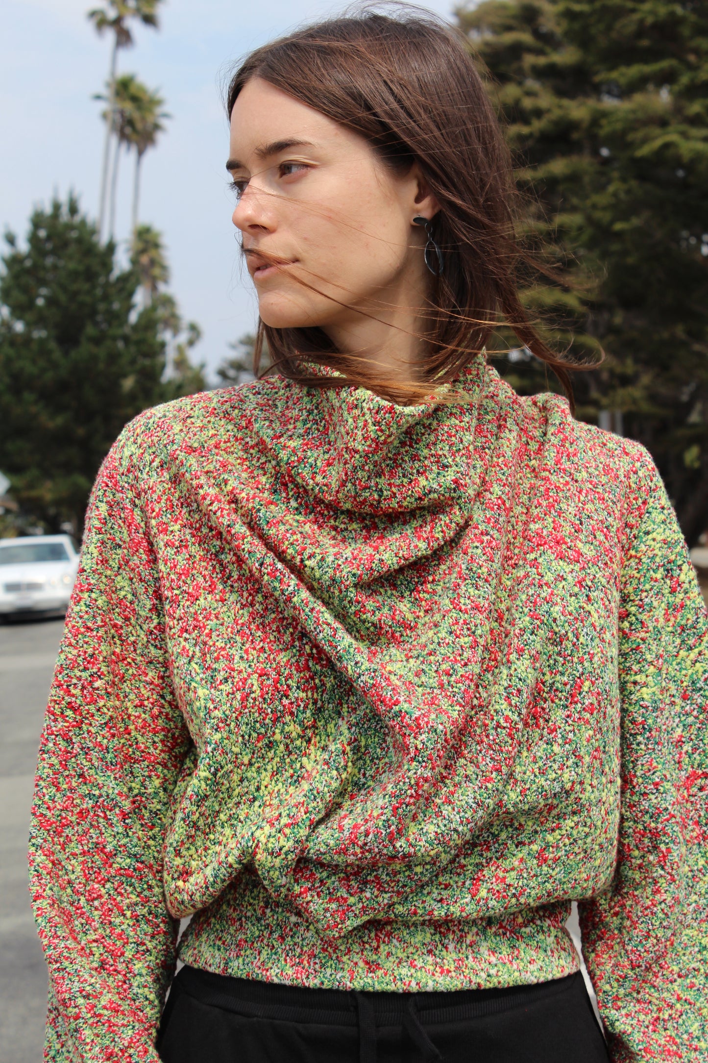 Soft cotton knit sweater, relax fit, long sleeve, front fold/gather detail.