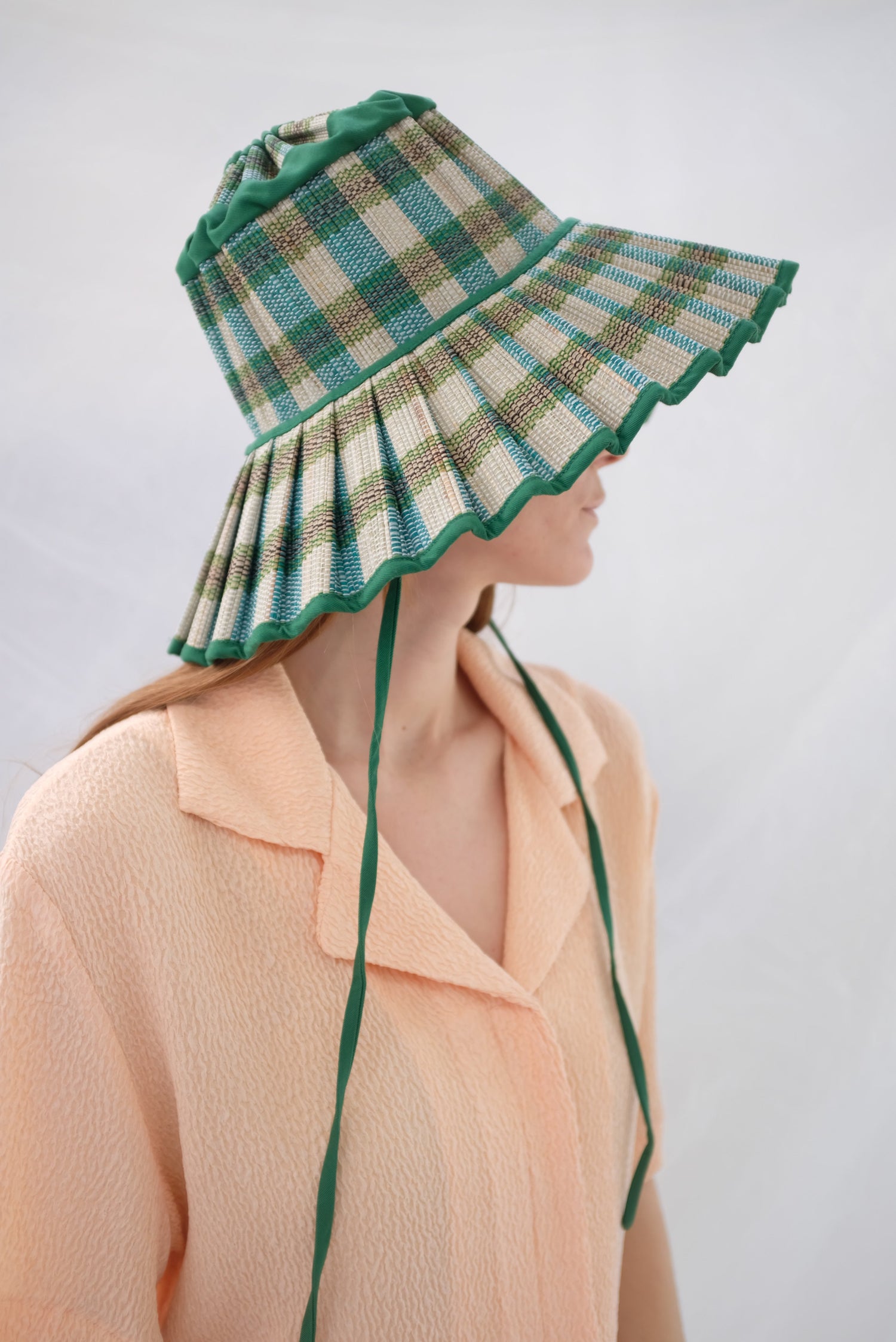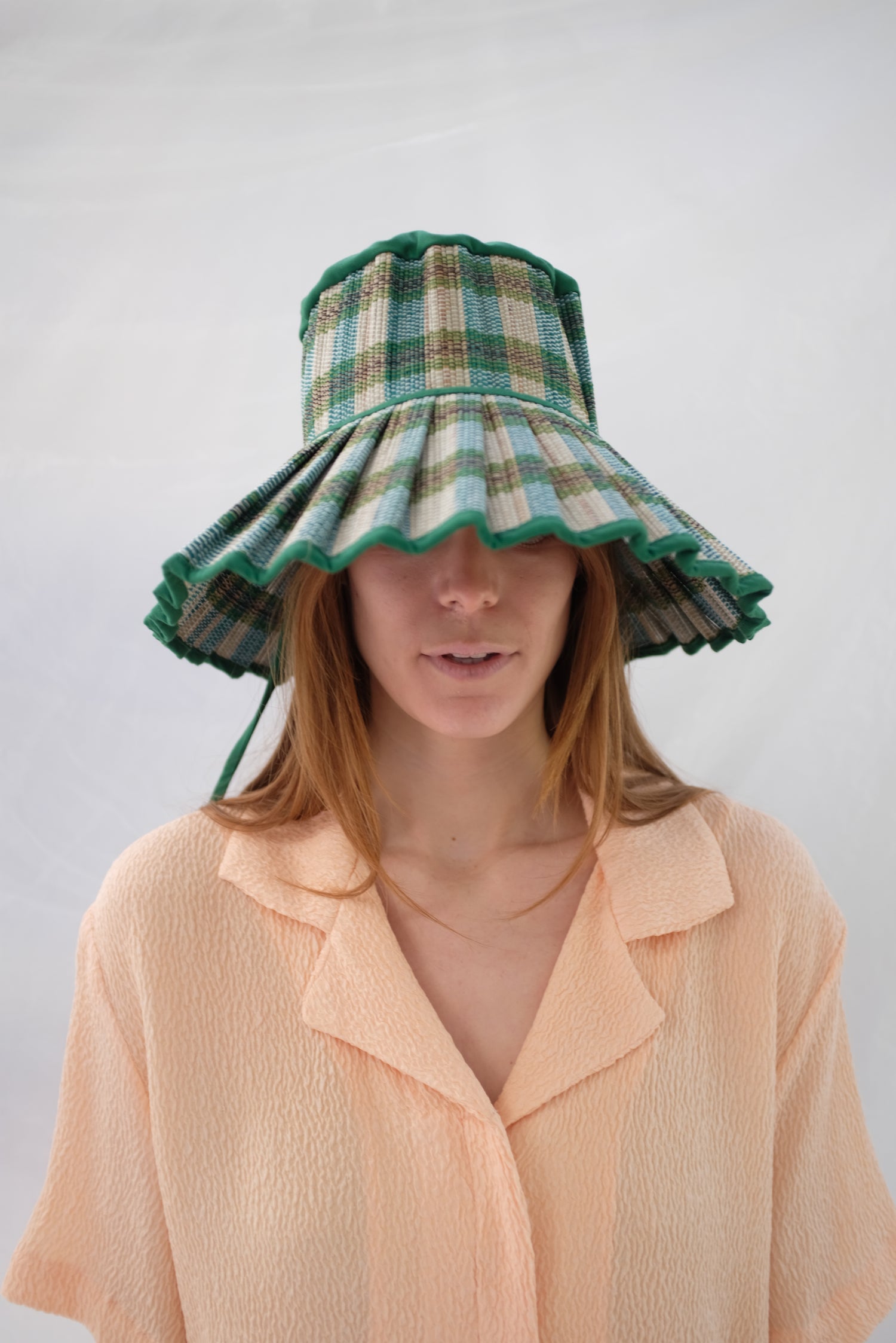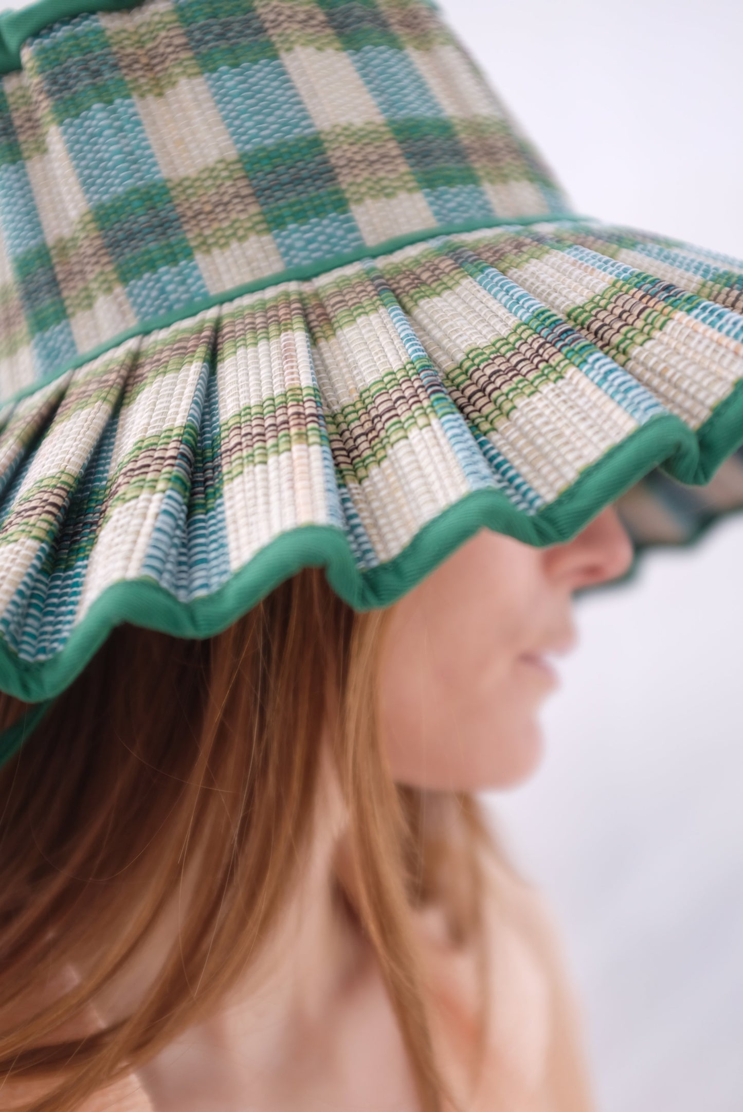 Handcrafted Capri hat made from all natural fibers, perfect summer essential. Great sun protection, water resistant, breathable. Collapses in half for easy transport and packability. Ties at base of hat for anchoring during breezes. 100% Natural Organic Grass Fiber.