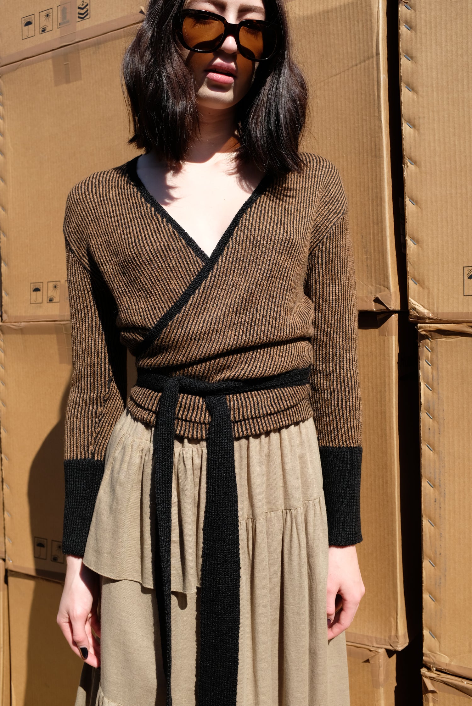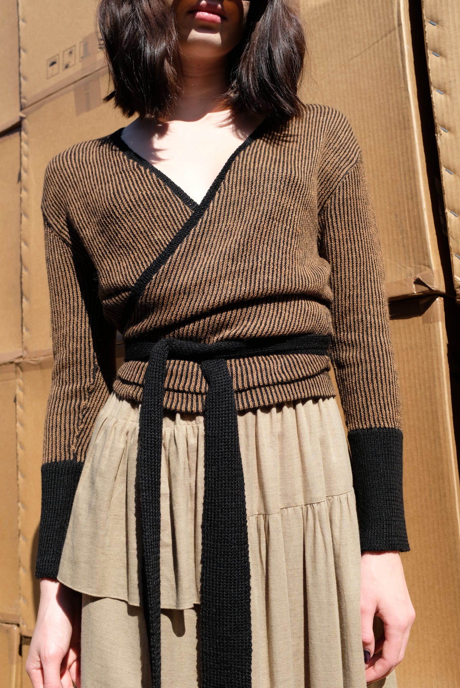 Beklina Alpaca Ballet Wrap Sweater Black/Brown
