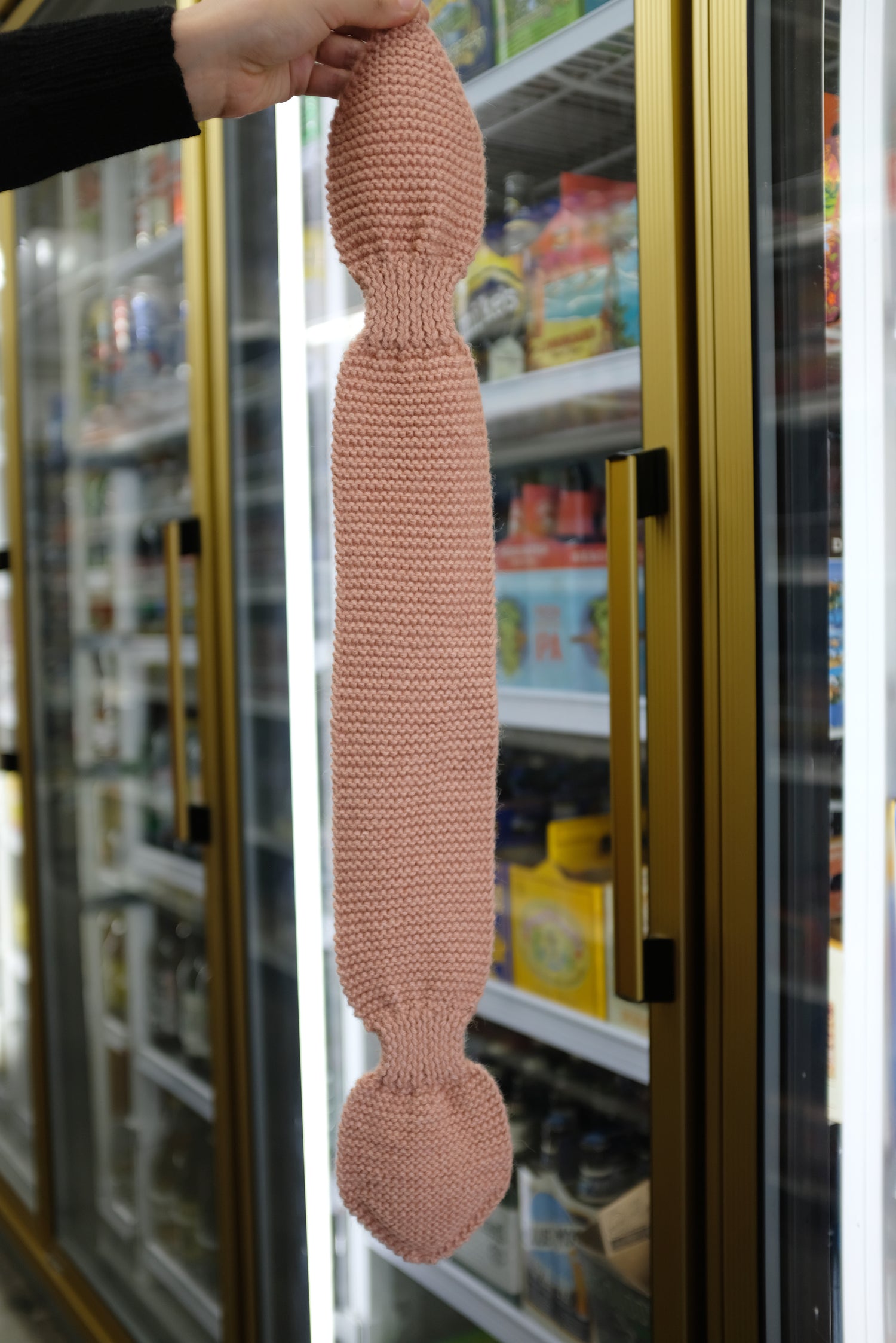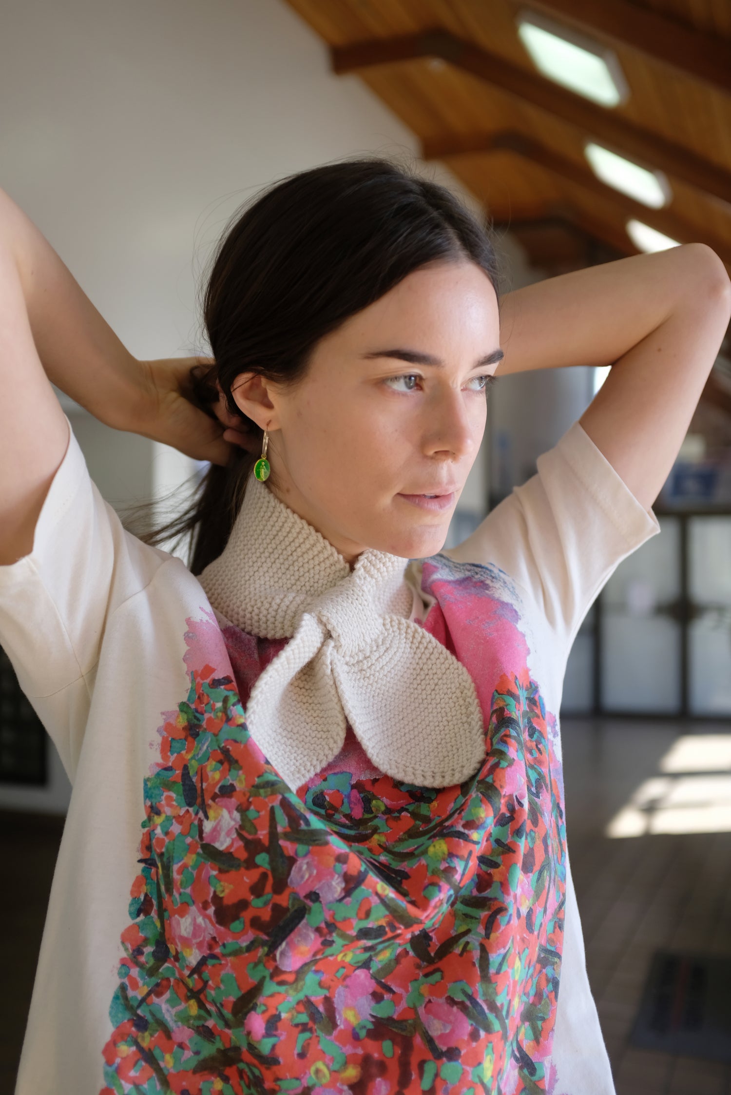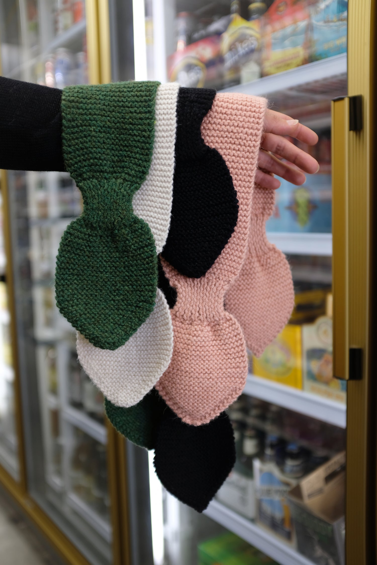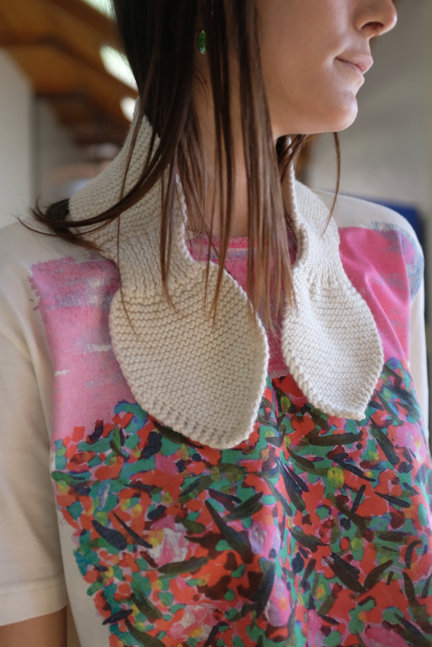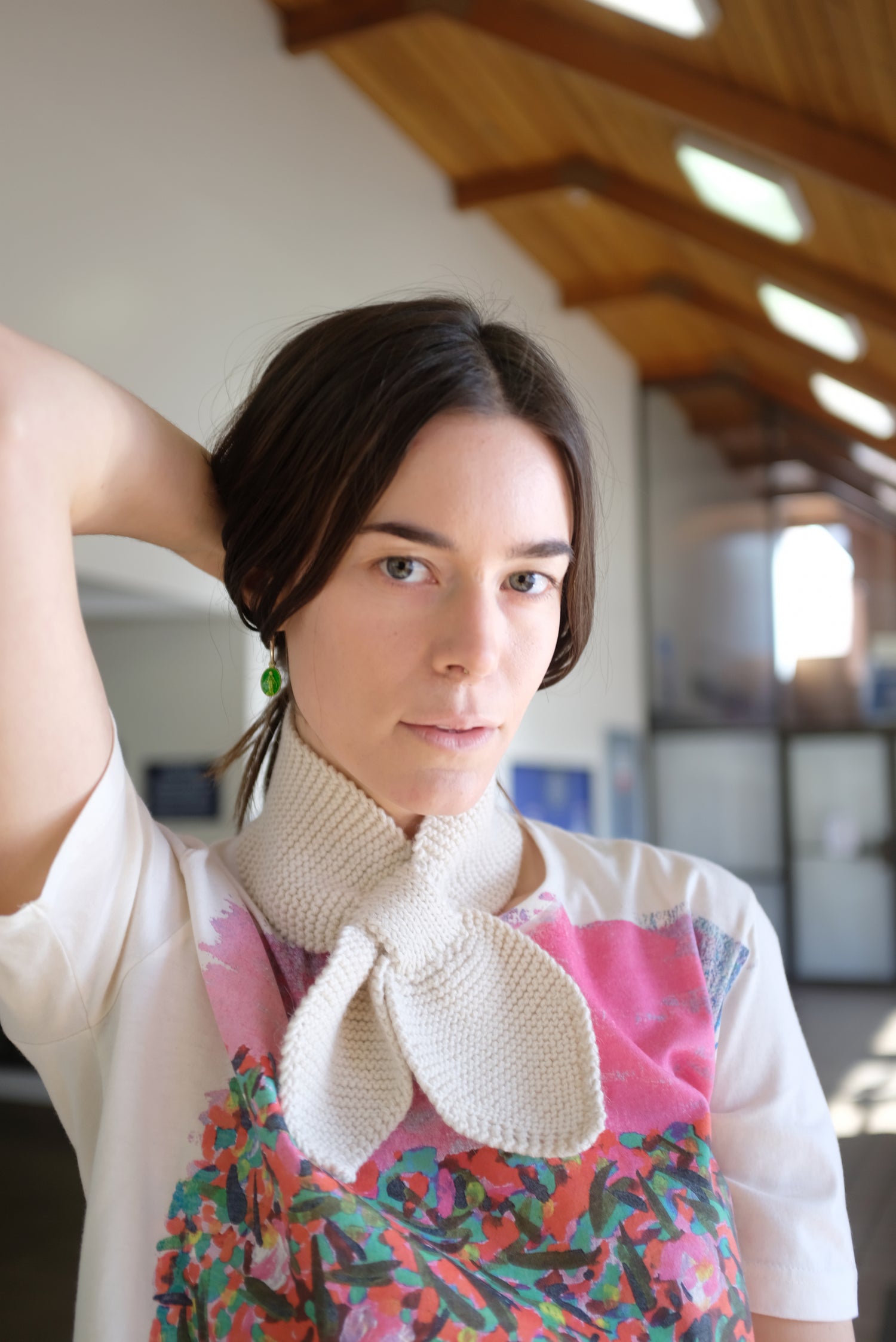 Hand knit 100% baby alpaca. Adjustable fit, one size fits all. Garter stitch, warm and cozy. The perfect gift!