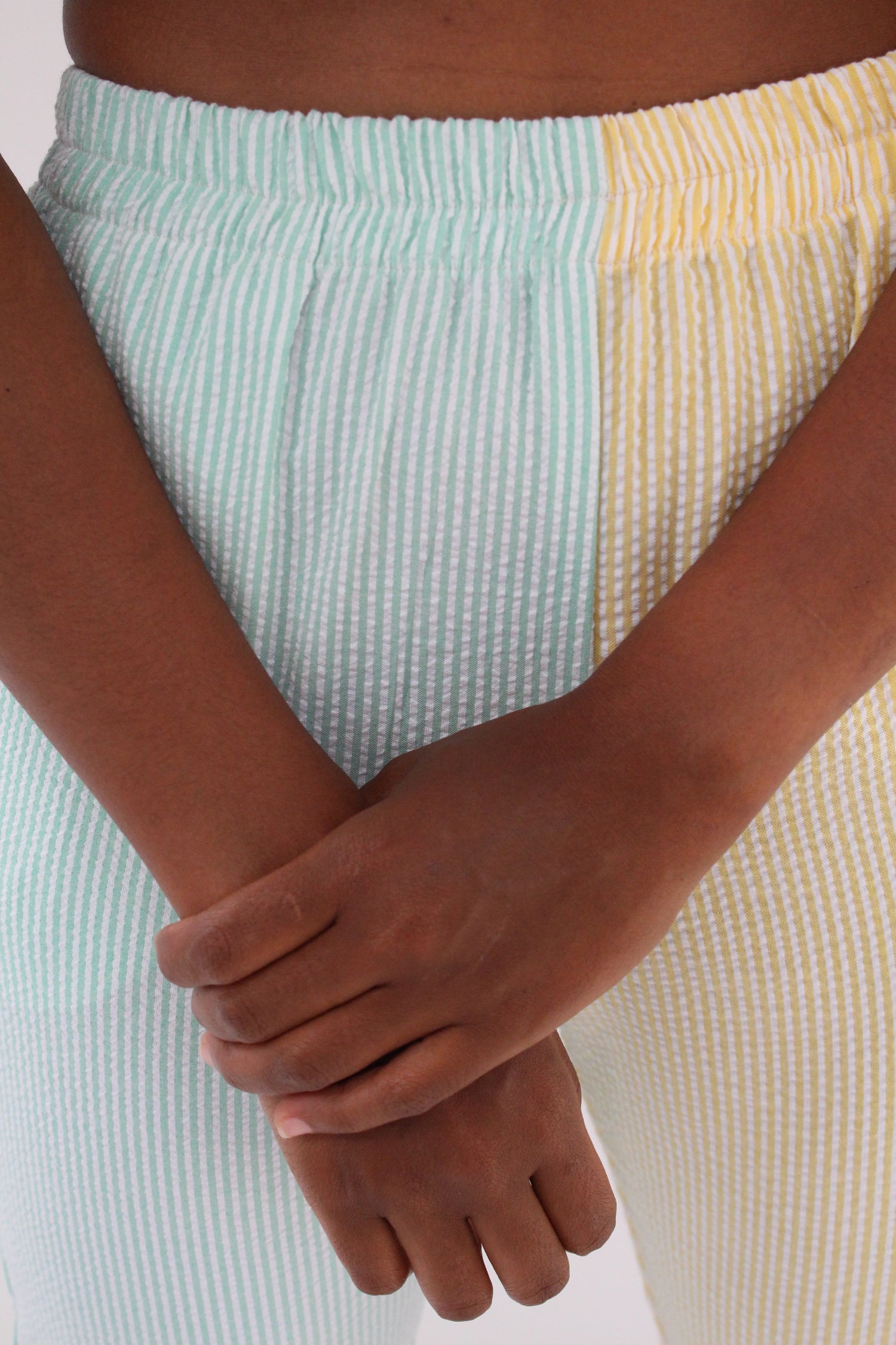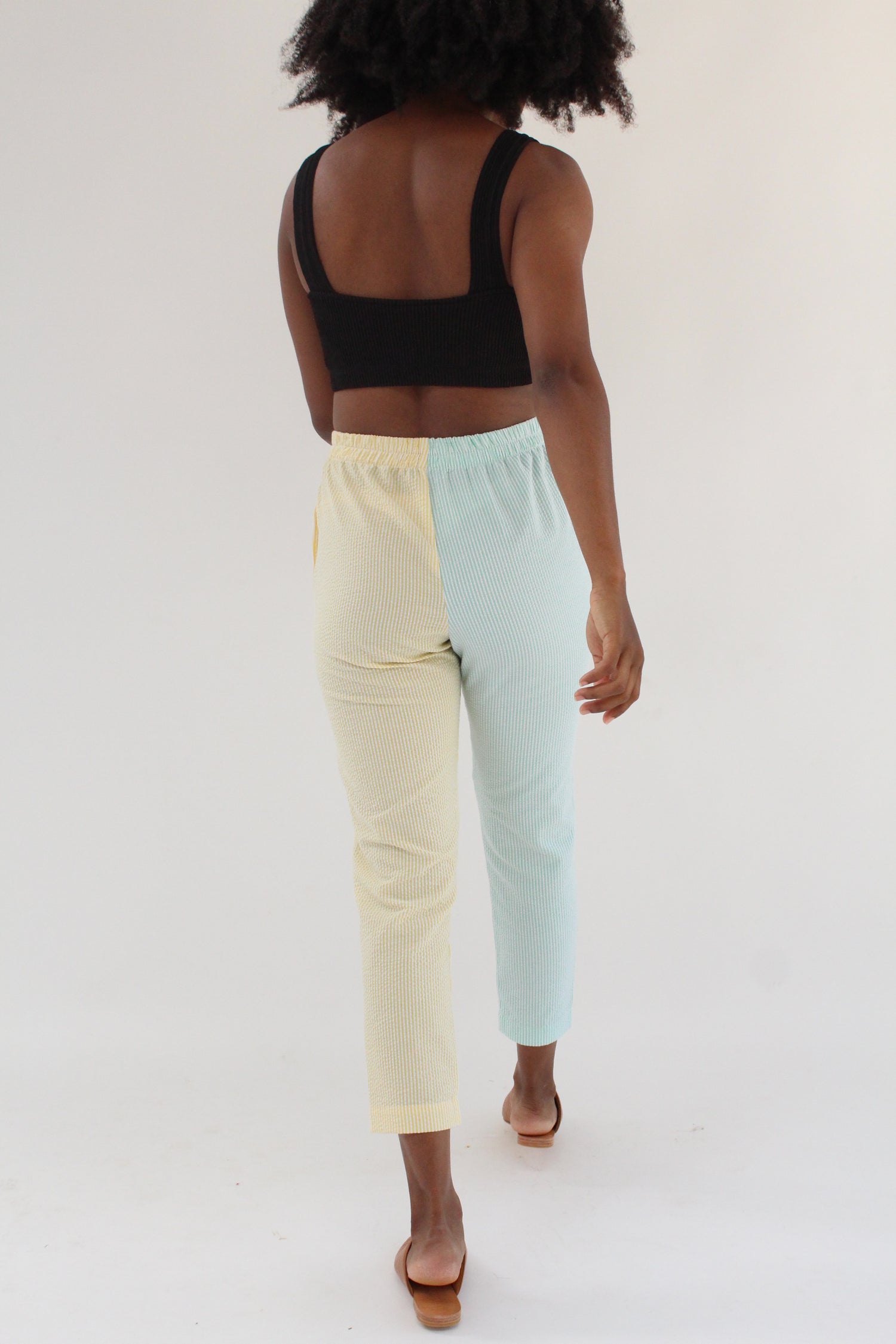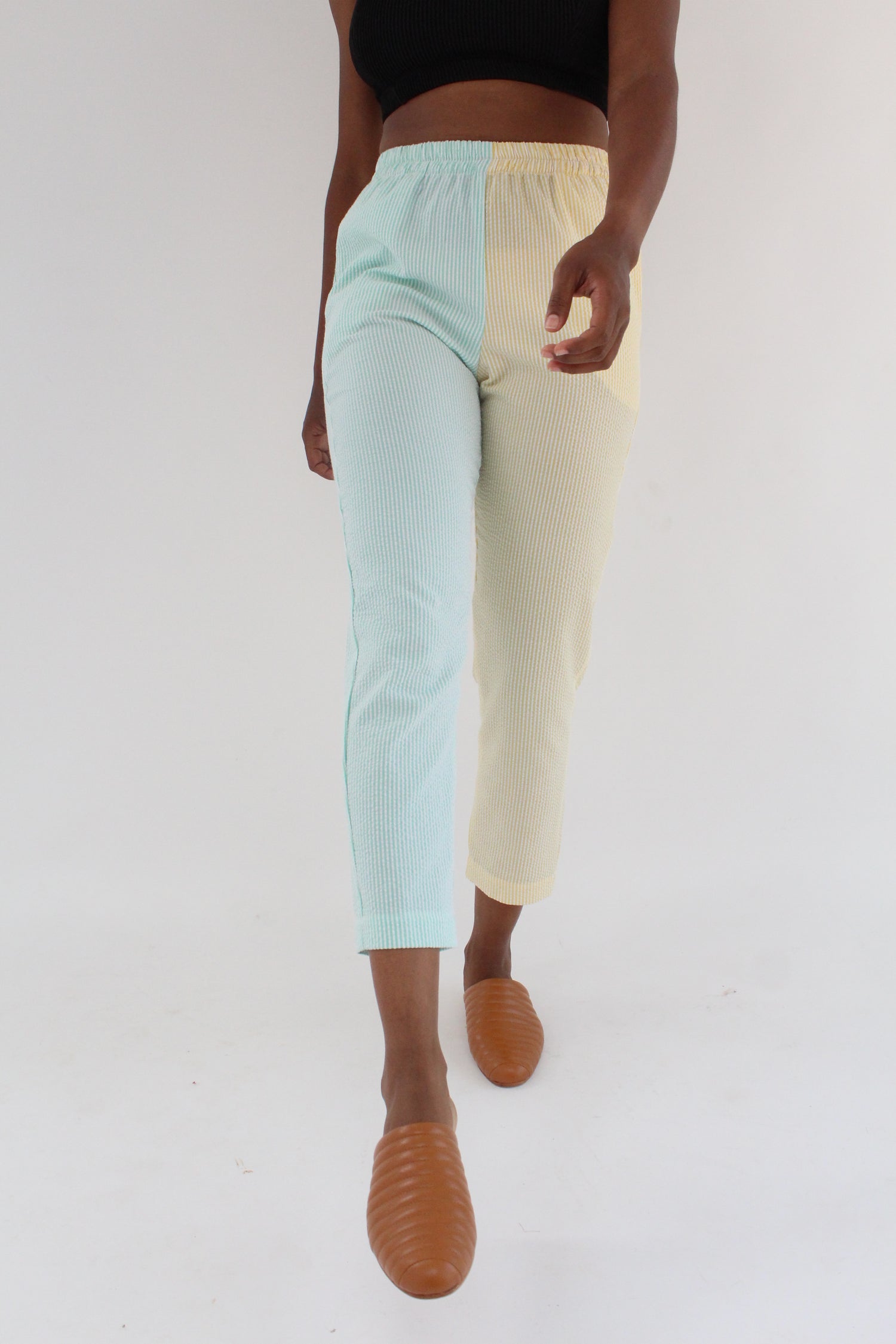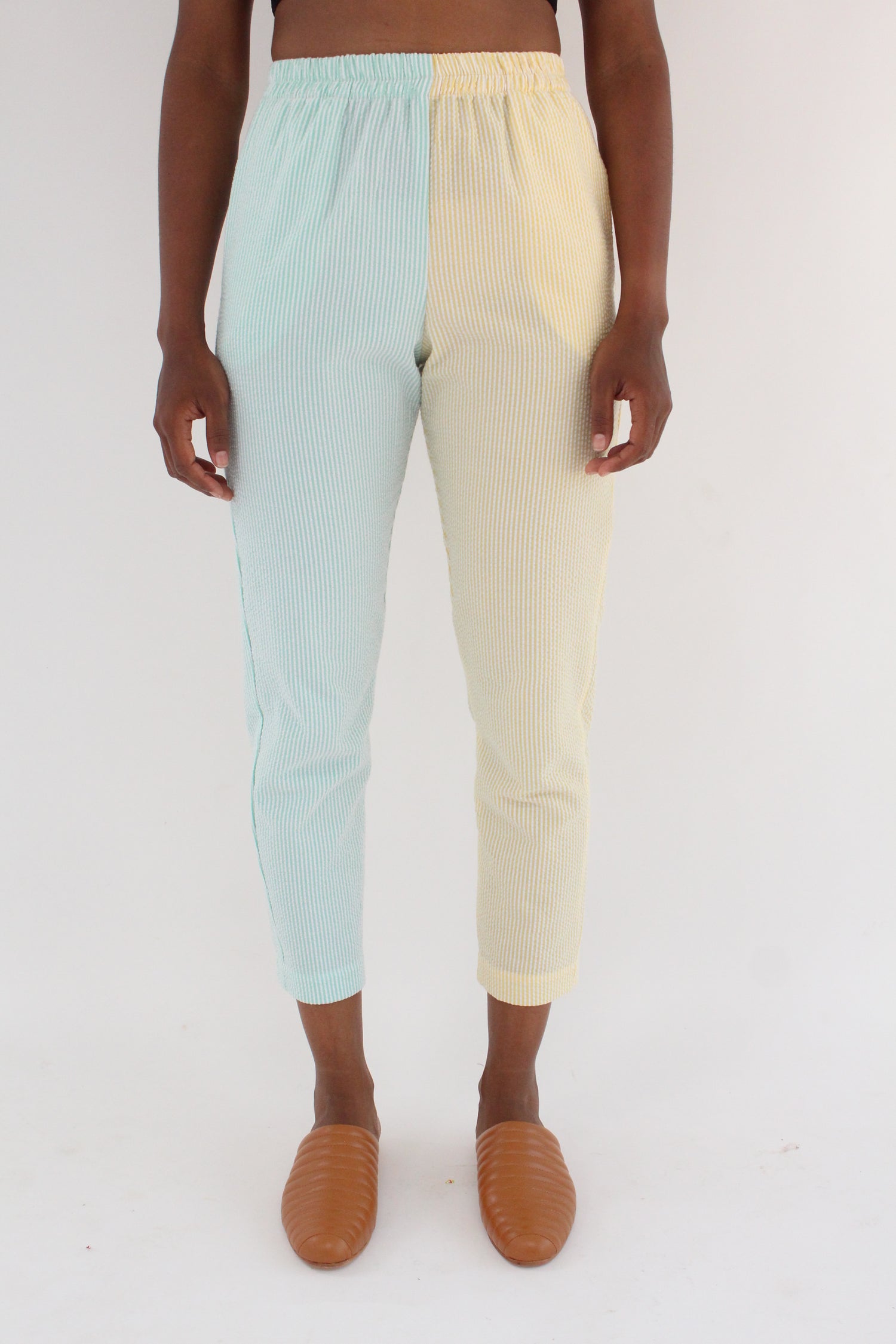 Washed lightweight cotton woven, elastic waist, crazy comfortable. Slightly cropped, high waisted, but can be worn a little lower. Easy fit. Model is wearing a small. 100% Cotton. Total length 37" Inseam 27"