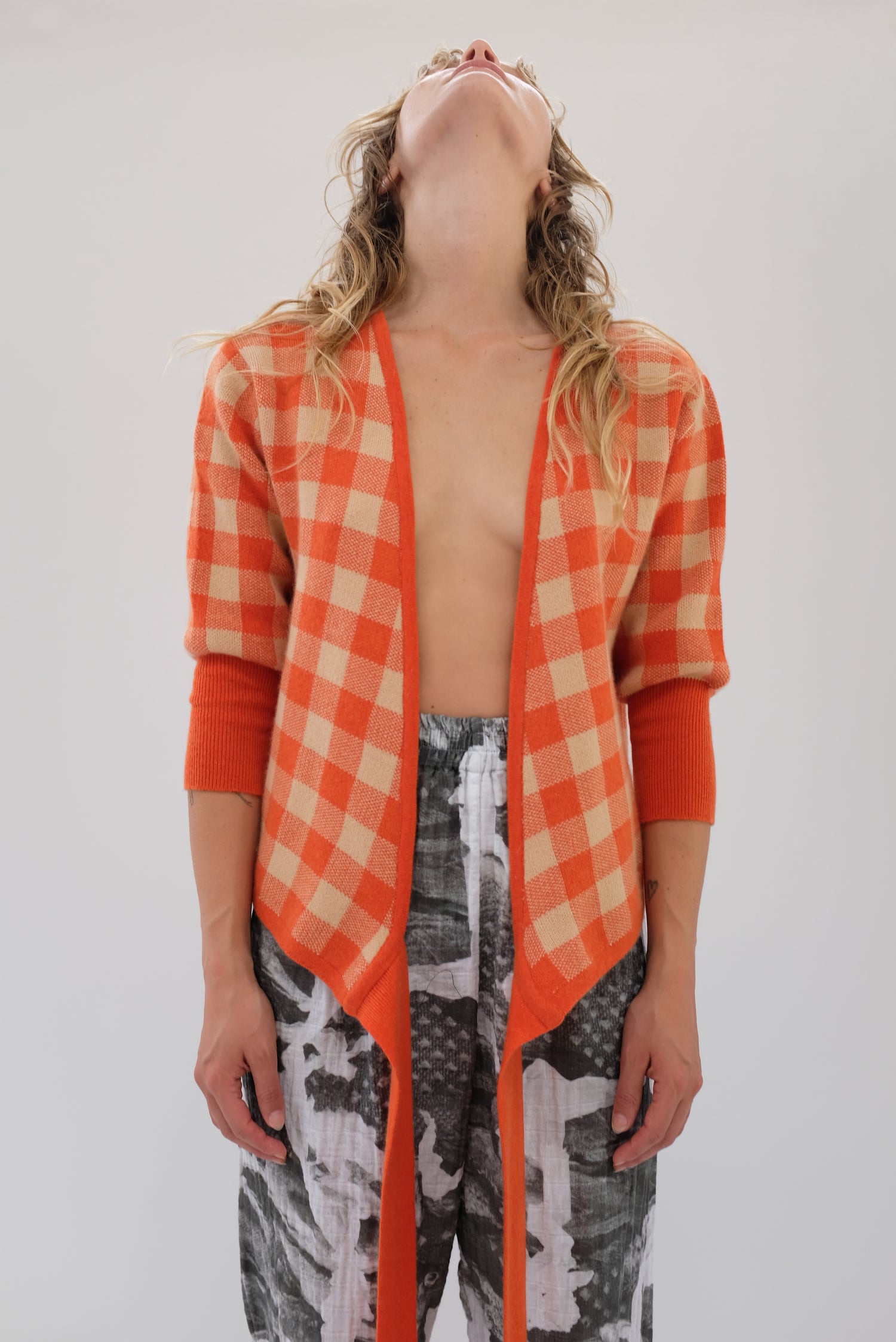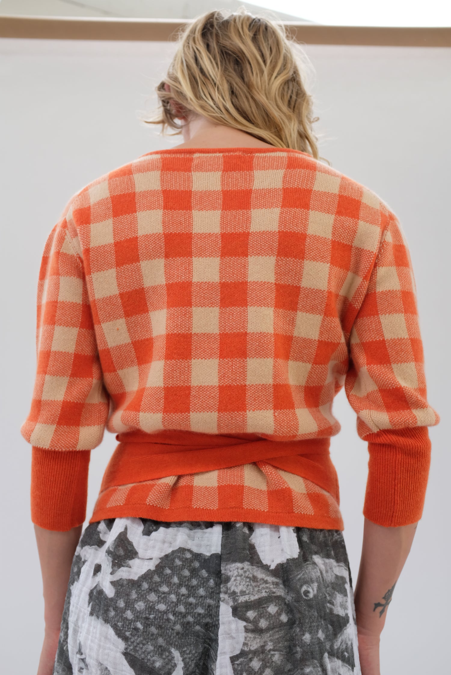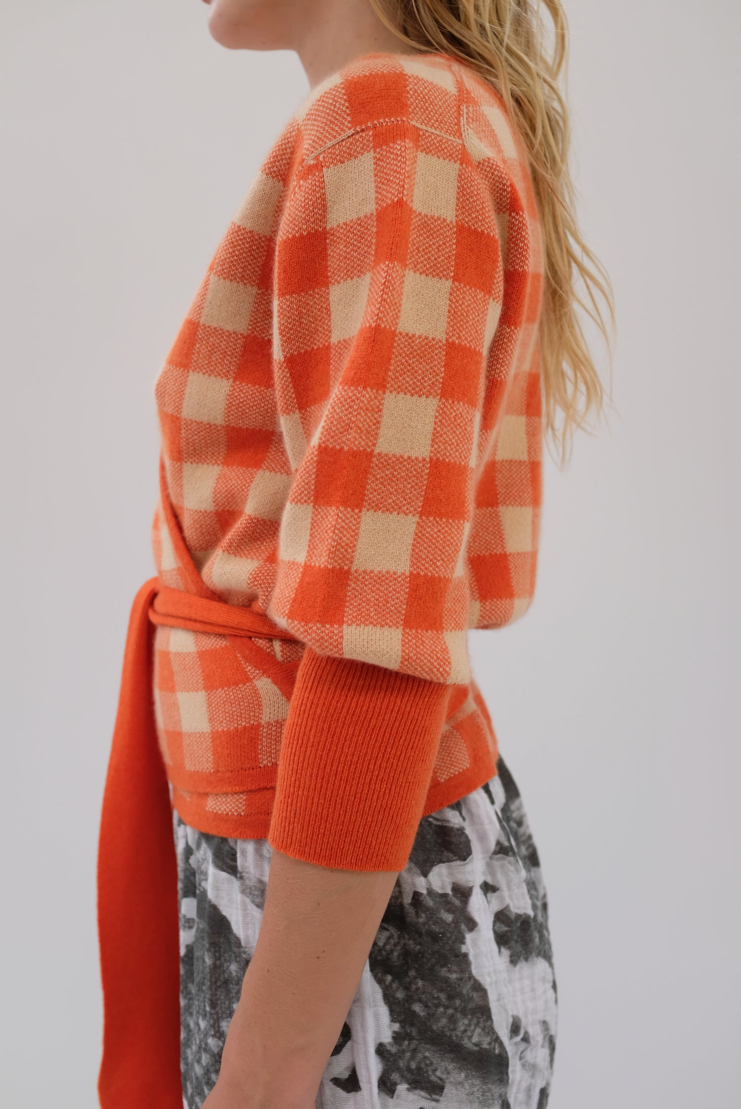 Beklina Cashmere Ballet Wrap Sweater Gingham Poppy