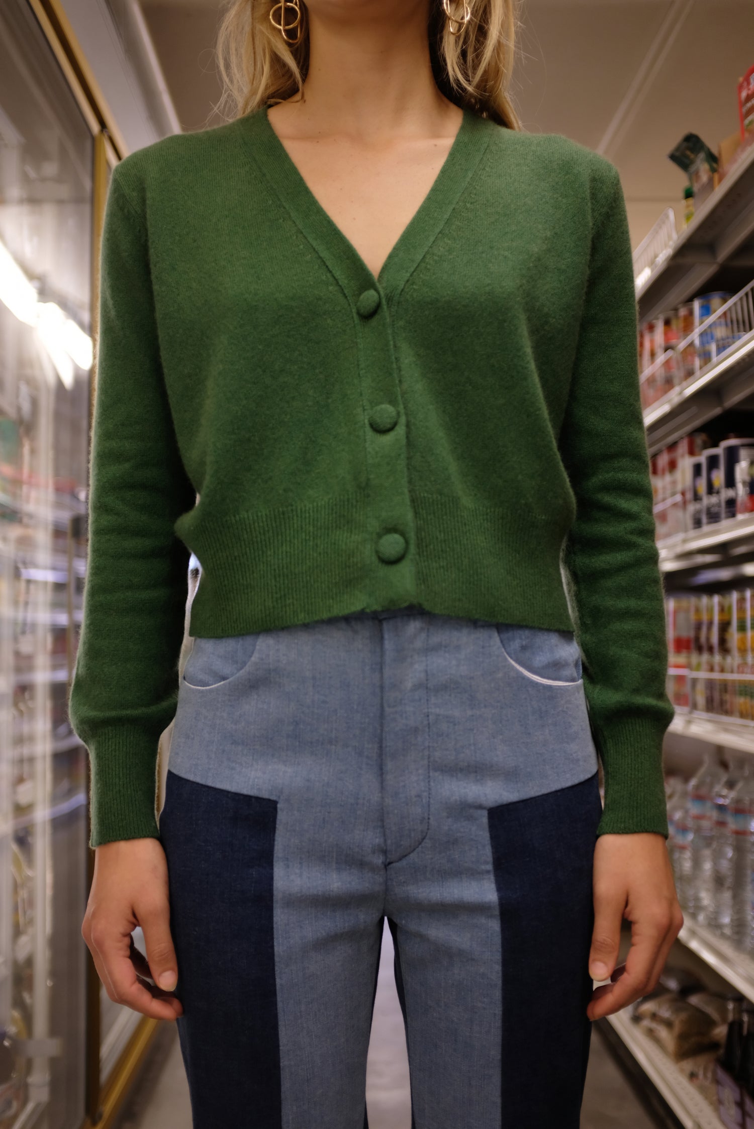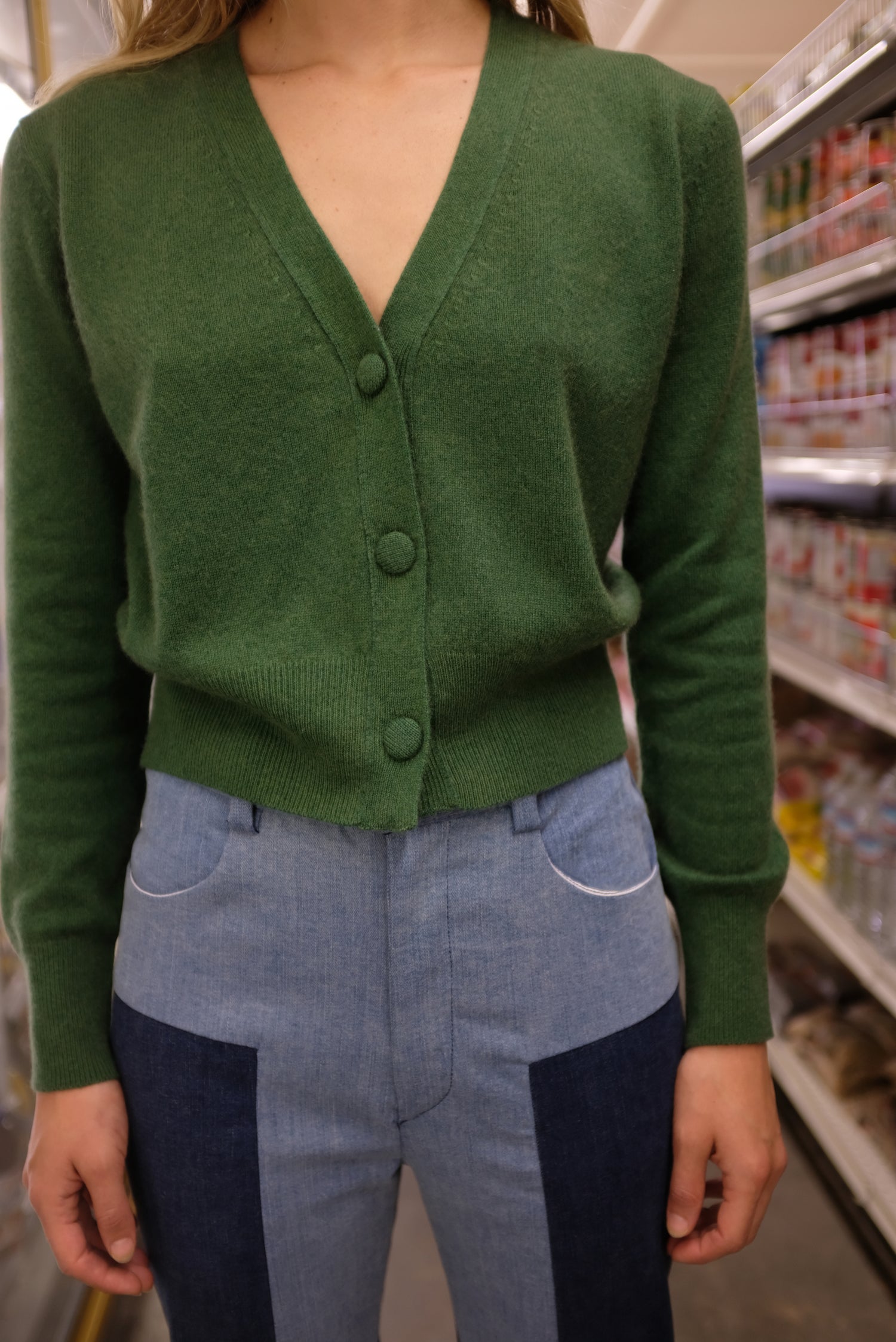 Best selling cardigan. 100% cashmere. Classic v-neck cardigan, slightly cropped, cashmere covered buttons down front. Medium weight, not sheer, wear as a laying piece or on it's own, solo. Size up for a less cropped look, and down for a more cropped look. Exclusive to Beklina.