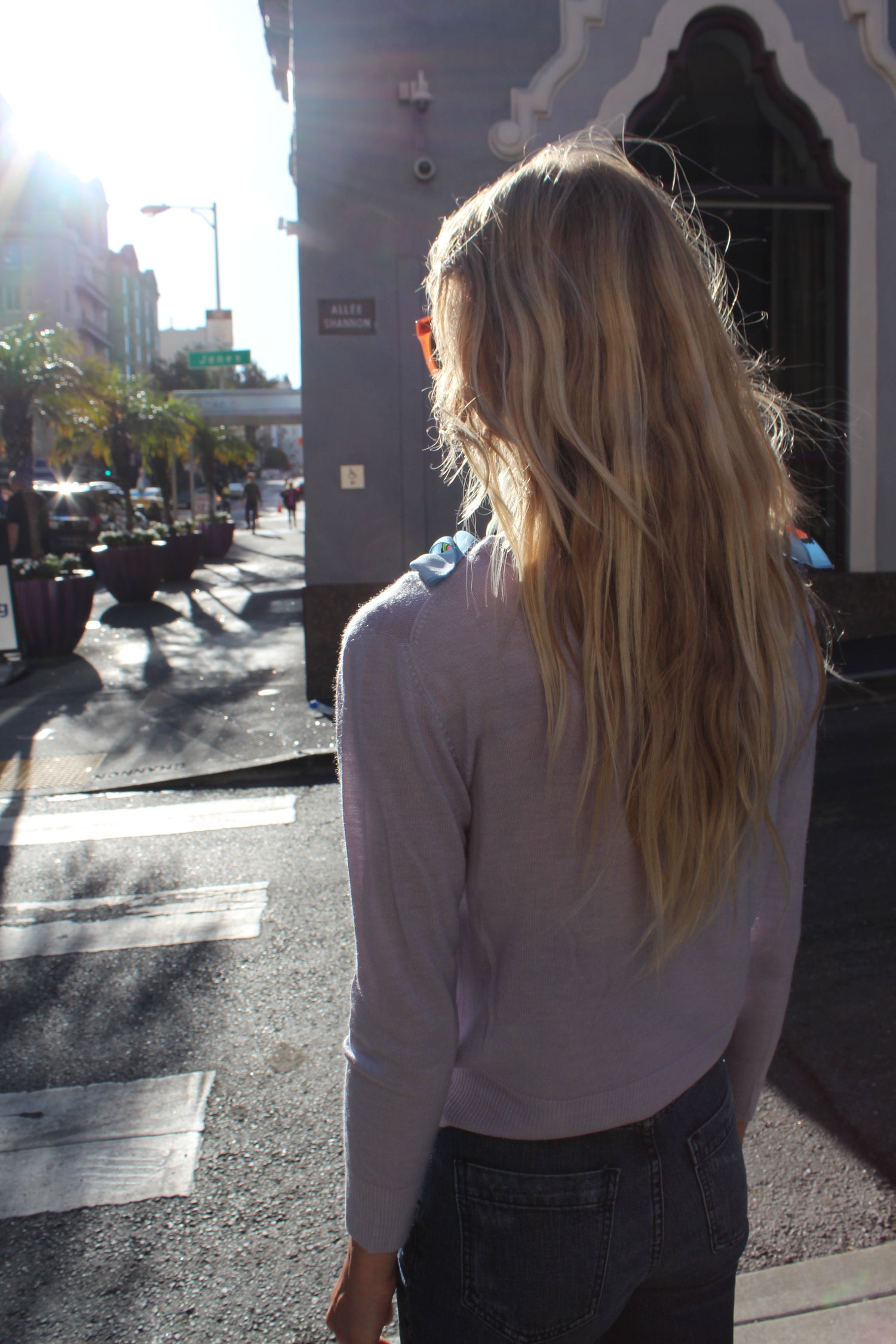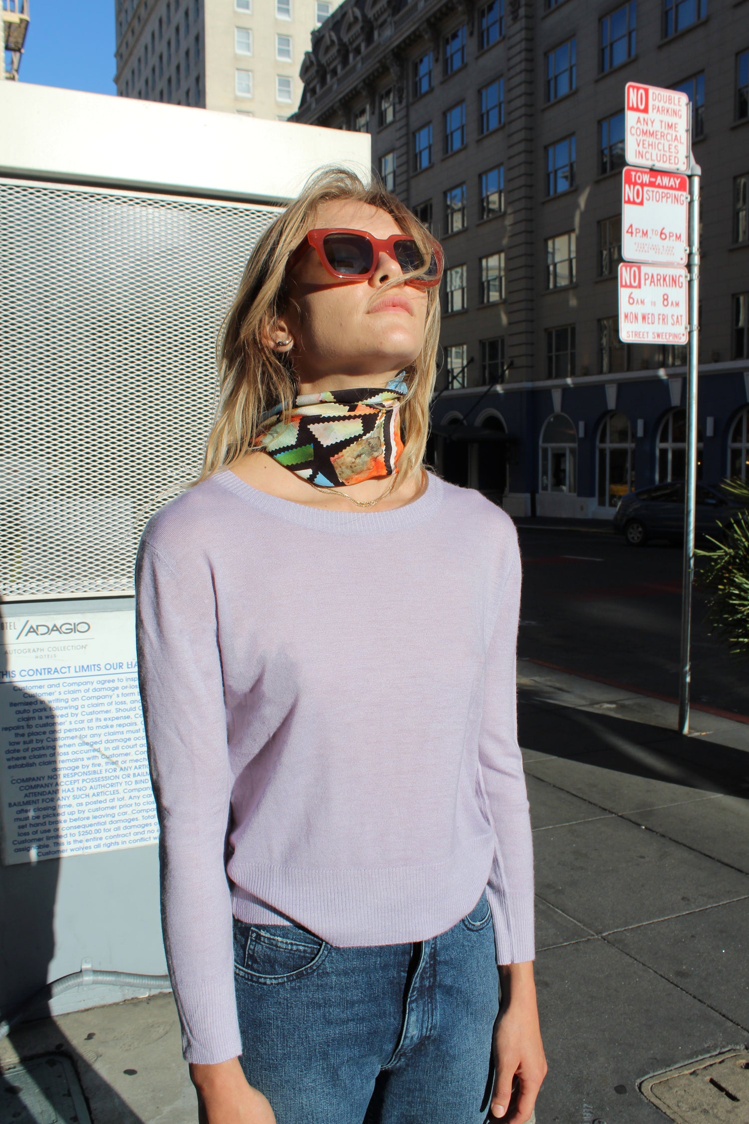 Luxurious light 100% cashmere, naturally stretchy second skin. You’ll crave more than one, and you may find yourself sleeping in them. Long sleeve sweater, 2” ribbed cuff and hem, not sheer, oversized “Loma” crew neckline, easy fitting. Model is wearing size small/medium.