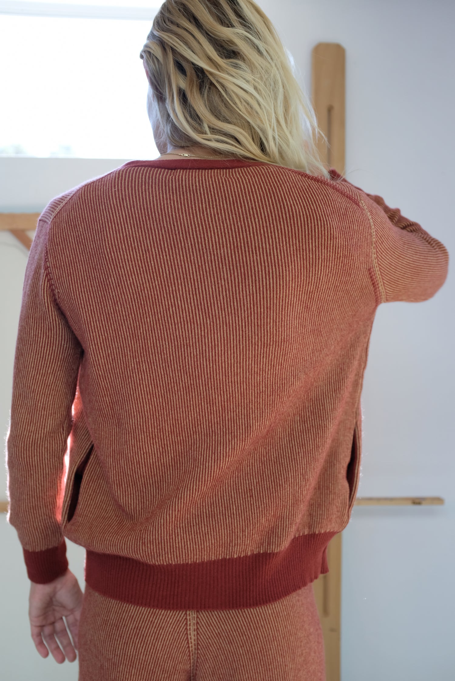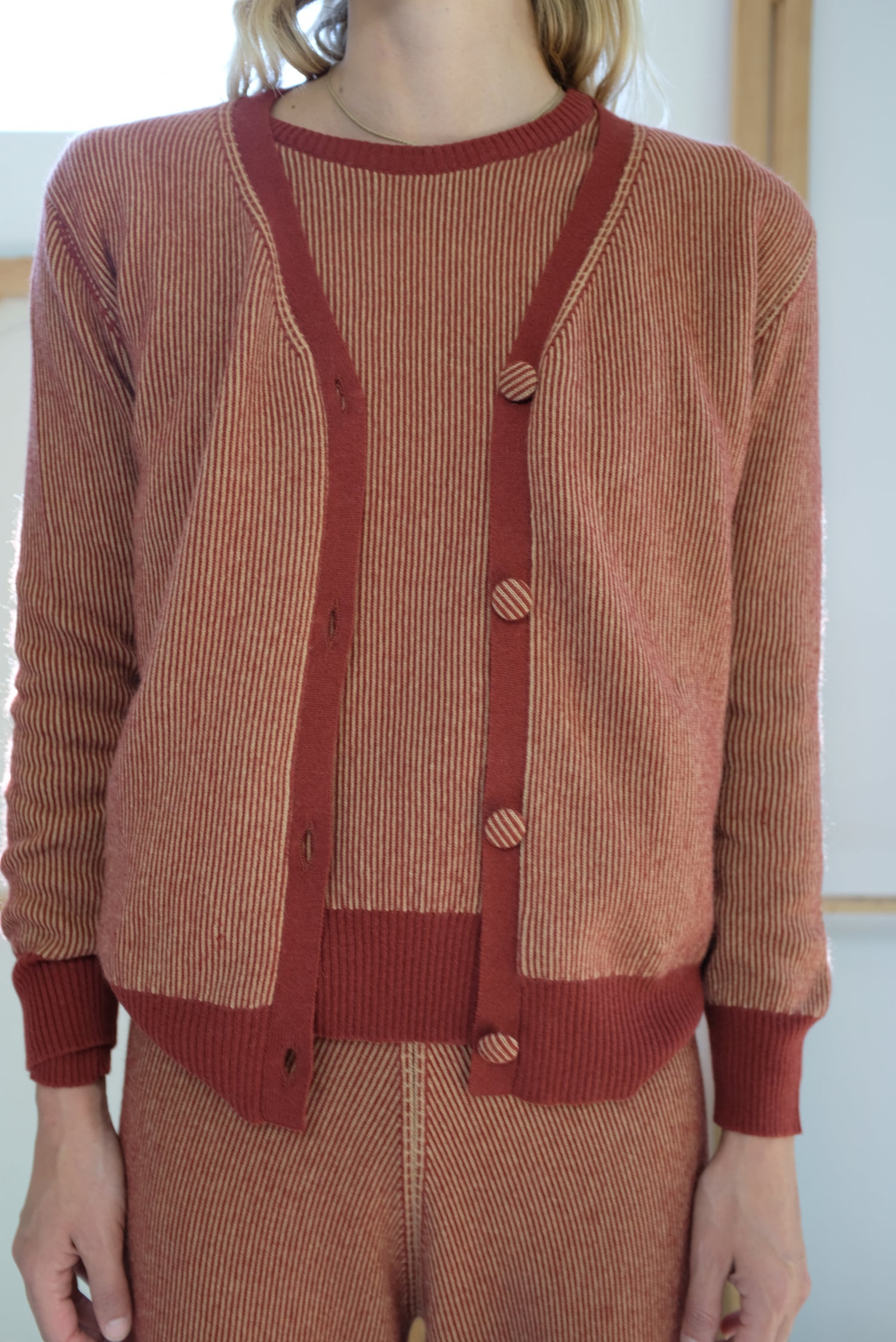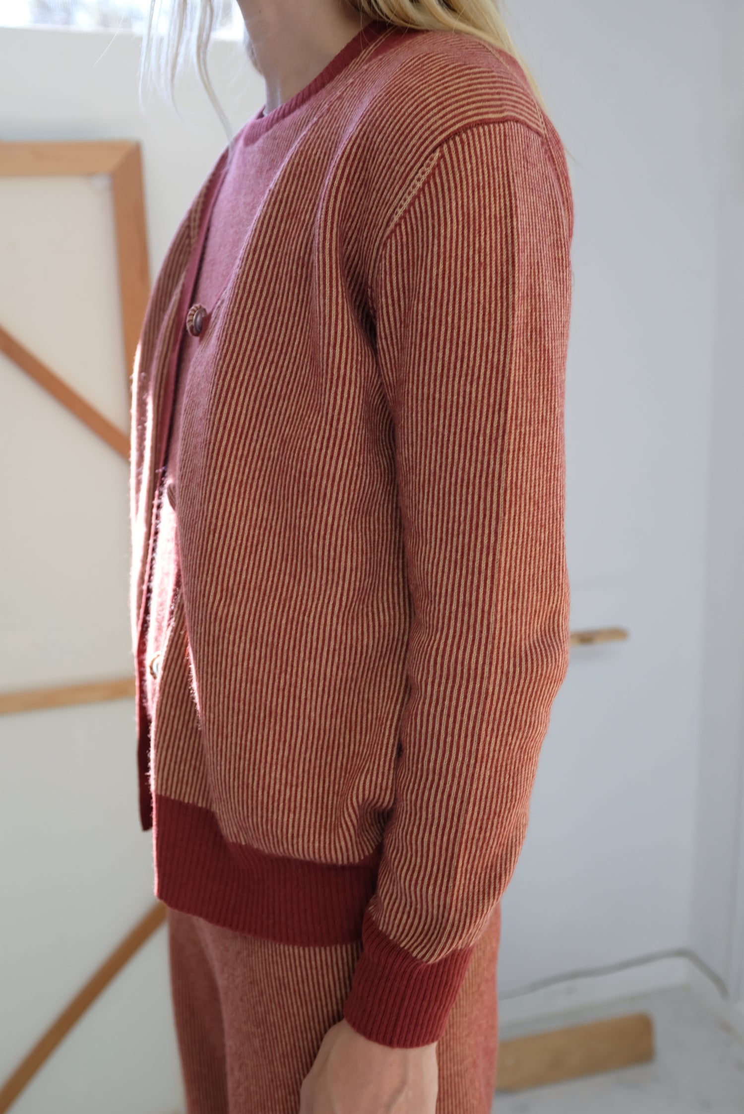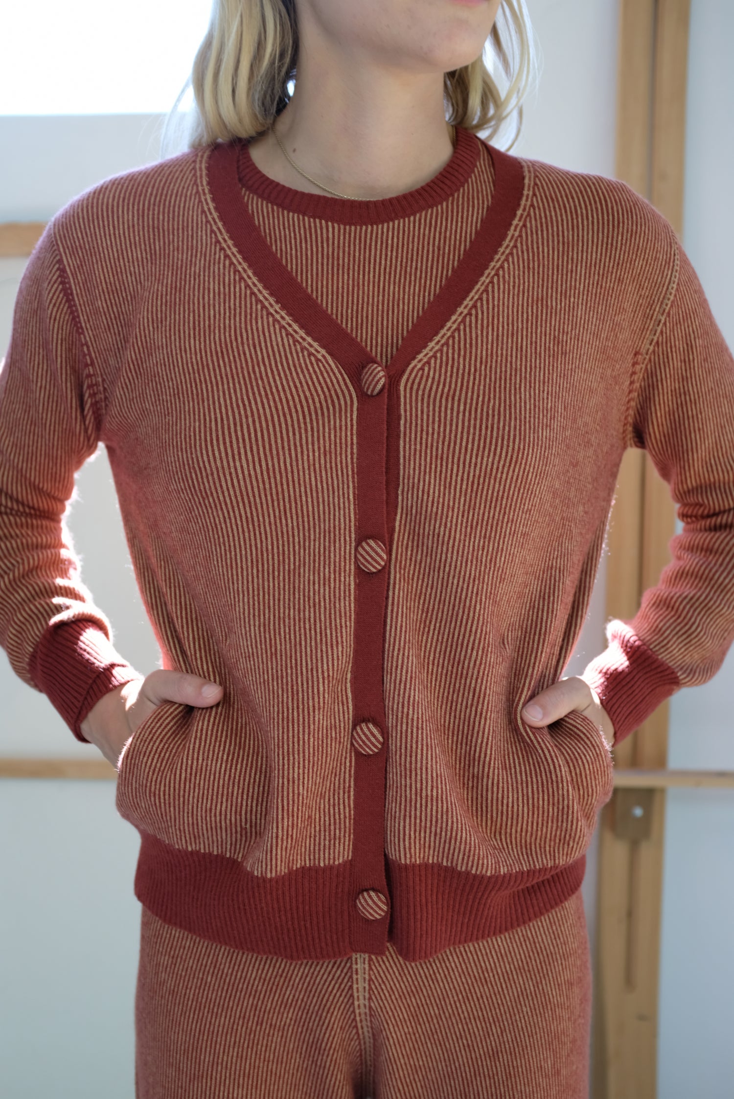 Beklina Cashmere Ribbed Cardigan Rust/Gold