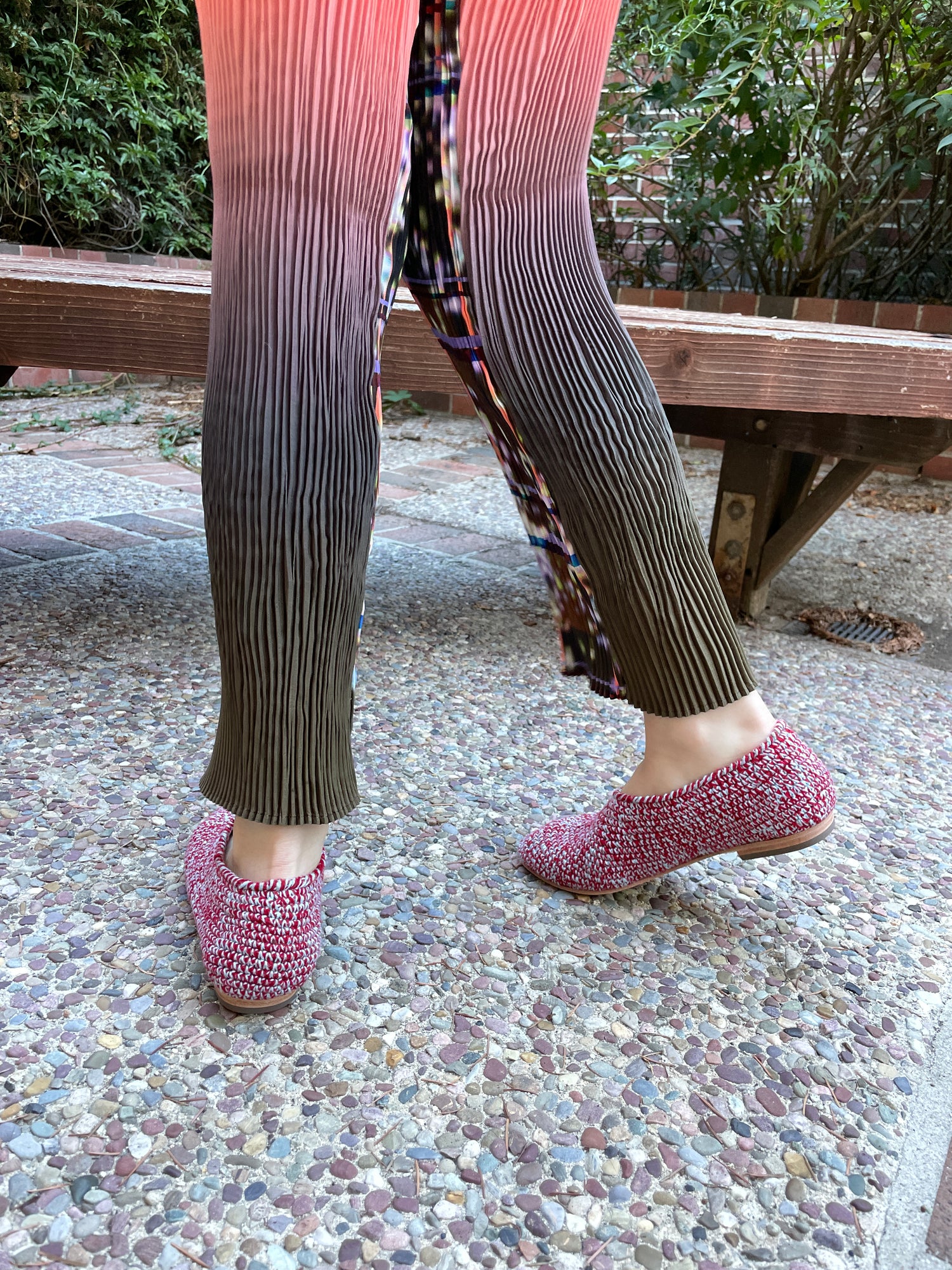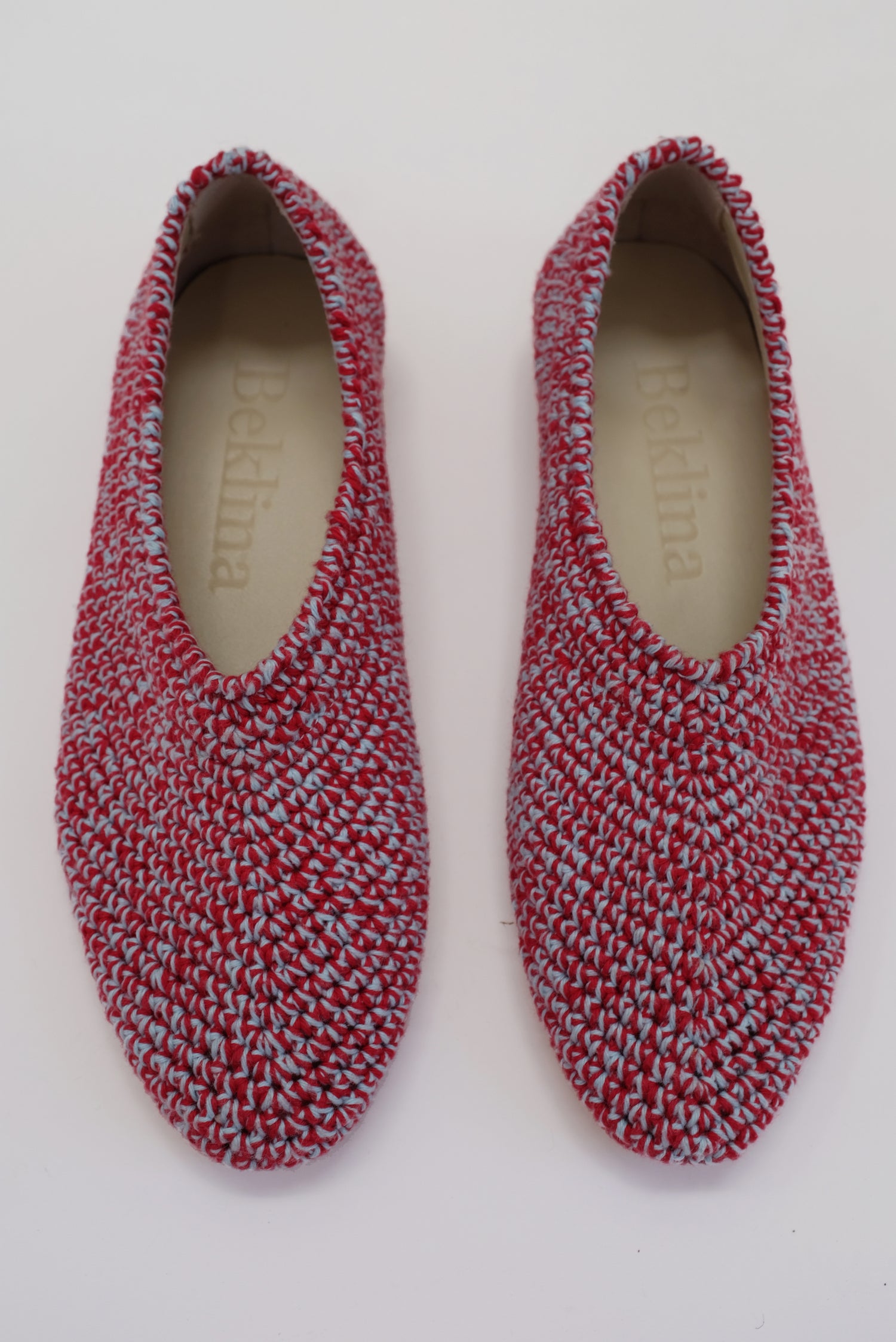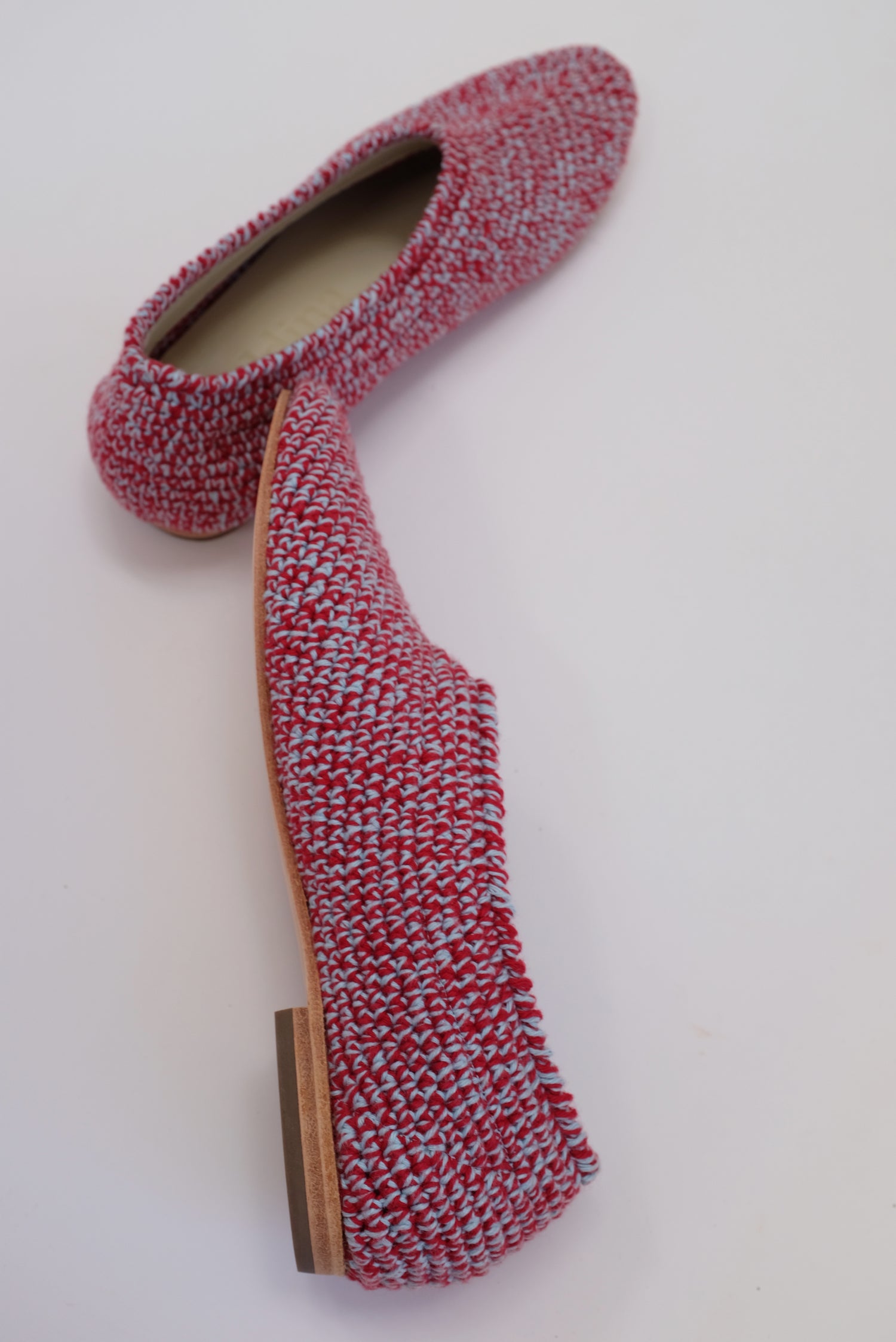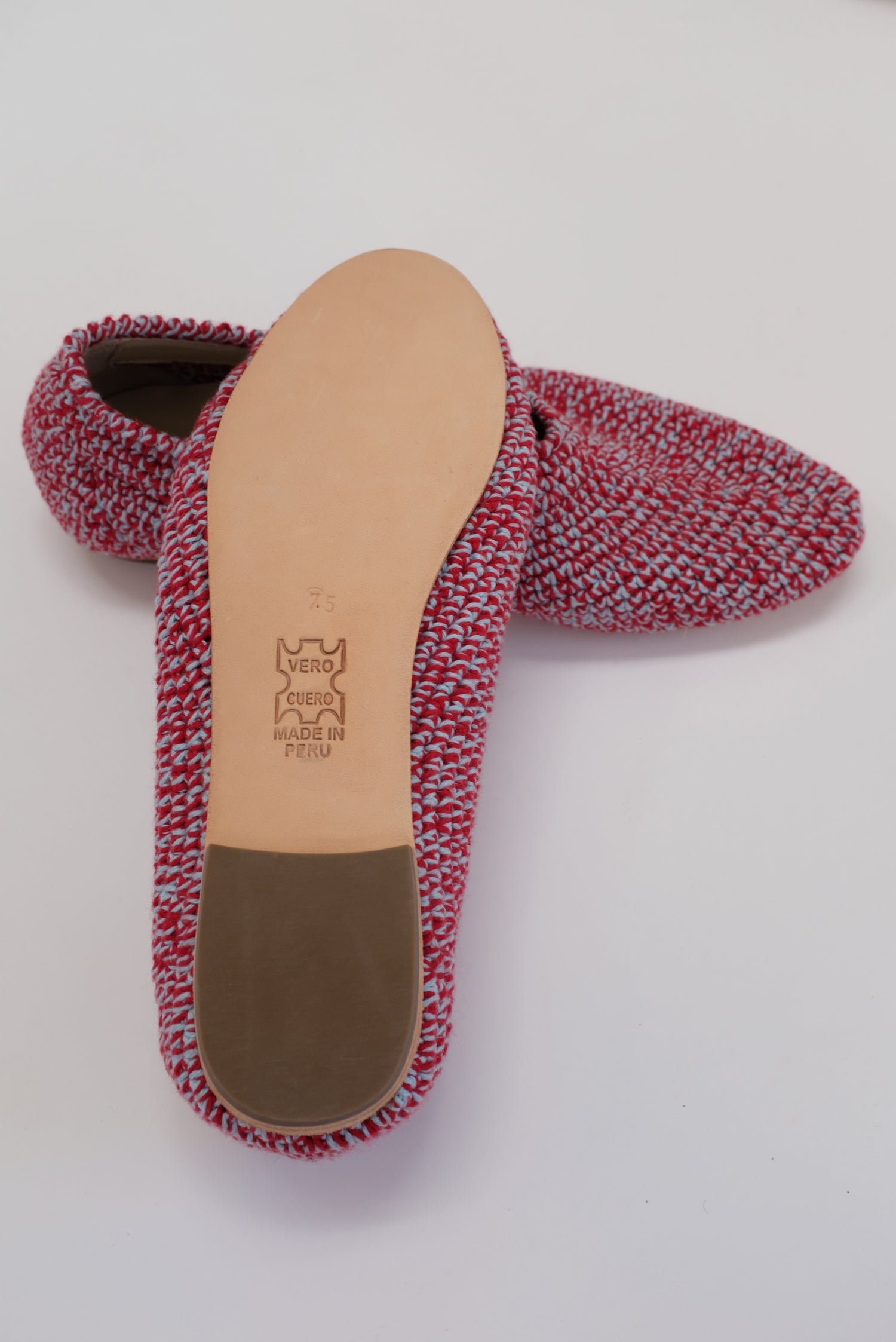 100% Hand crocheted Peruvian cotton. Luxurious glove fitting elegant flats that mold to your feet and breathe. We're extremely proud of these beautiful handmade shoes.