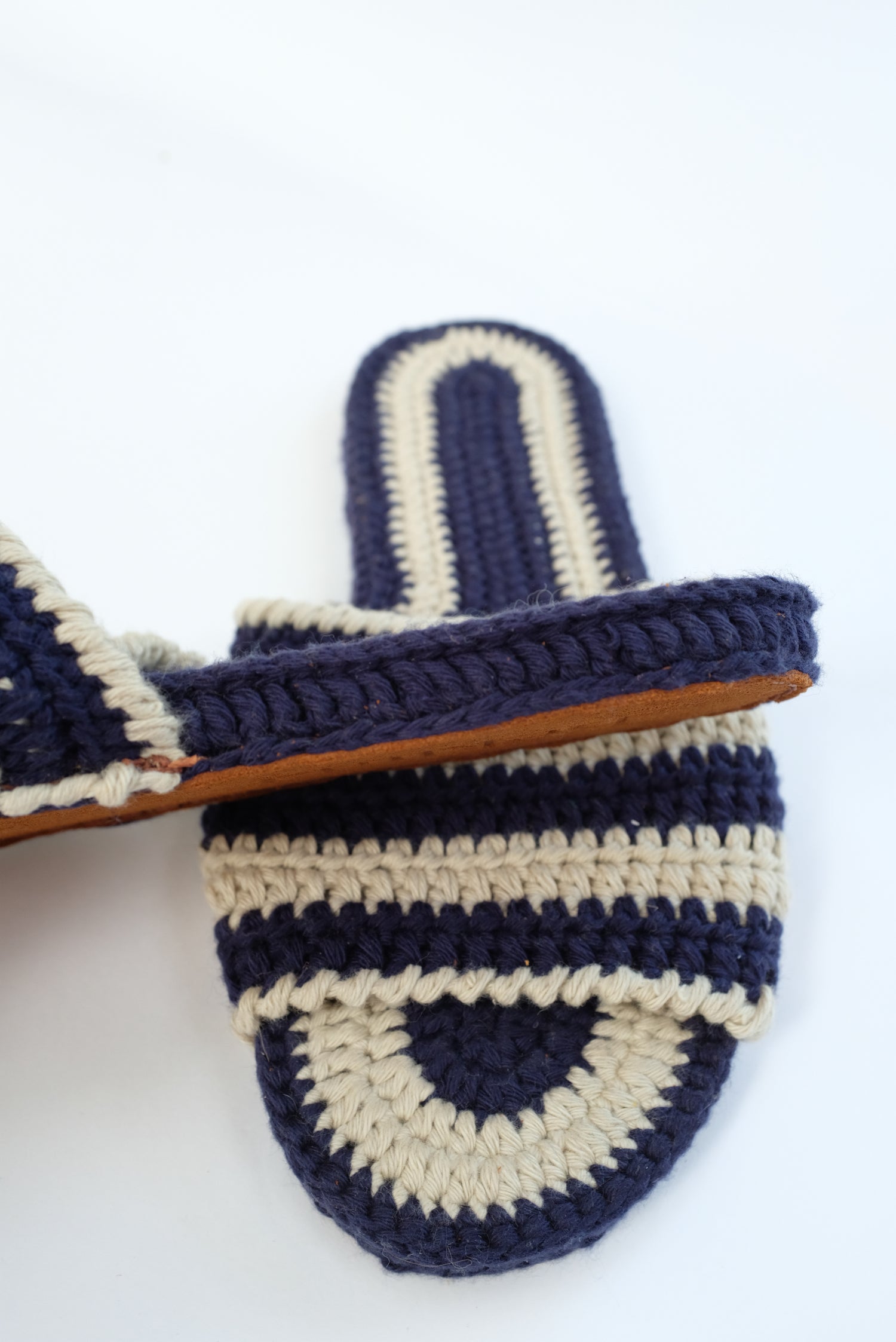 Hand crocheted slipper, 100% Peruvian cotton, soft leather moccasin style slipper sole, padded, made completely by hand. They make a great gift!