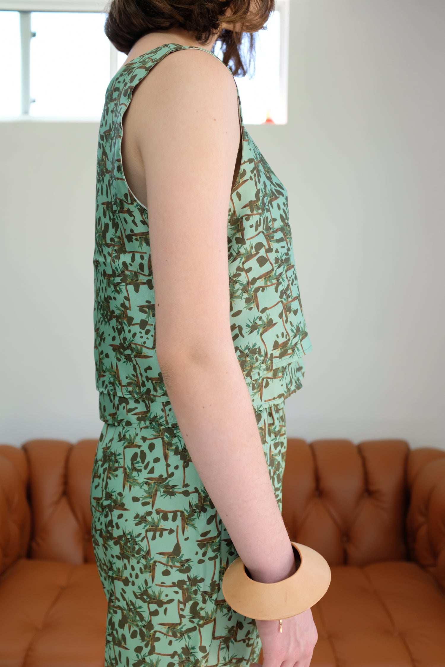 Double layer 100% silk twill tank. Perfectly pairs with high waisted pants and skirts. One size fits most. Total length 19" and across the front armpit to armpit 19"
