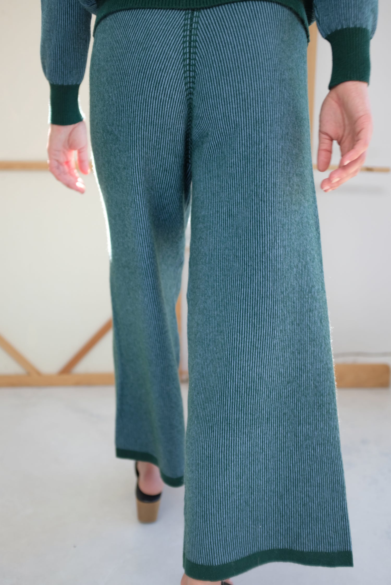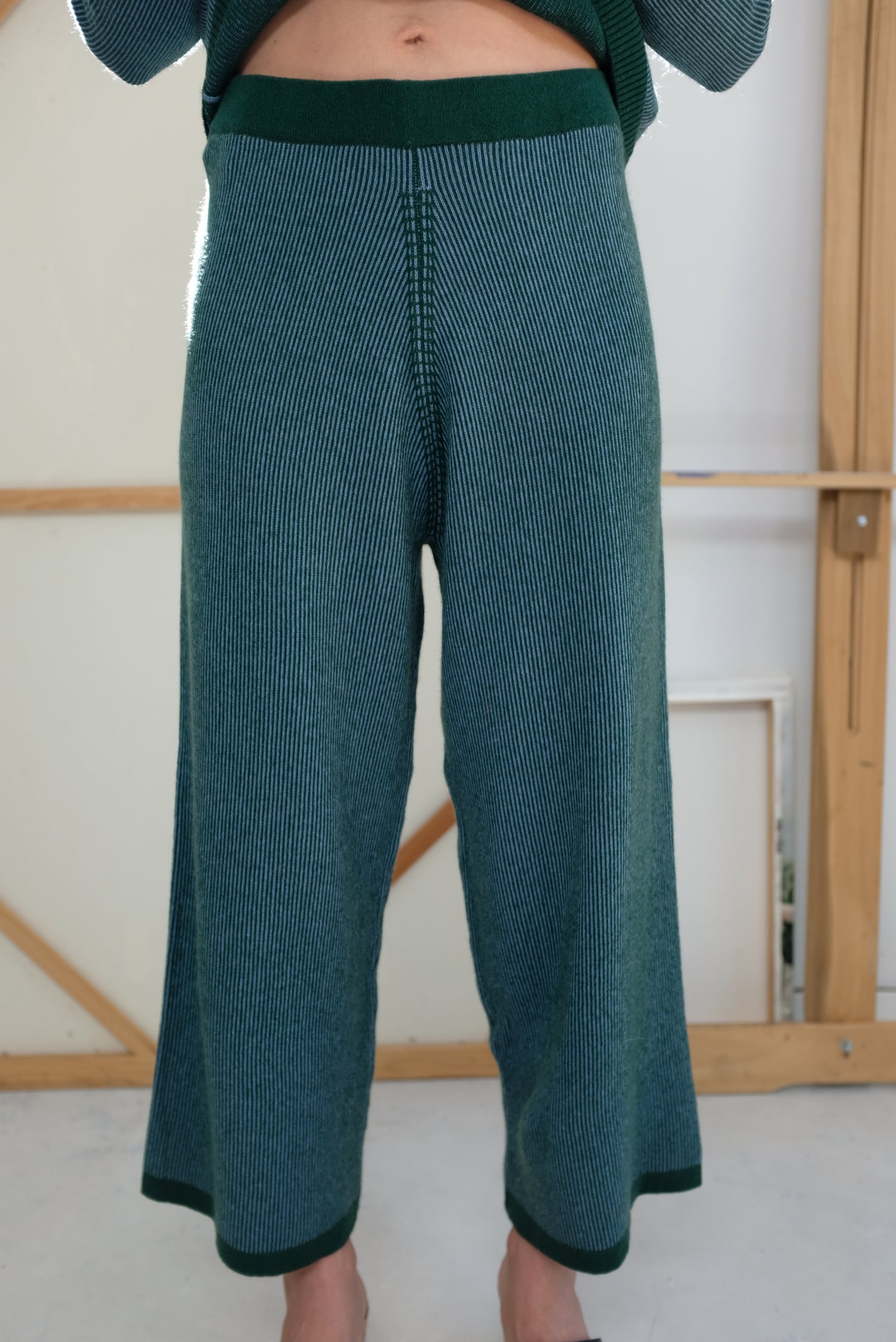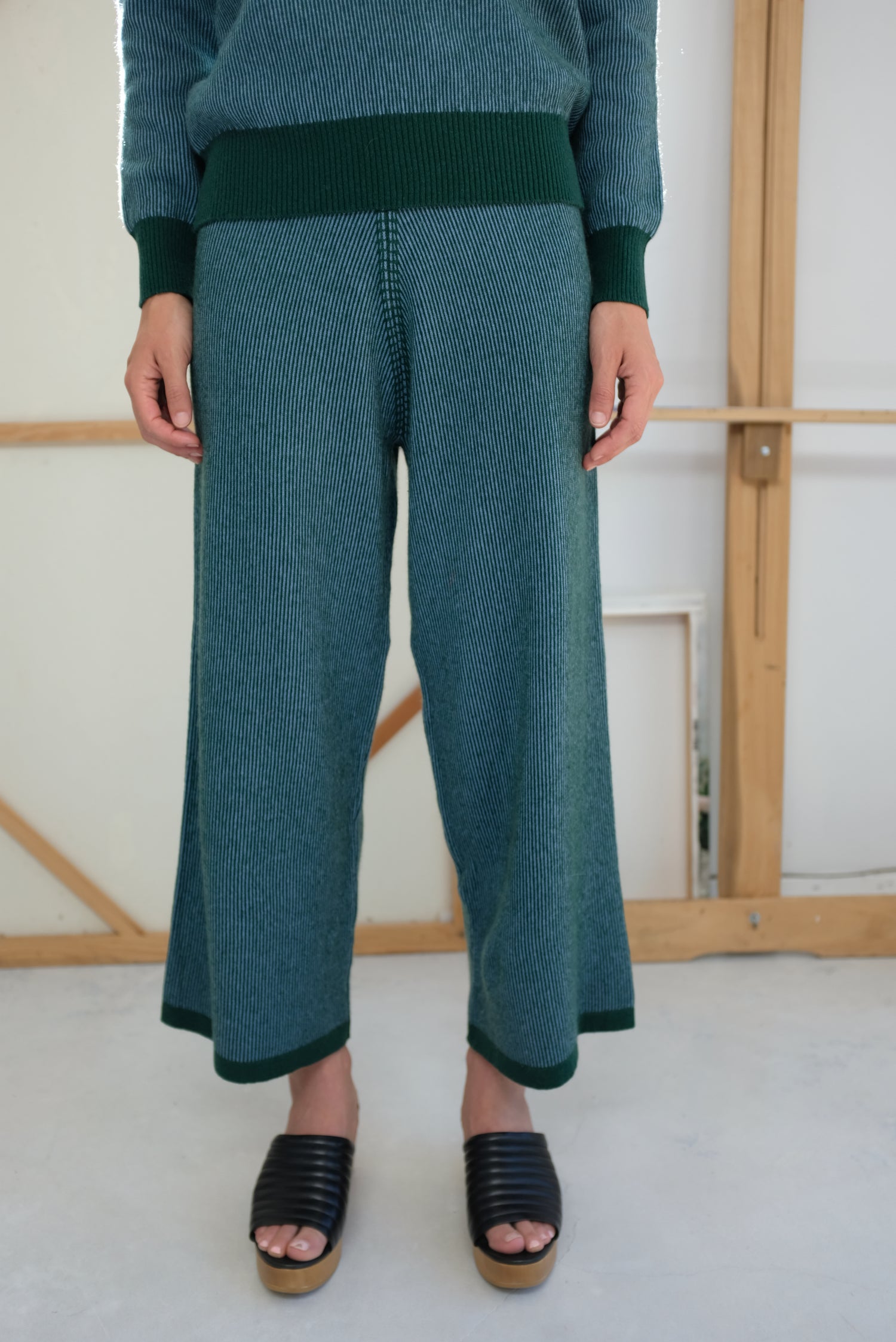 100% Cashmere two-tone ribbed culottes, luxuriously thick cashmere. Cropped, high waisted, gentle elastic waist, wide leg pants. Super comfy! Exclusive to Beklina. The same cut and fit as our best selling cotton culottes.