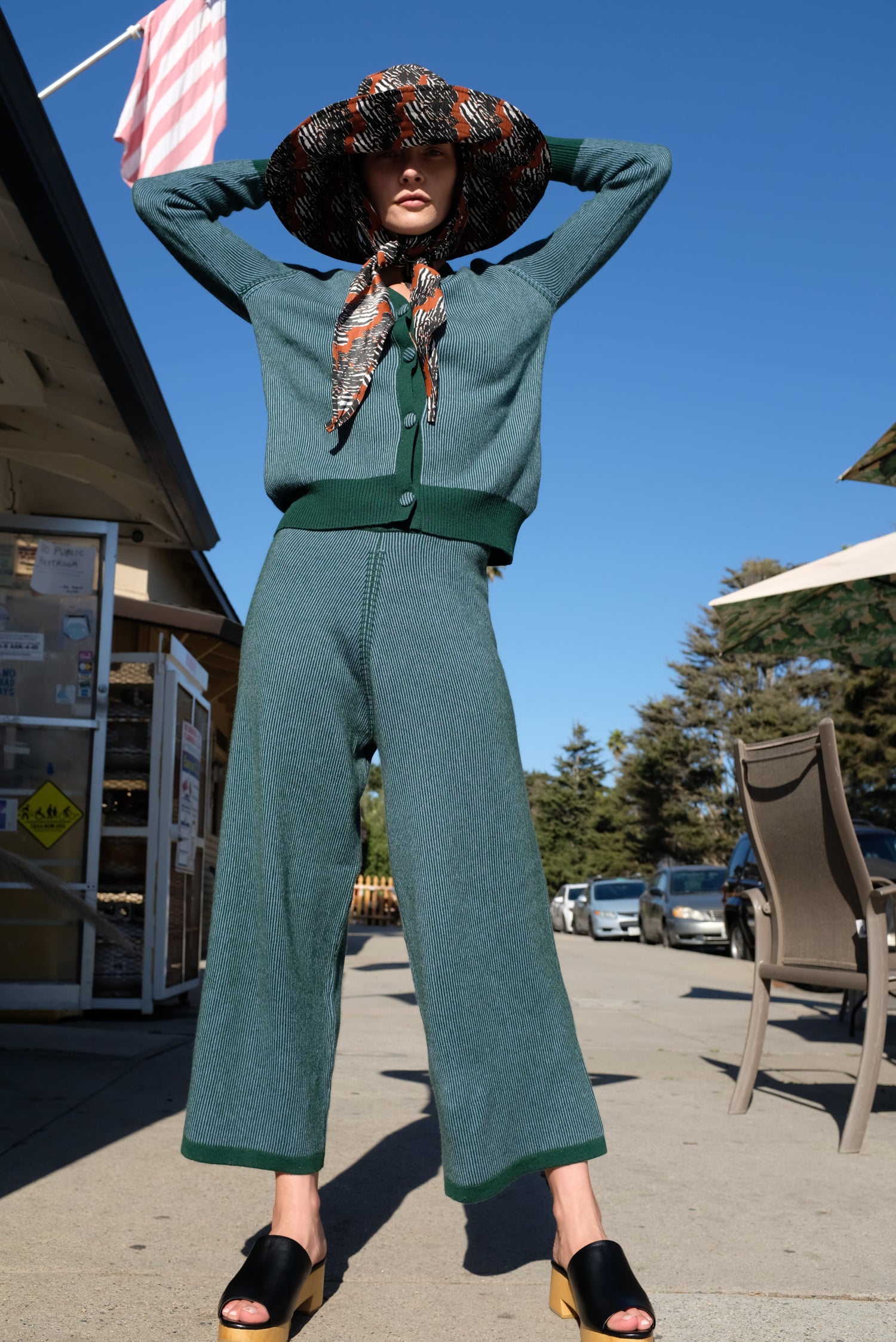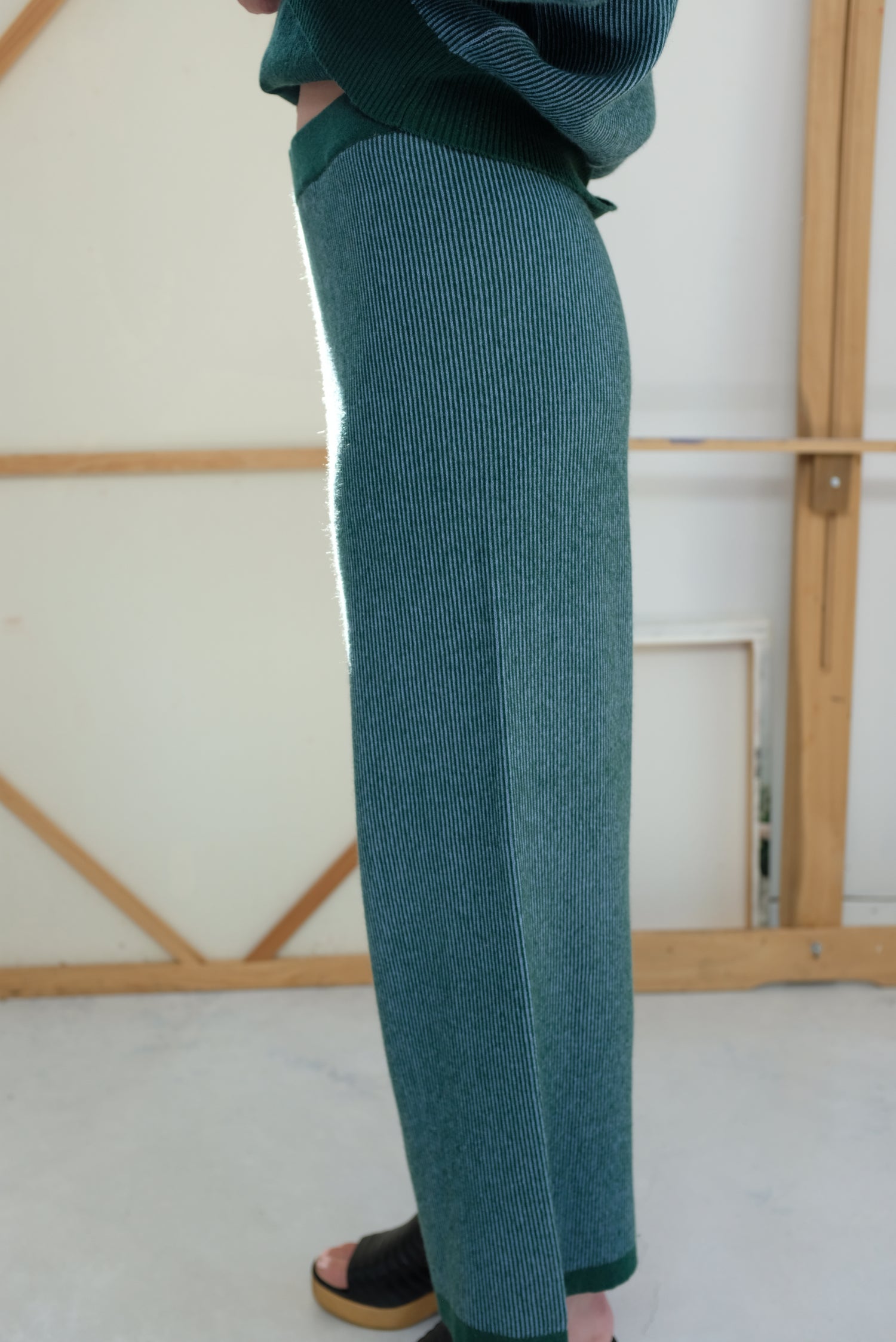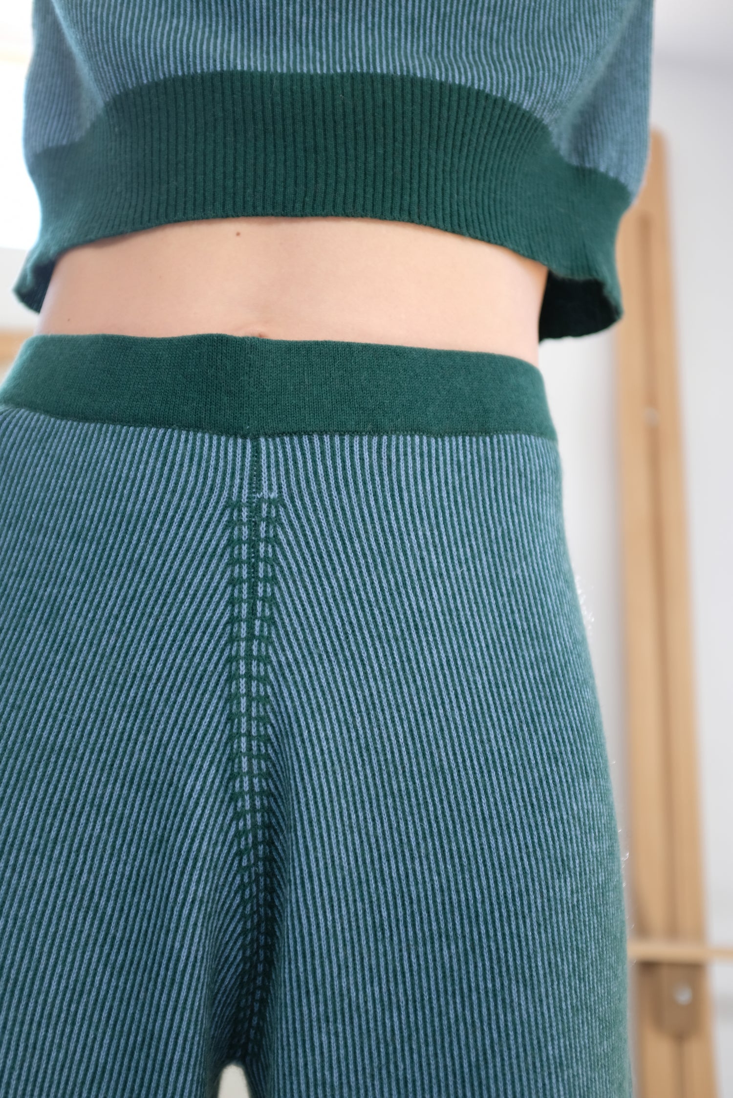100% Cashmere two-tone ribbed culottes, luxuriously thick cashmere. Cropped, high waisted, gentle elastic waist, wide leg pants. Super comfy! Exclusive to Beklina. The same cut and fit as our best selling cotton culottes.
