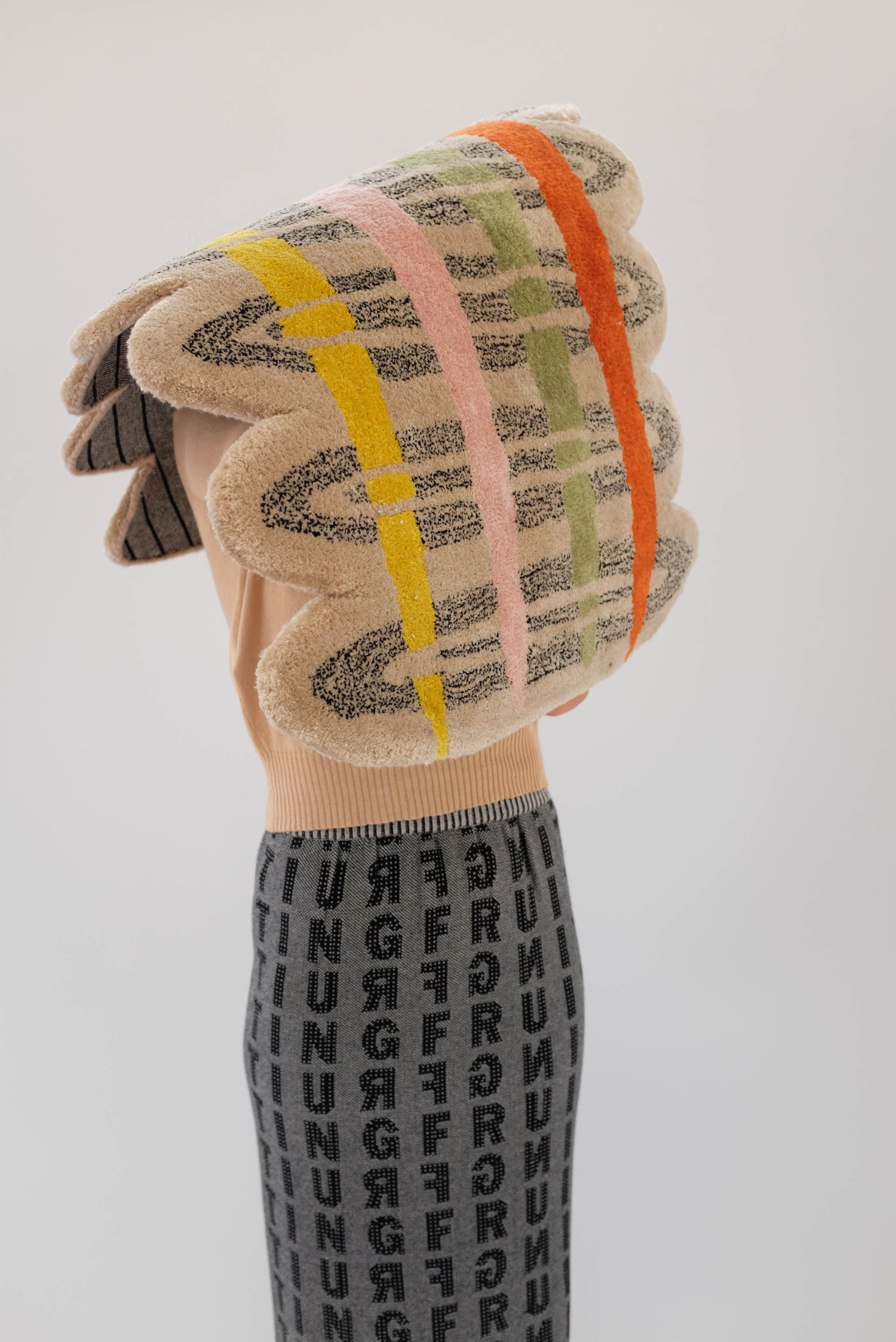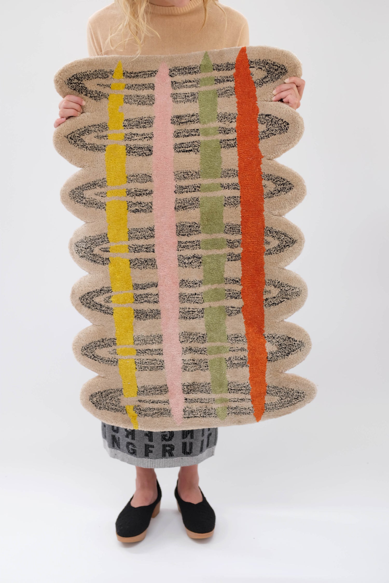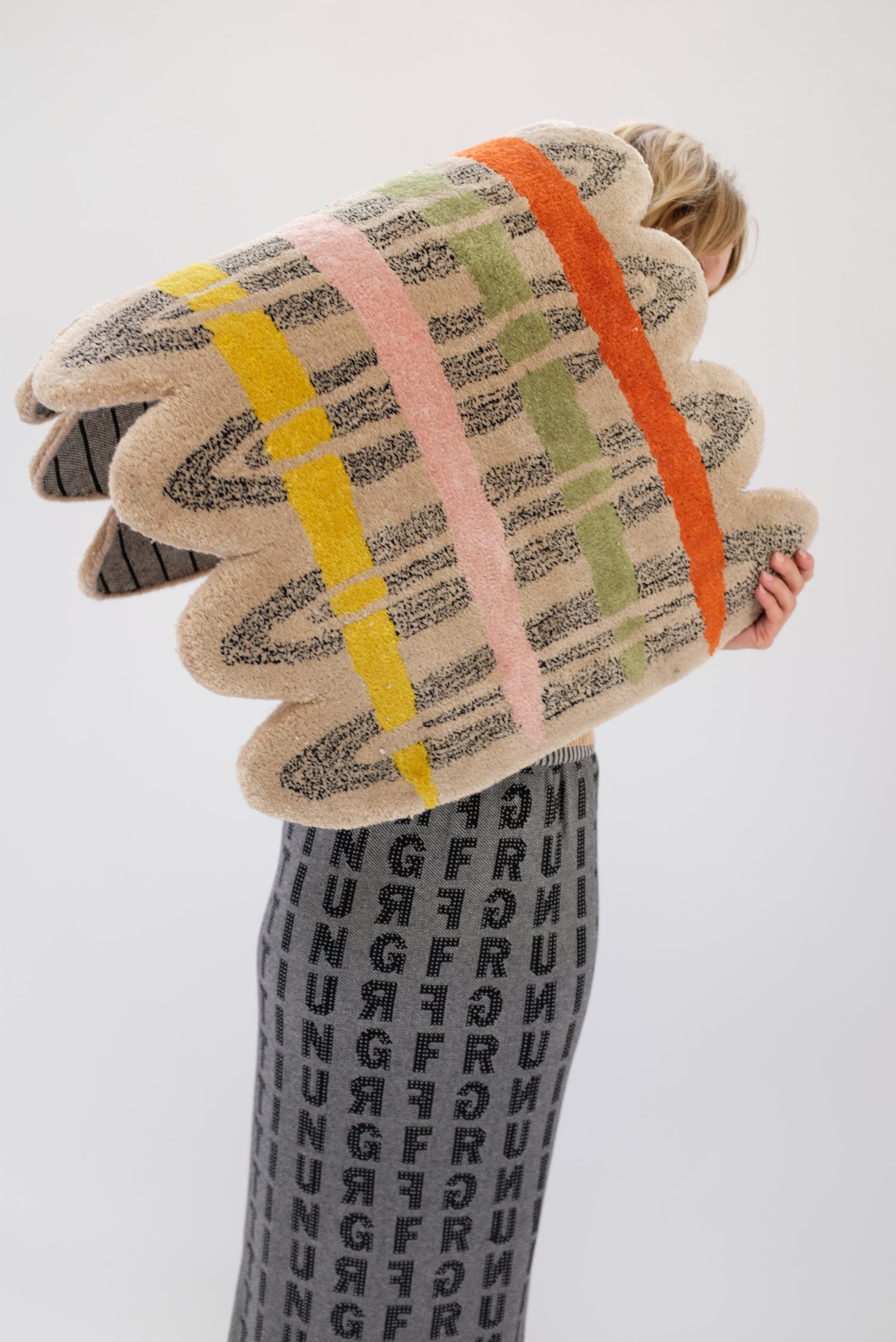 Art rug, exclusive design, made from recycled plastic bottles, feels and looks like wool. Dense, thick, pile. 100% recycled.