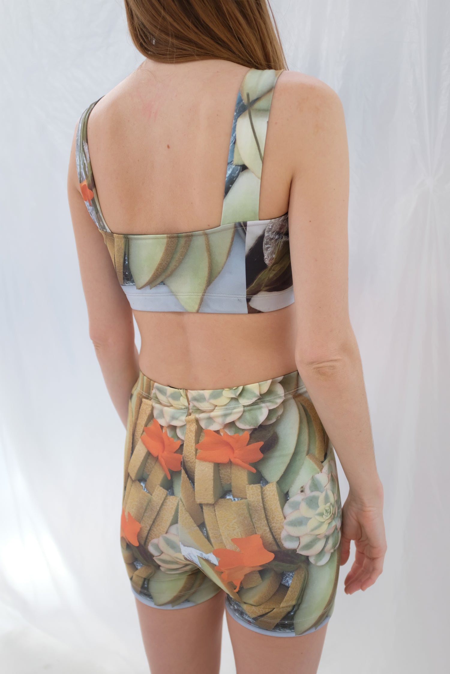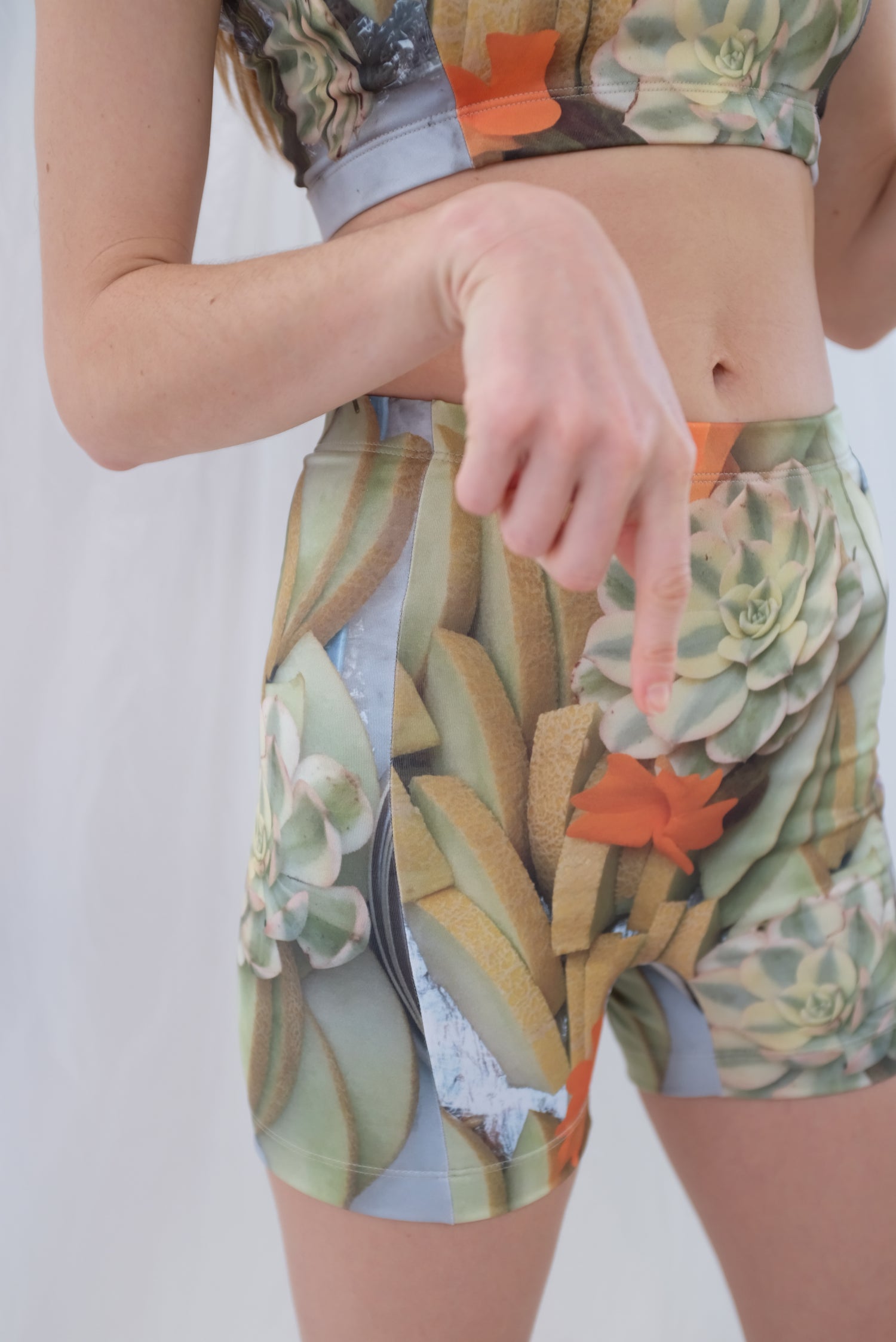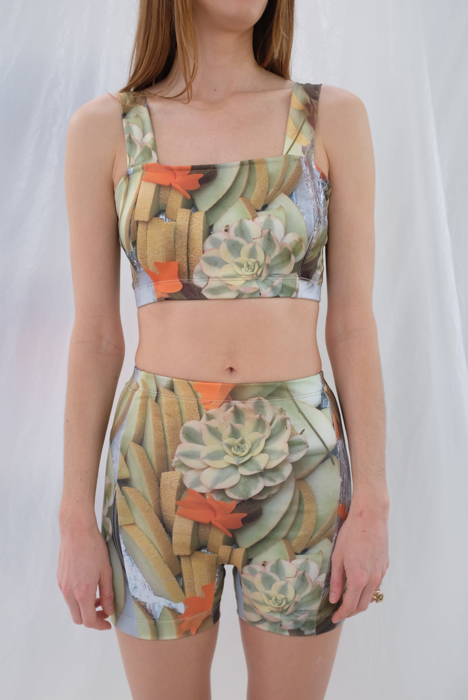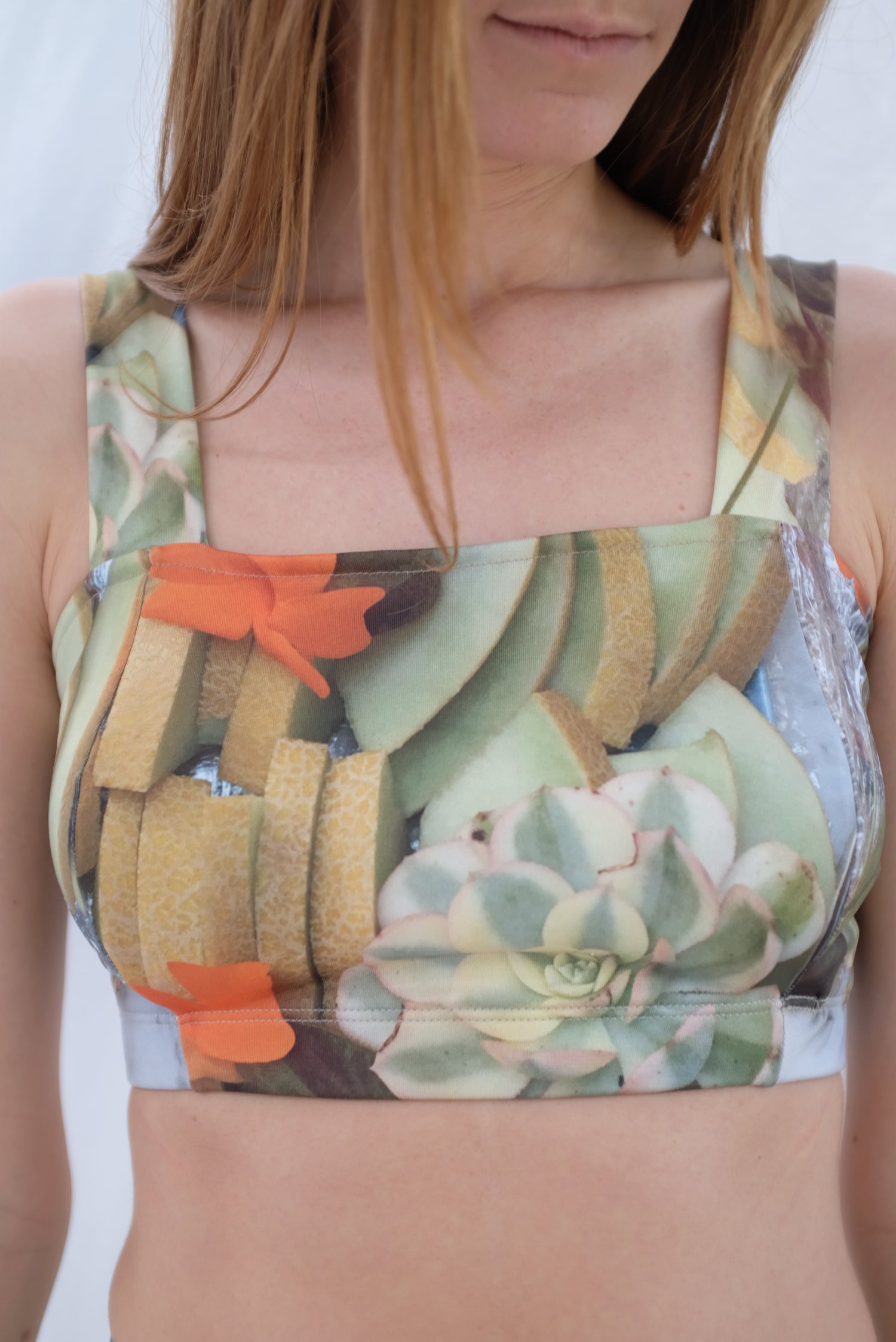 Our power suit bikini set in limited edition Melon print, 100% lycra, fully lined, and fully supported top and bottom, high waisted. Providing physical, mental and emotional comforts. Either top or bottom work solo as daywear.