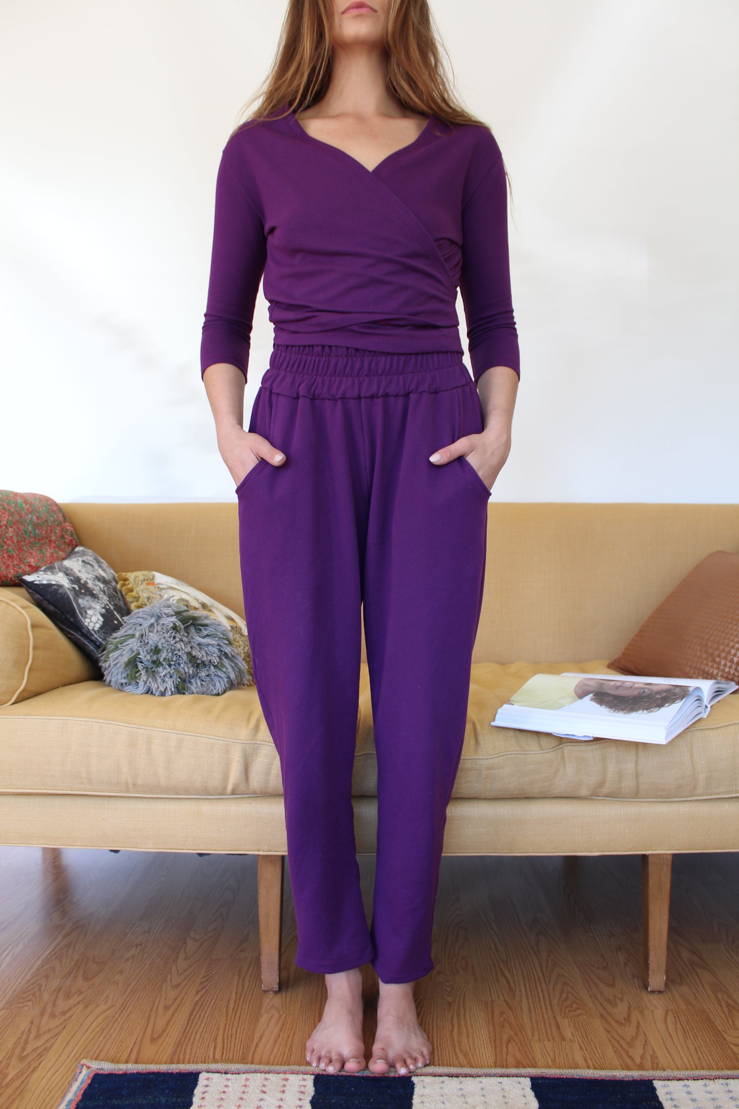 100% Organic cotton terry, hand dyed in small batches. Versatile wearings, tie in front, back, wear fitted or loose, or open. One size fits most, 3/4 sleeve, wear to the office or the gym!