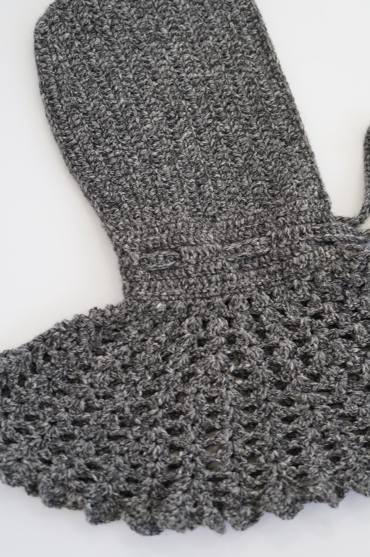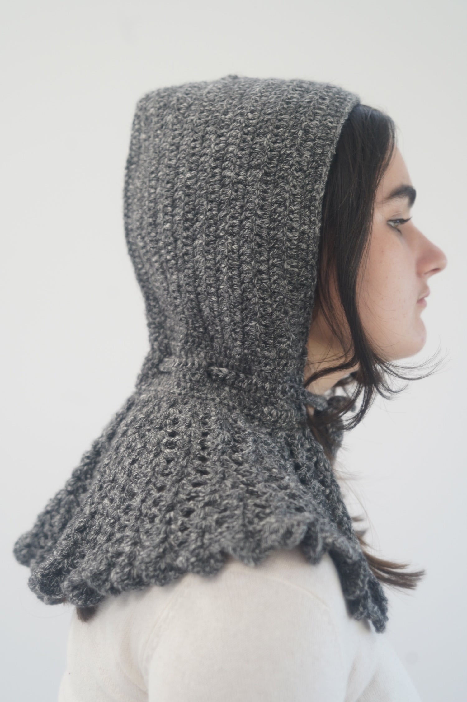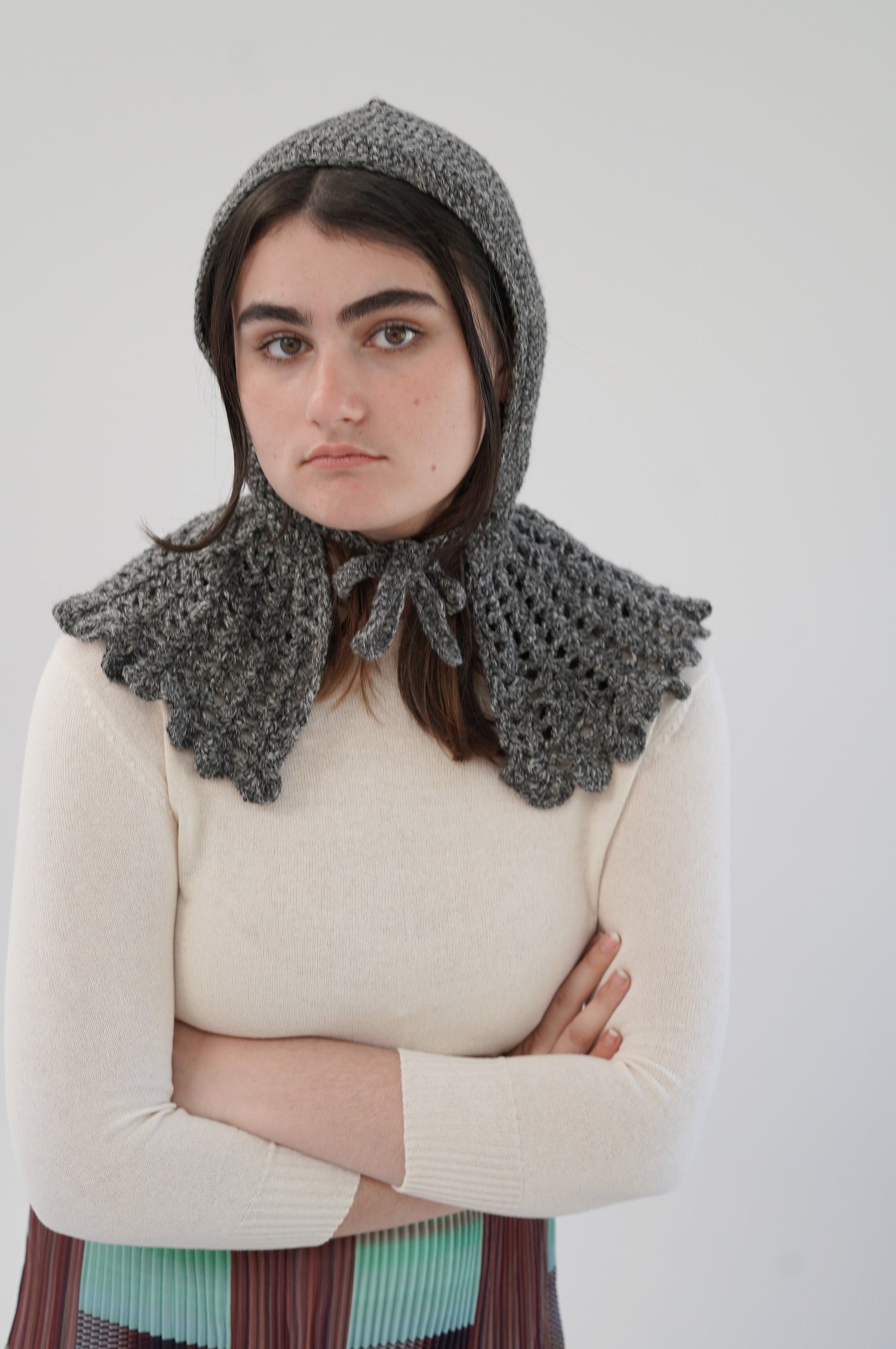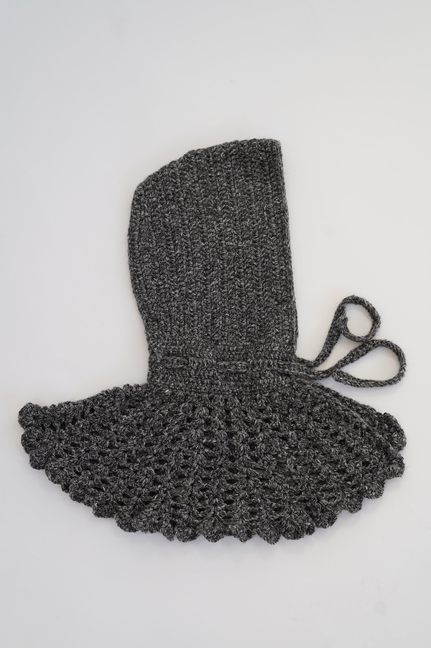 Hand crocheted, adjustable tie, warm, open lace crochet collar. 68% Baby alpaca, 32% pima cotton. One size fits most. Unisex.