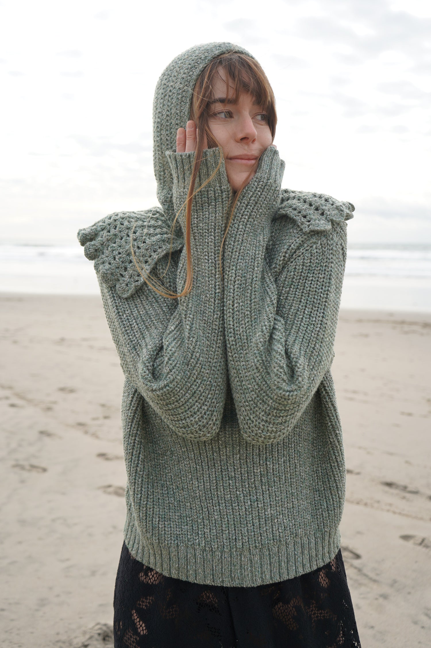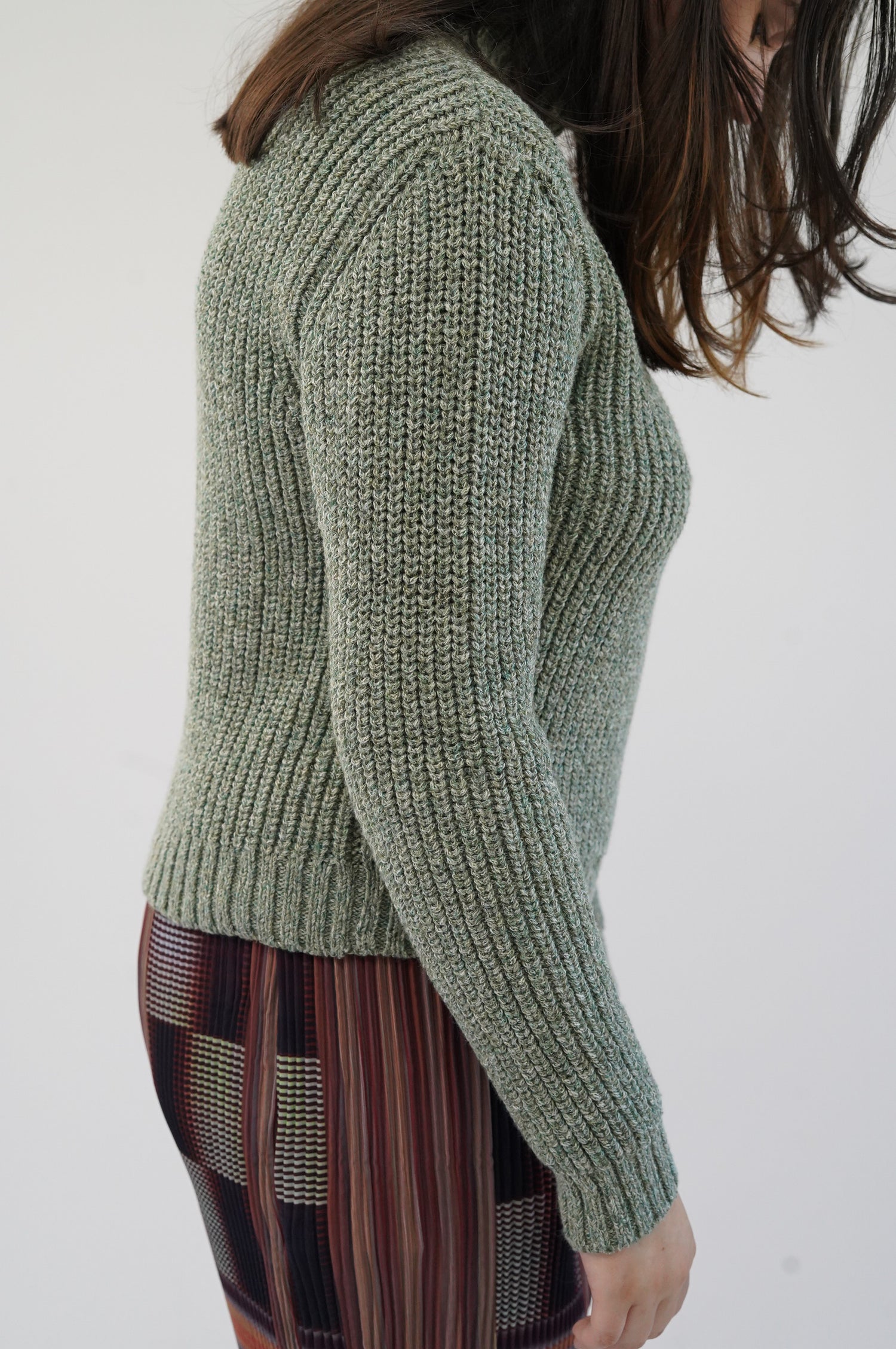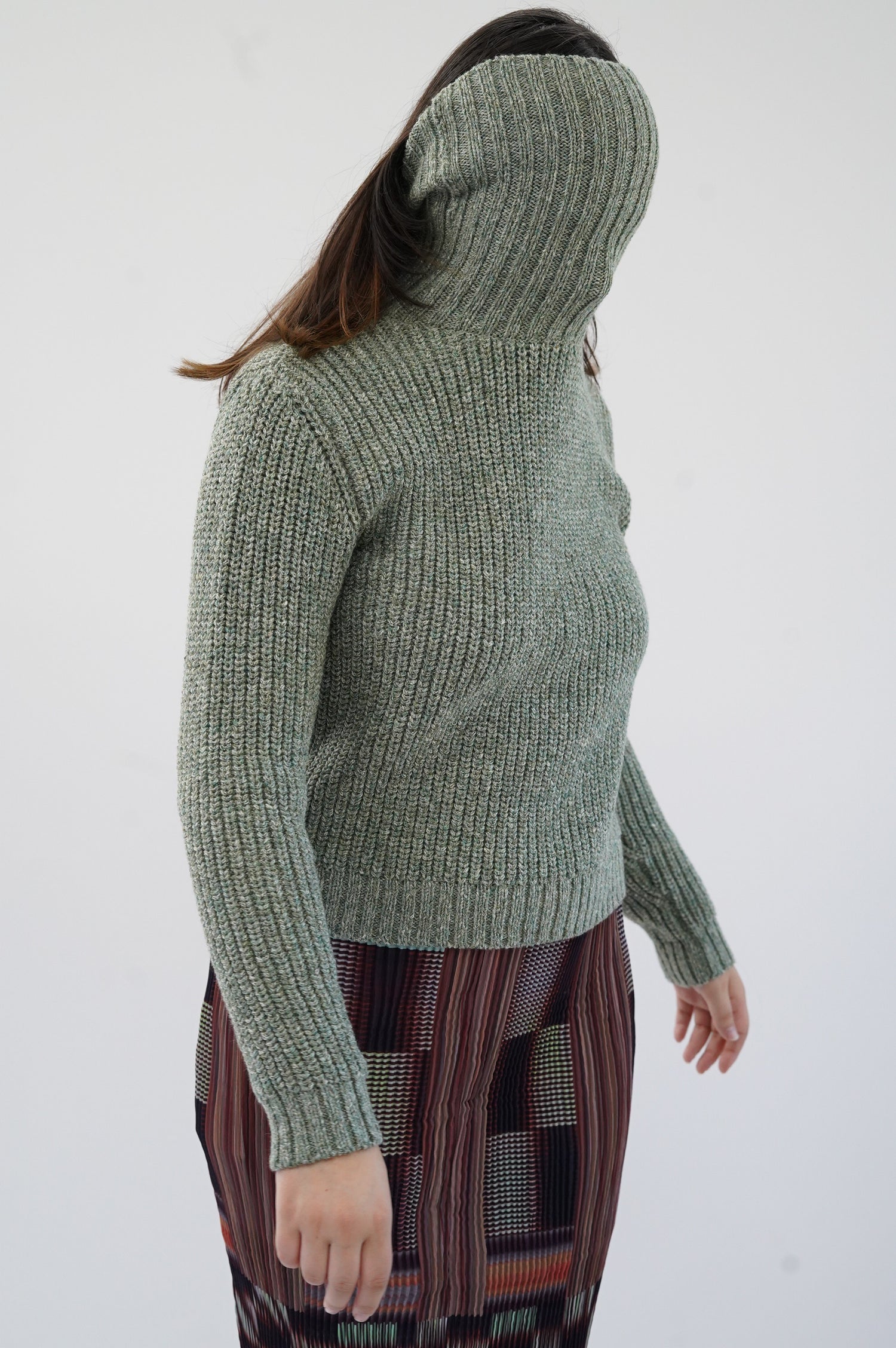 The most luxurious hand knit sweater we have ever made. You won’t want to wear anything under it, or take it off. Ultimate comfort object that will draw you in first thing in the morning. 9" ribbed turtleneck, 2" ribbing at cuff and waist. 68% Baby alpaca, 32% pima cotton. Model is wearing size s/m.