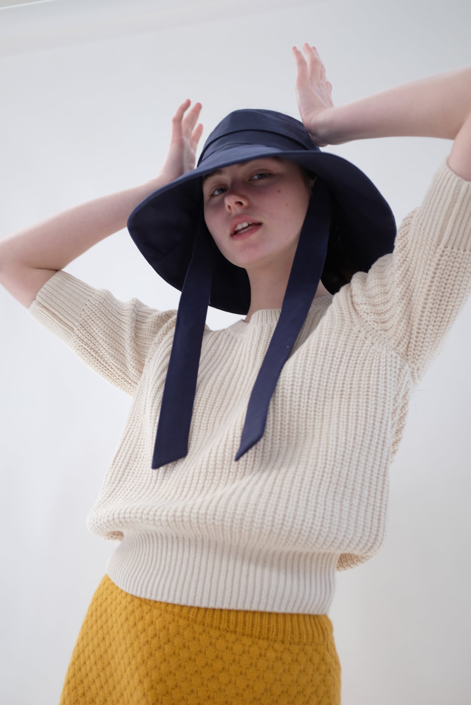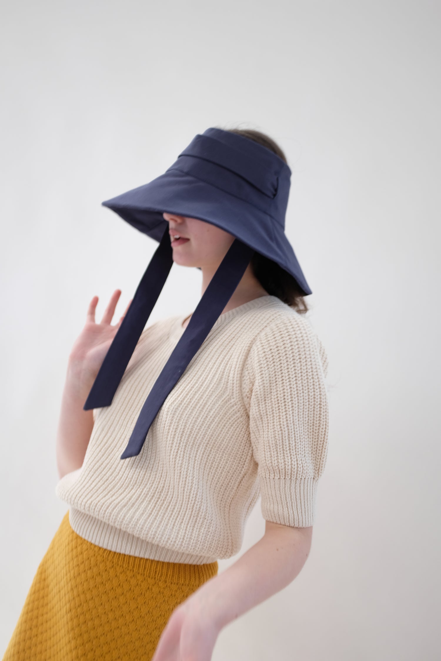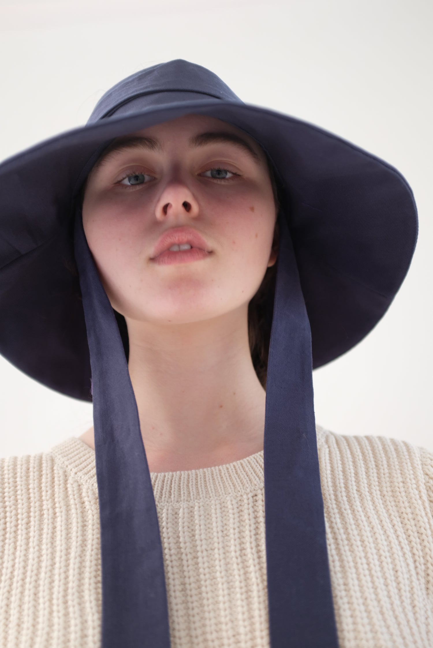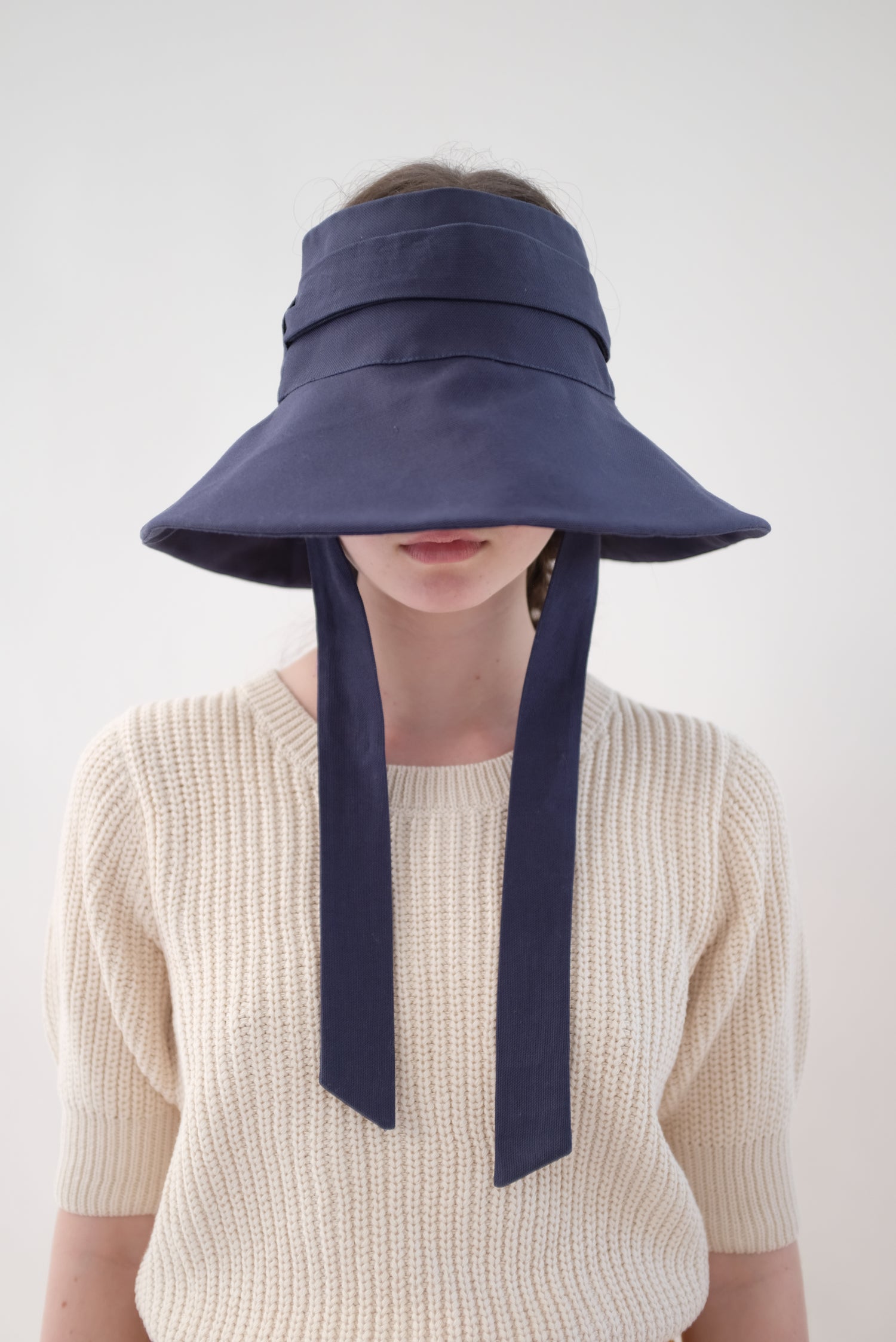 Versatile sun hat with removable tie that can be worn in several ways, or removed. 100% Cotton canvas, topless, allowing for one size fits most heads, 22"-23.25”. Travels well and washable. Great sun protection.