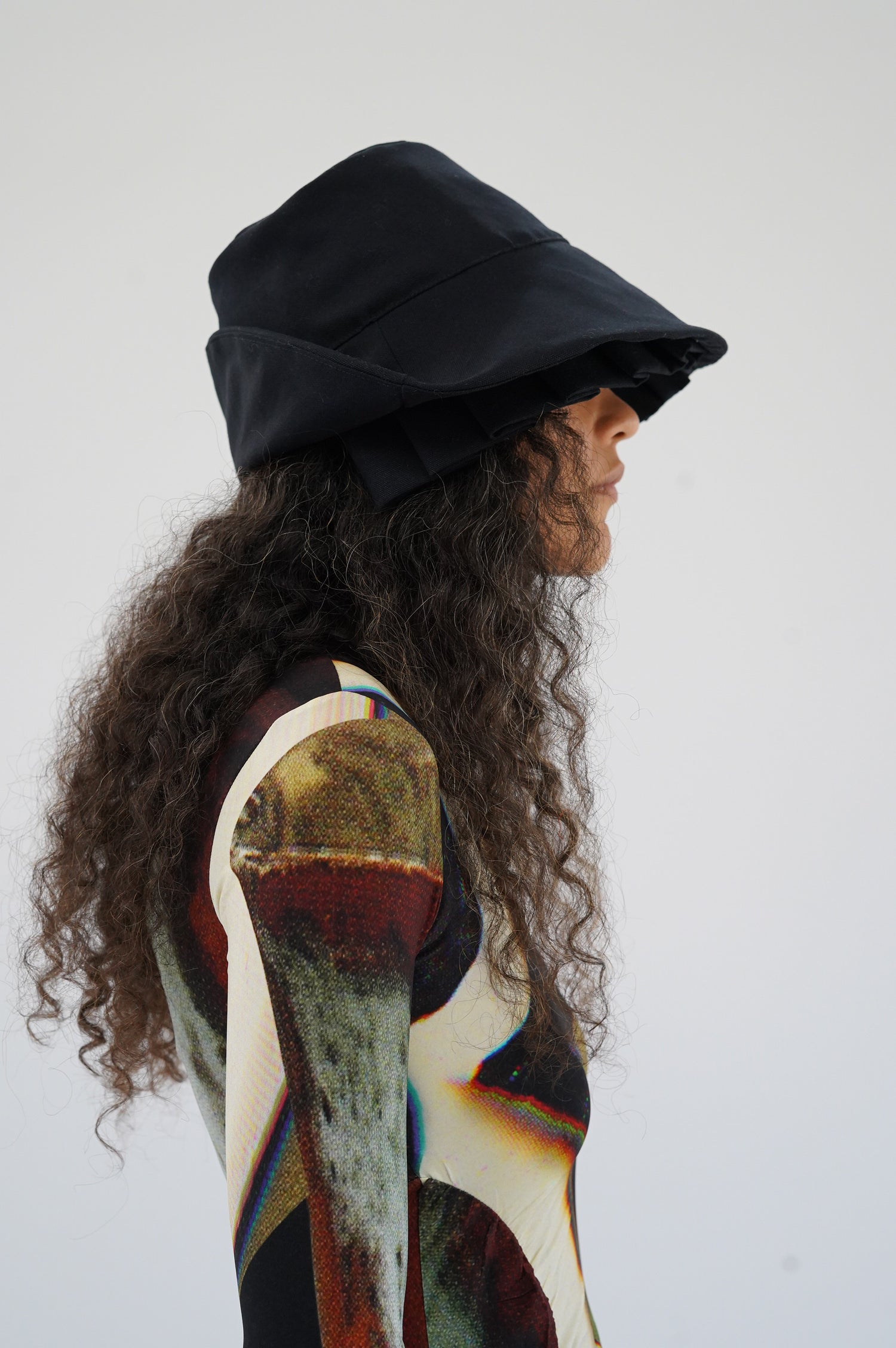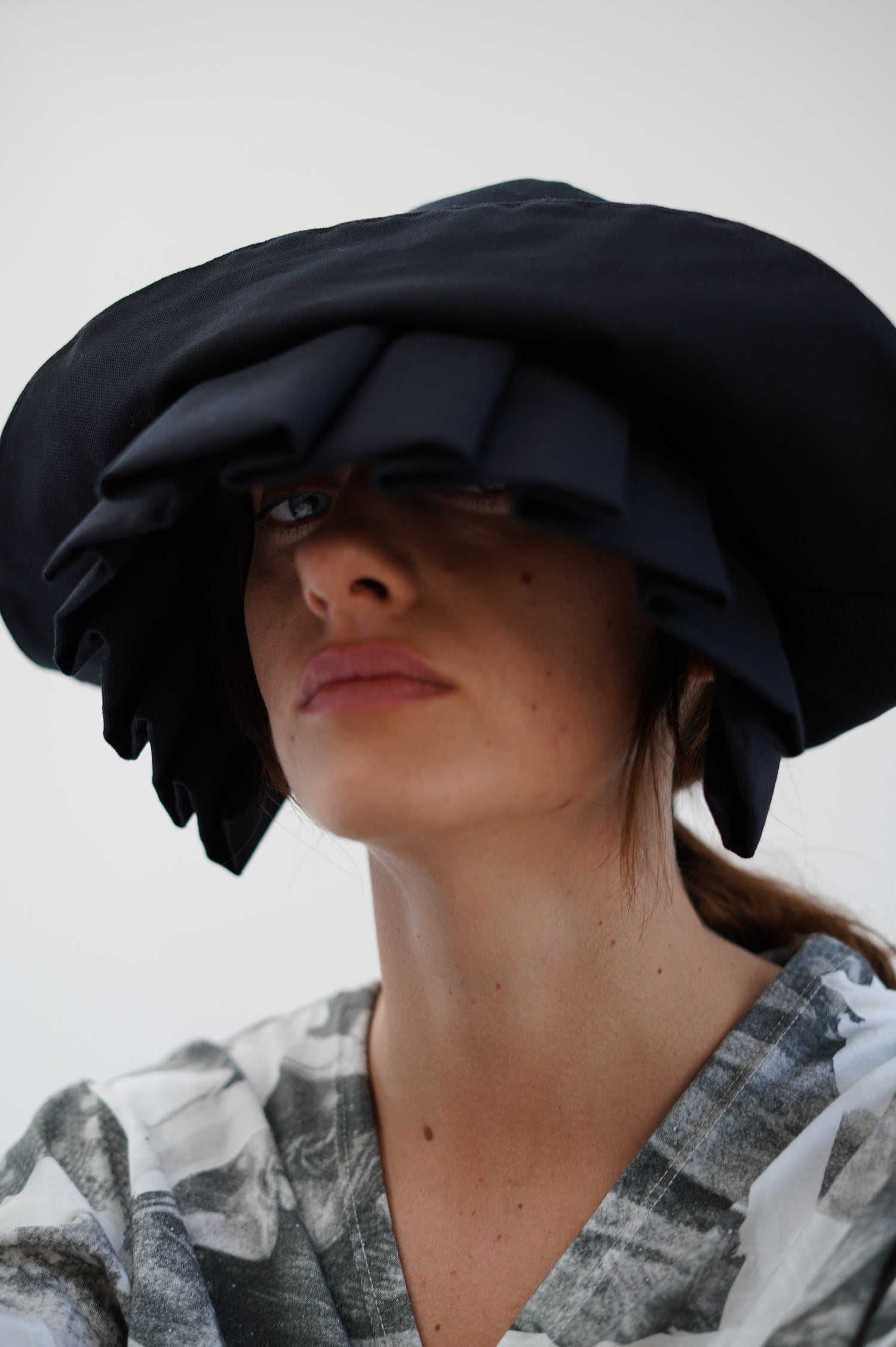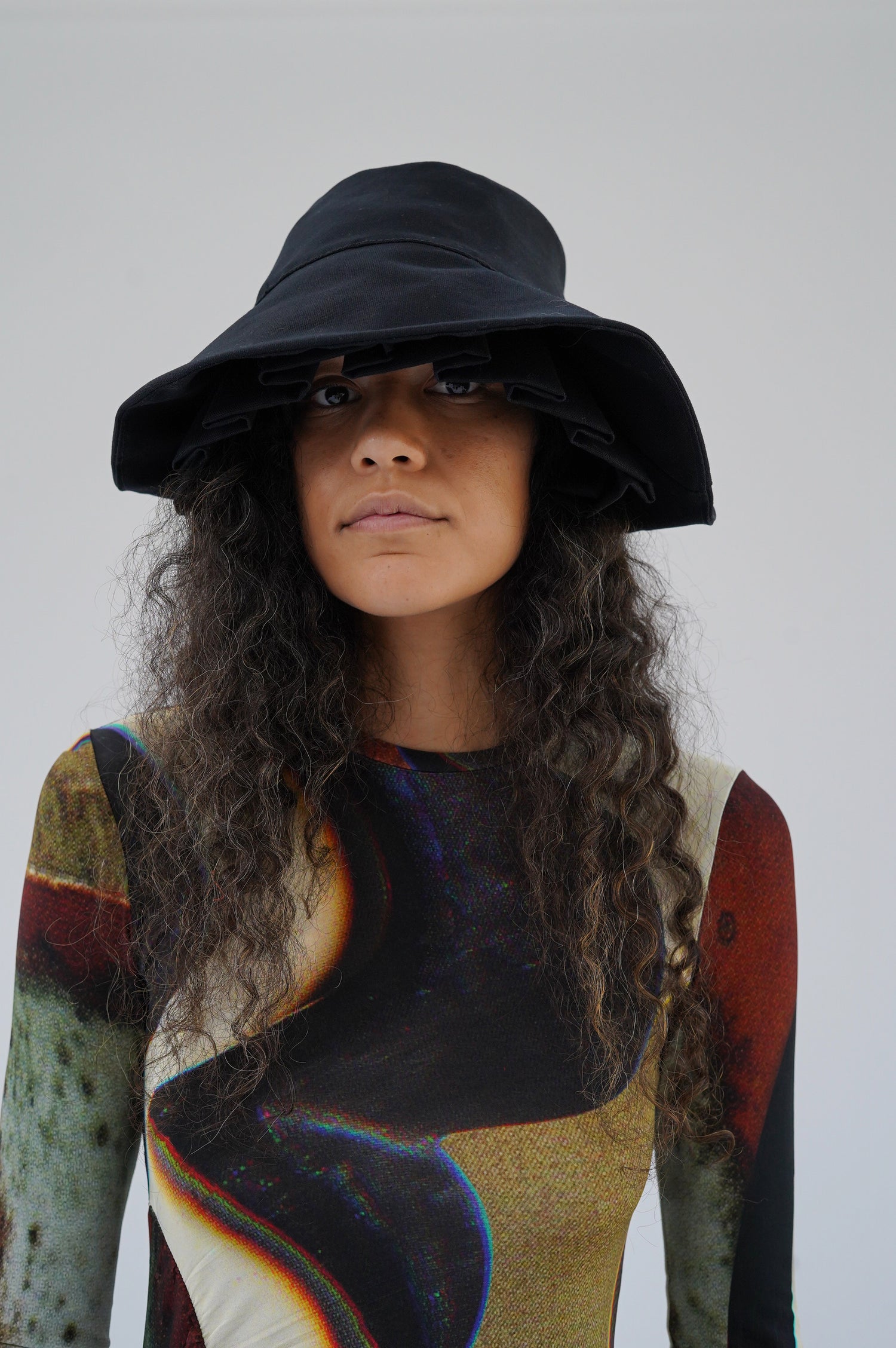Oversized bucket style hat with inner pleat detail that can be worn in many different ways. Fits heads up to 22-24” circumference. Super functional in providing good shade, and completely packs up and travels well. Shop exclusive. 100% Organic cotton canvas.