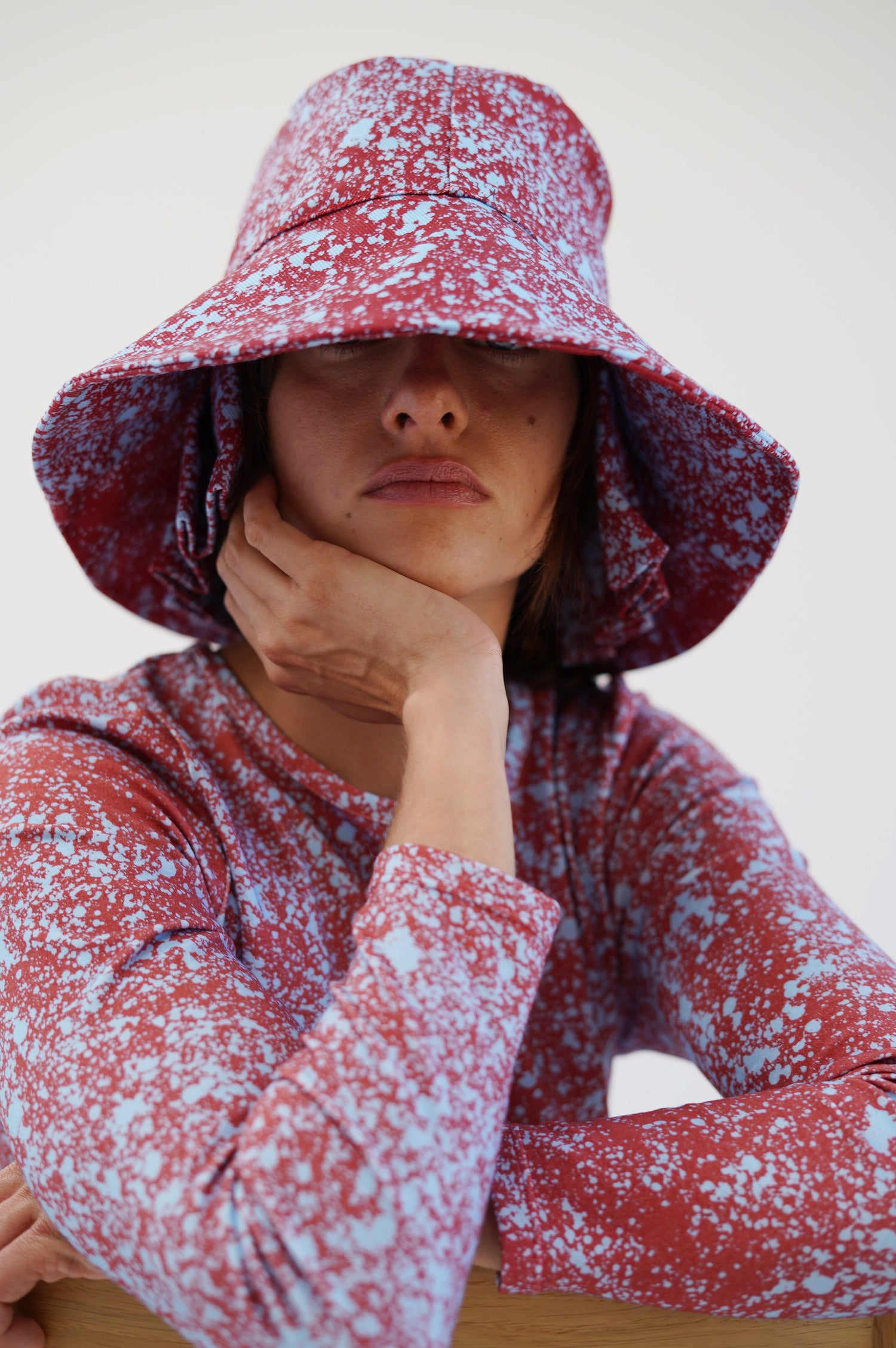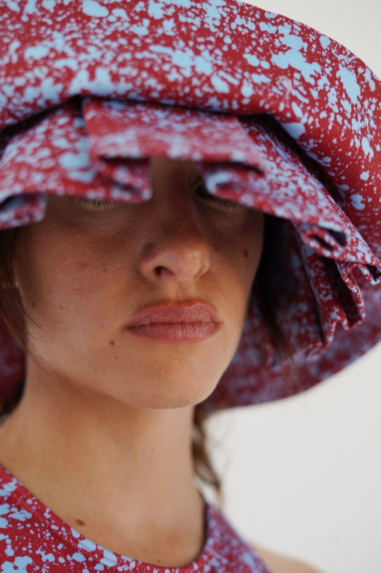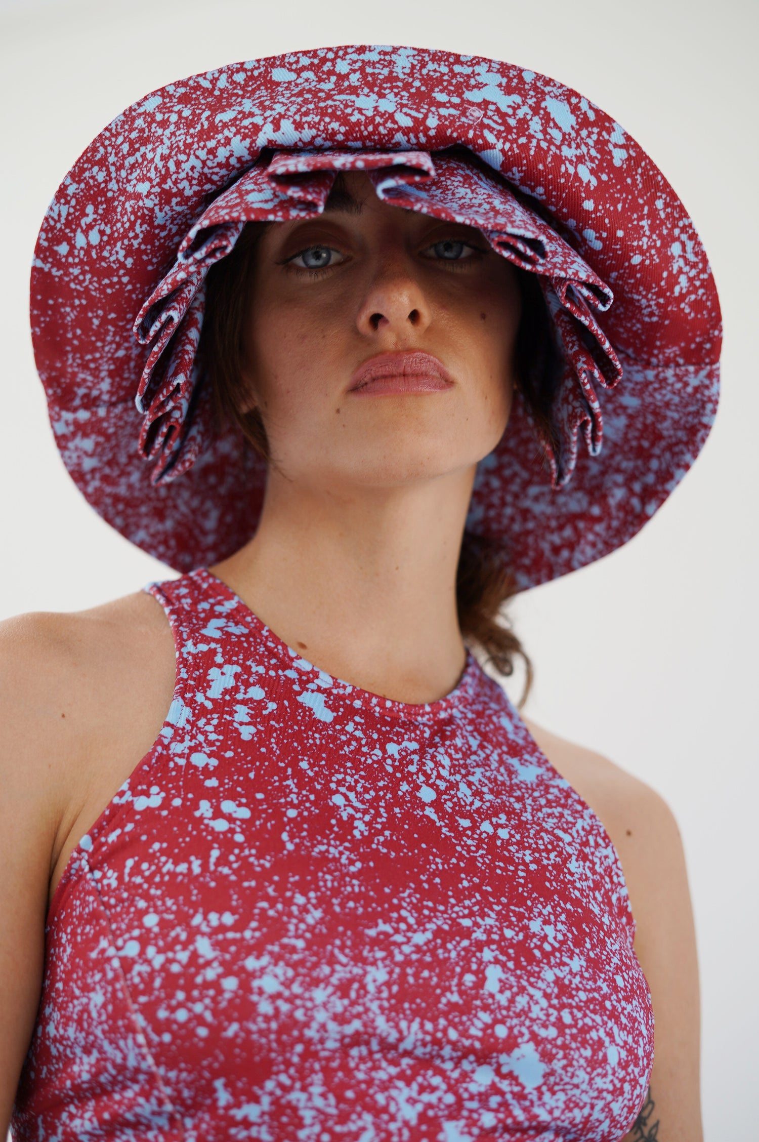 Beklina Layered Pleat Hat Splatter Blue/Red