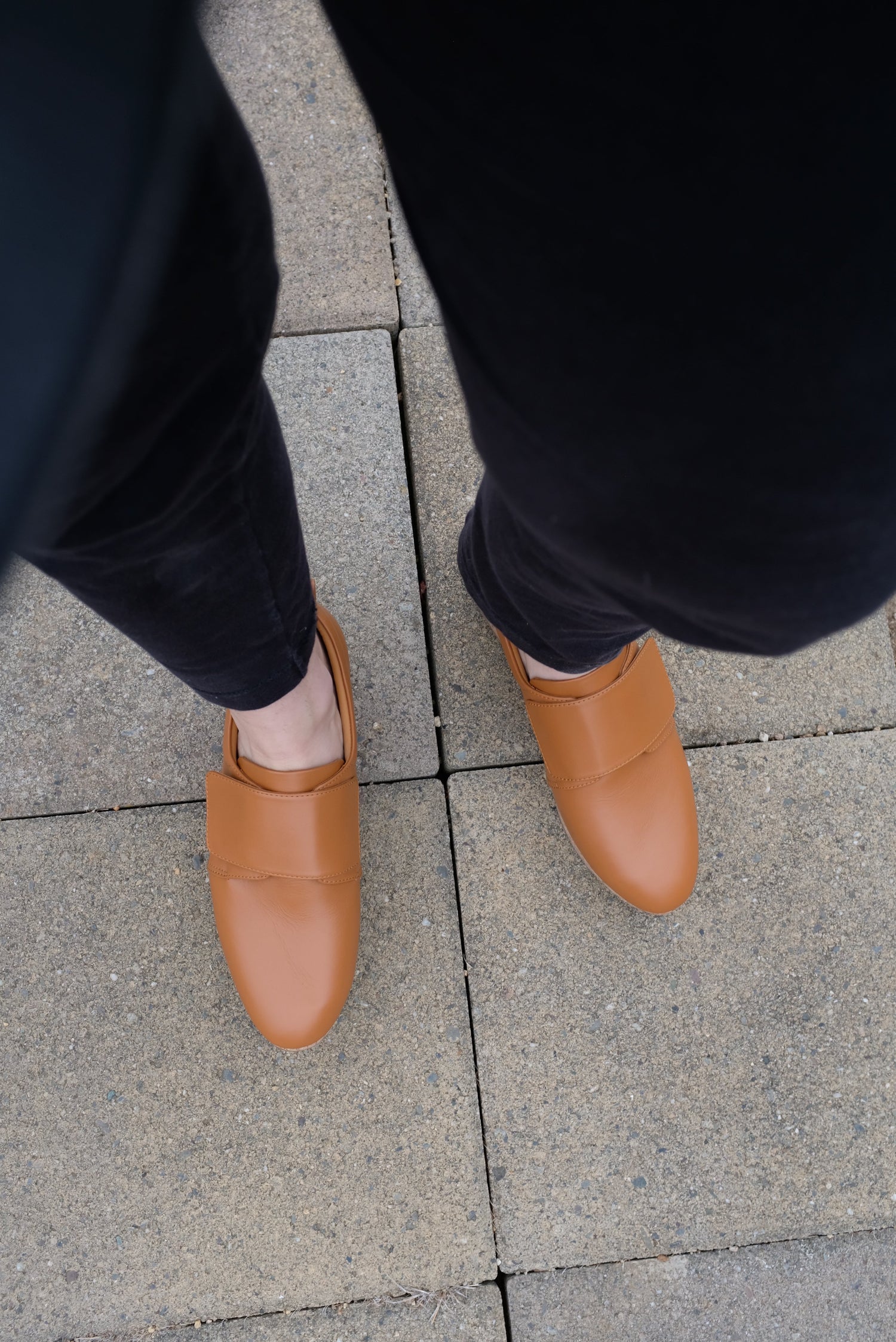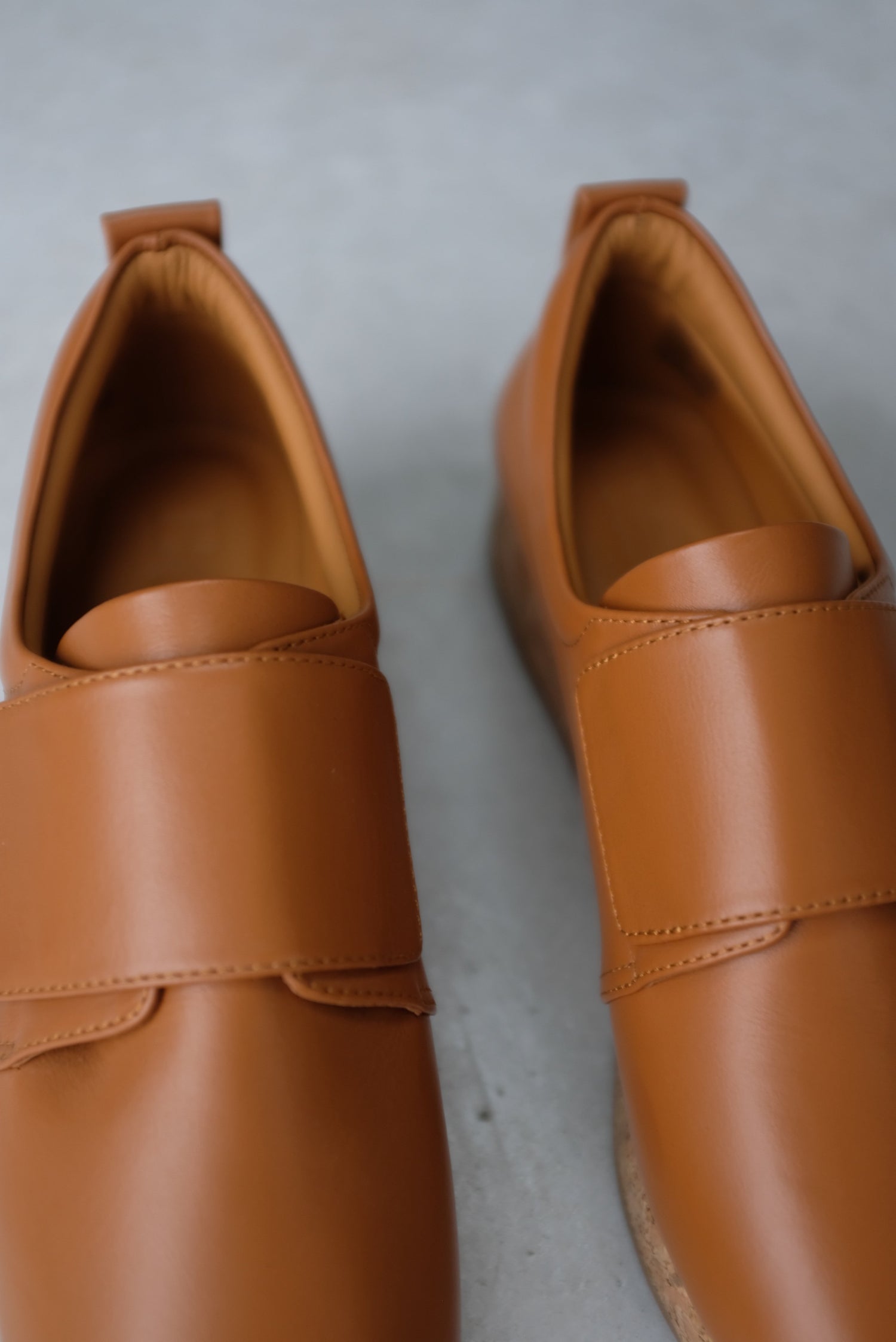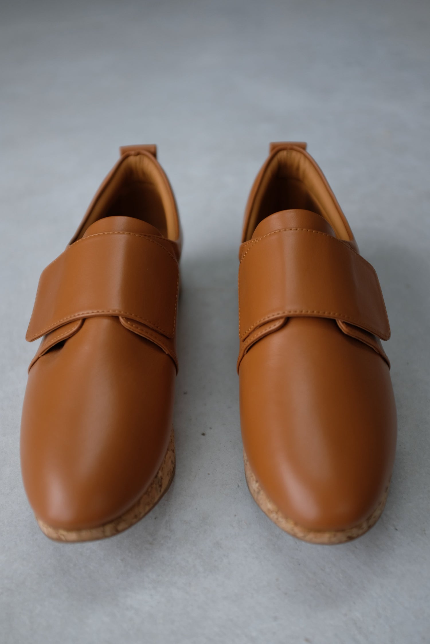 100% Leather upper with cork 1 1/4" platform heel, velcro strap closure. Super comfy walking shoe. Running true to size.