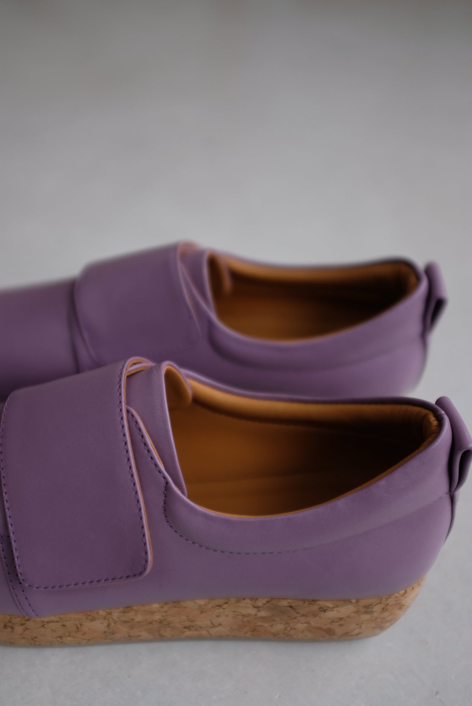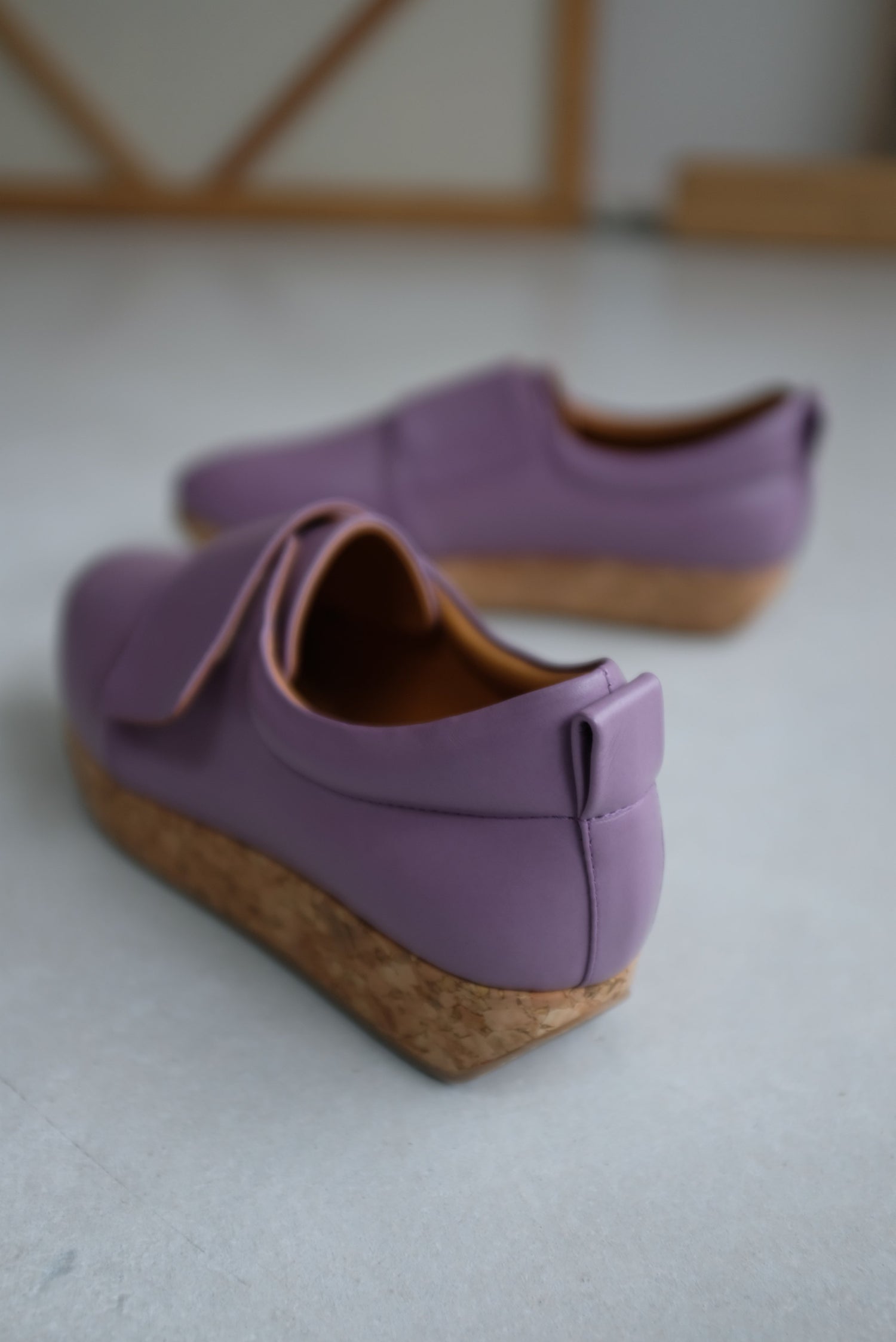 100% Leather upper with cork 1 1/4" platform heel, velcro strap closure. Super comfy walking shoe. Running true to size.