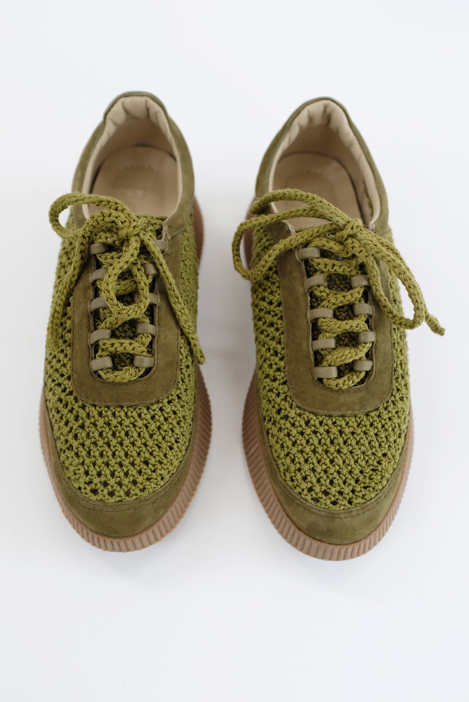 Ultra comfy luxurious walking shoe, molds to your feet. Peruvian pima cotton crocheted body with suede trim, handmade crochet laces, all natural tree sap rubber sole, sustainably harvested in the Amazon Jungle of Peru. Basically works of art...