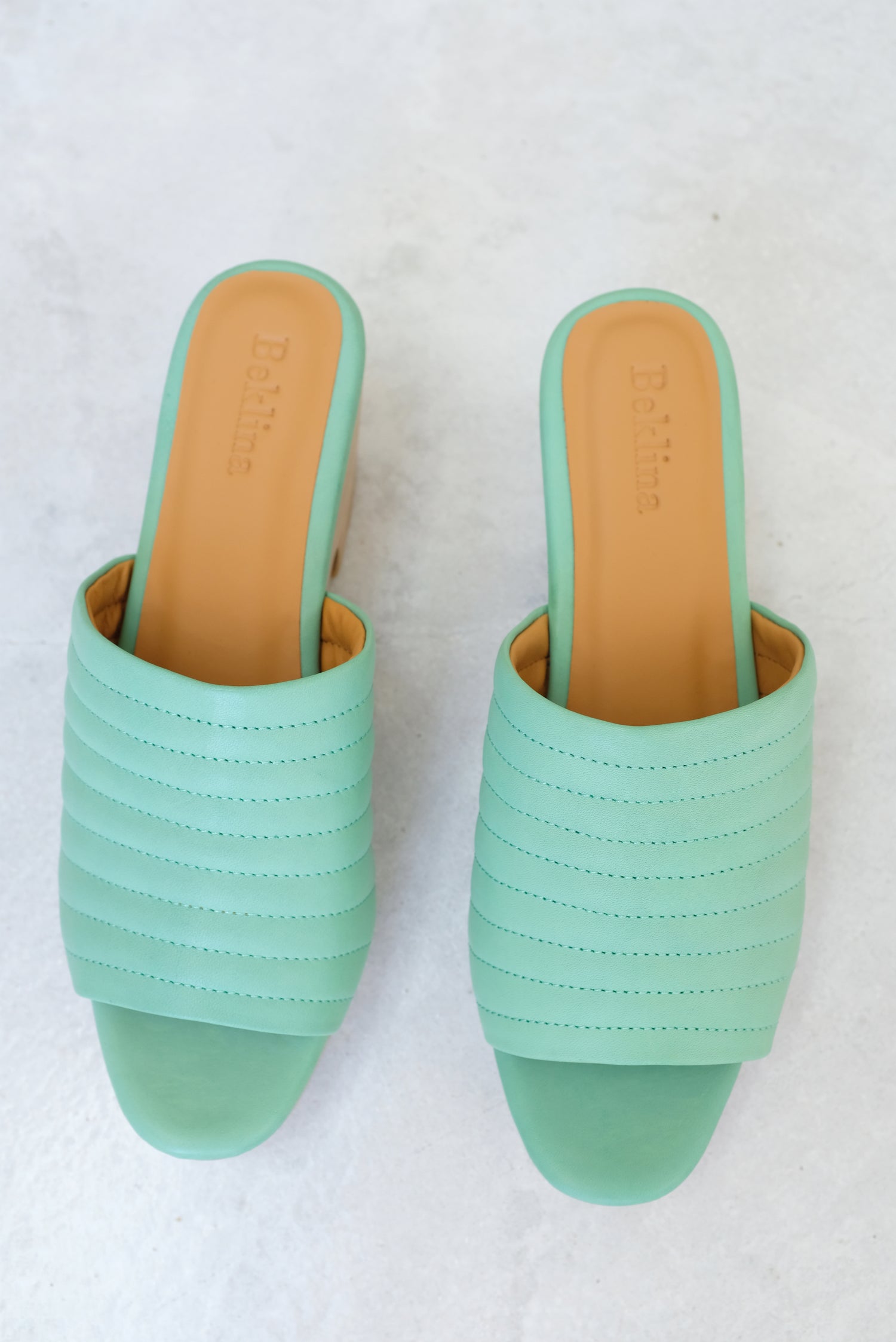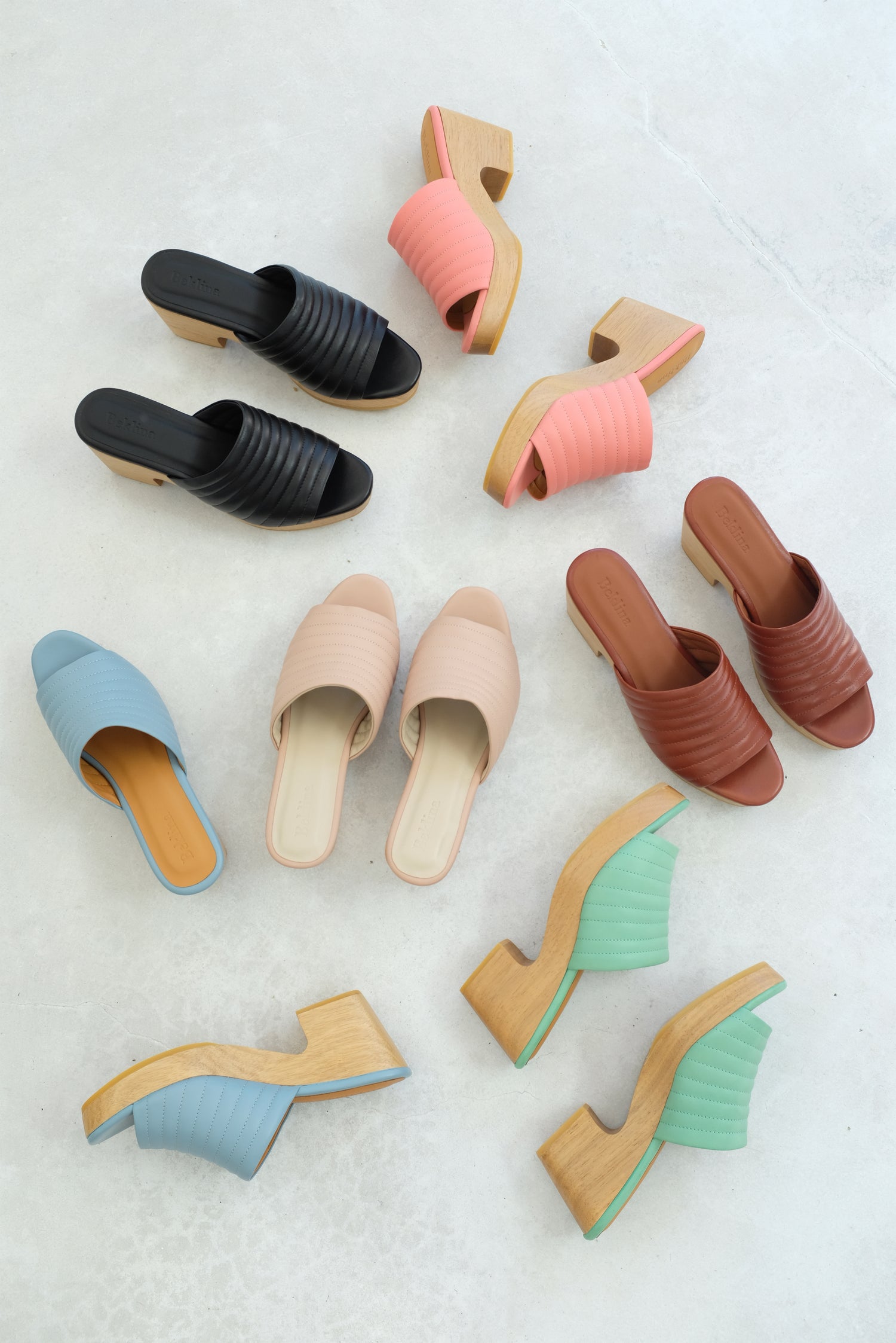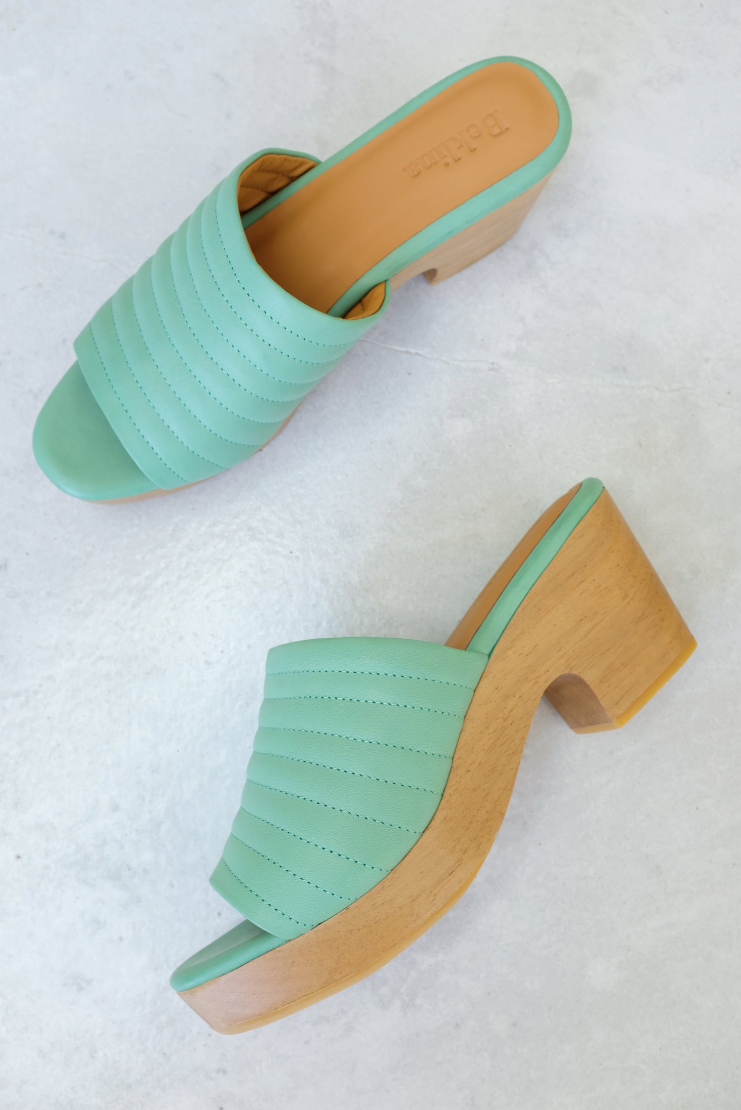 Hand carved wooden platform heel, 100% Italian leather uppers and leather lined. 2 1/2" heel. Ultra comfortable, all-day-wearable, wood wedge clogs! Free of staples.